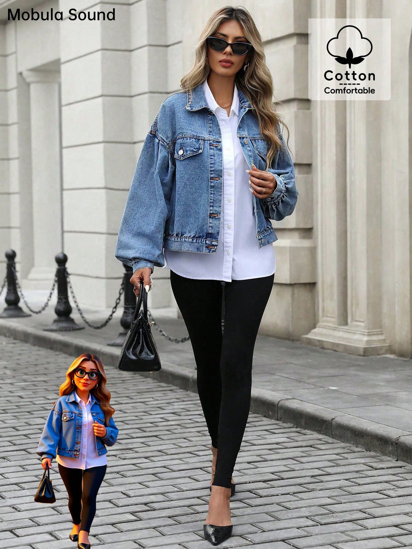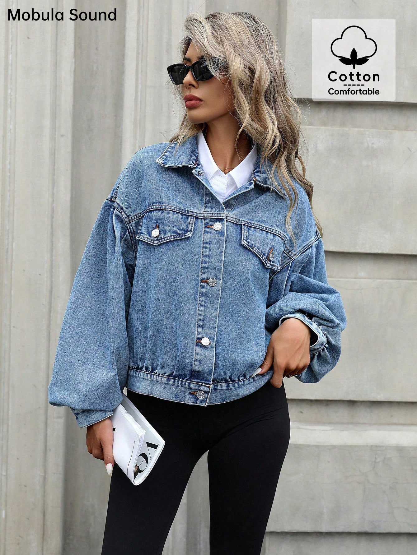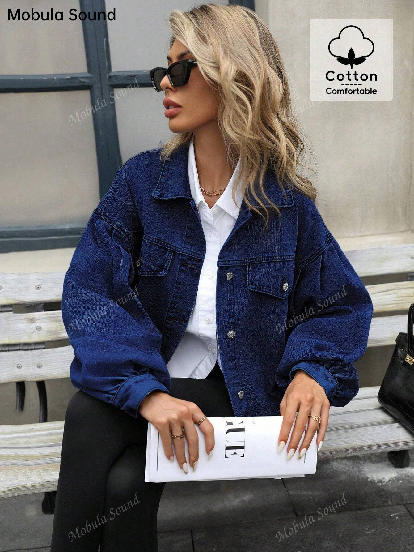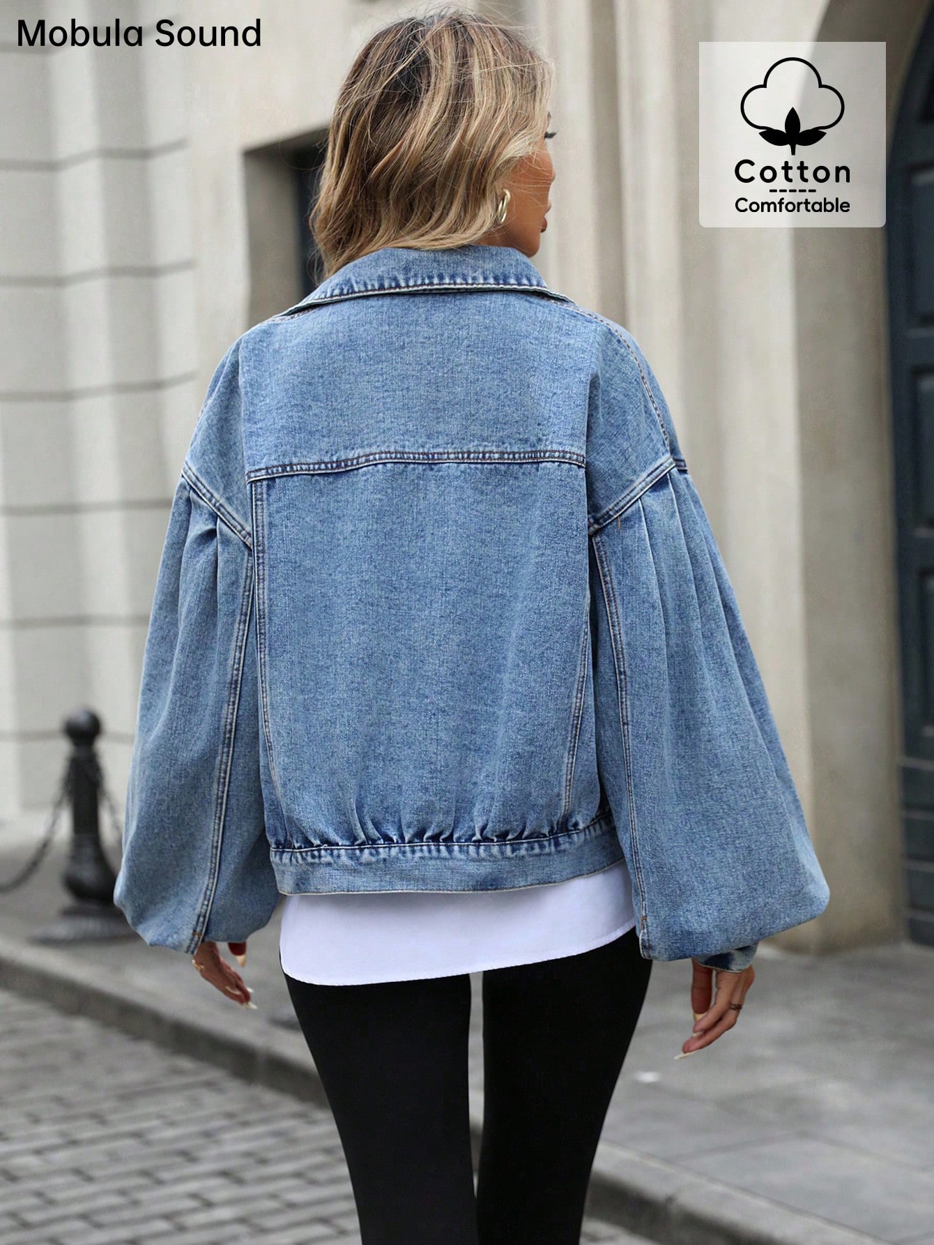 Mobula Sound Veelzijdige Casual Modekleding, Lente & Zomer, Sexy Muziekfestival, Casual Vakantie, Mode Coole Lantaarnmouw, Y2K Esthetiek, Jonge Student Retro Stijl, Blauwe Spijkerjas Voor Vrouwen