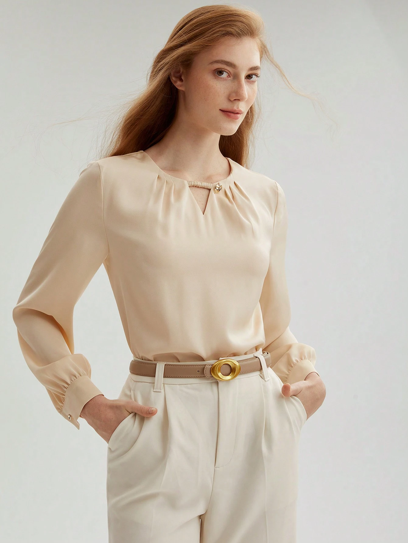 MOTF PREMIUM SHAPED PEACHCOLORED OVALBUCKLED BELT ELEGANT