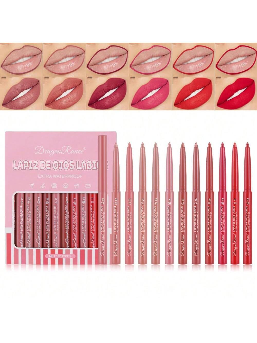 Mother's Day Gift Lip Liner Set 12 PCS, Long-Lasting Luxury Intense Lipliner, Creamy Easy To Use Richly Pigmented Lip Liner Pencil