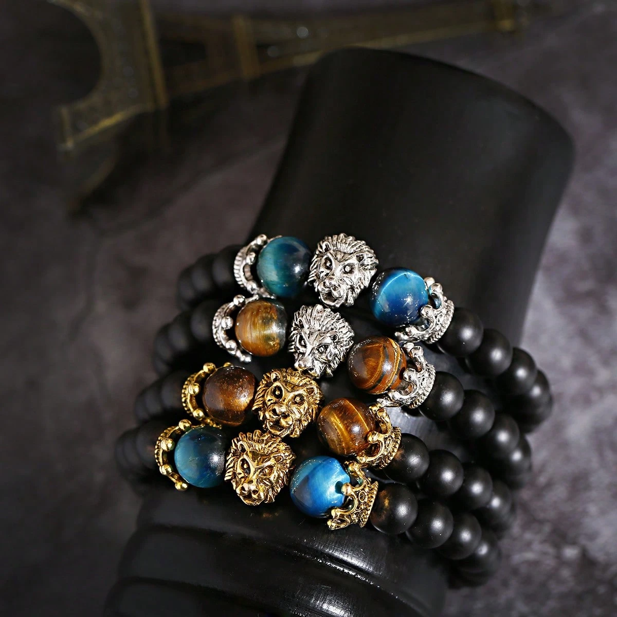 Yellow Tiger Eye Stone & Silver Lion, Yellow Tiger Eye Stone & Golden Lion, Blue Tiger Eye Stone & Golden Lion, Blue Tiger Eye Stone & Silver Lion, Green Tiger Eye Stone & Golden Lion, Rose Tiger Eye Stone & Golden Lion, Royal Blue Tiger Eye Stone & Silver Lion, Rose Tiger Eye Stone & Silver Lion, Green Tiger Eye Stone & Silver Lion, Sapphire Tiger Eye Stone & Golden Lion