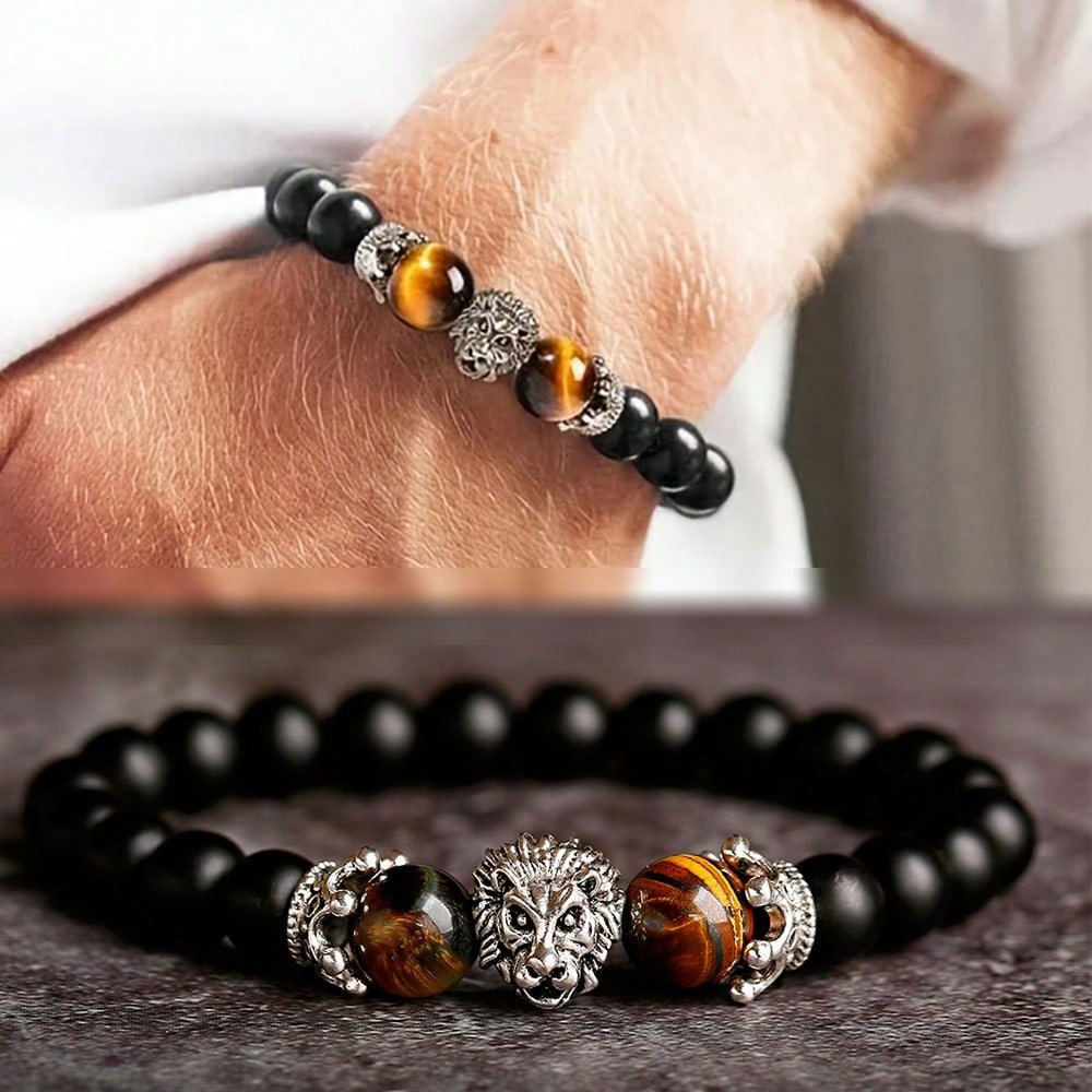 Be the first to review “Natural Crystal Crown Lion Head Bracelet Luxury Tiger Eye Stone Bead Bracelets Jewelry” Cancel reply