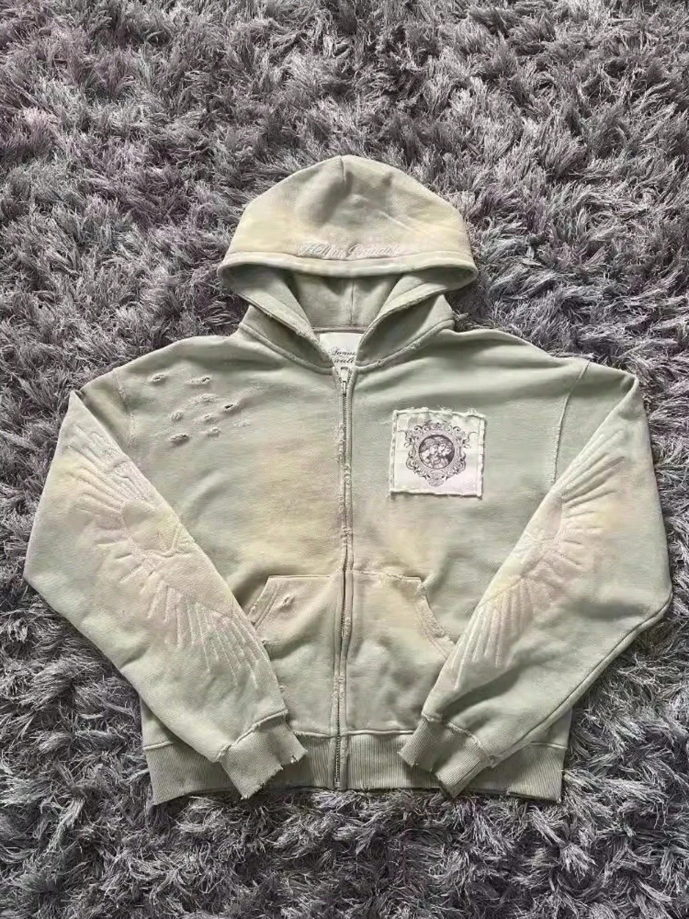 New 9OESH Printed Sweater Short Hoodie New Versatile Zipper Cardigan Jacket