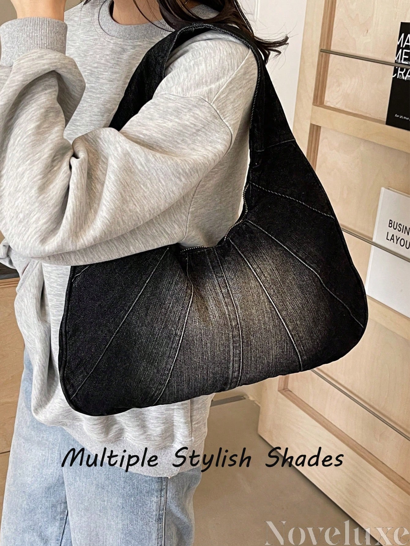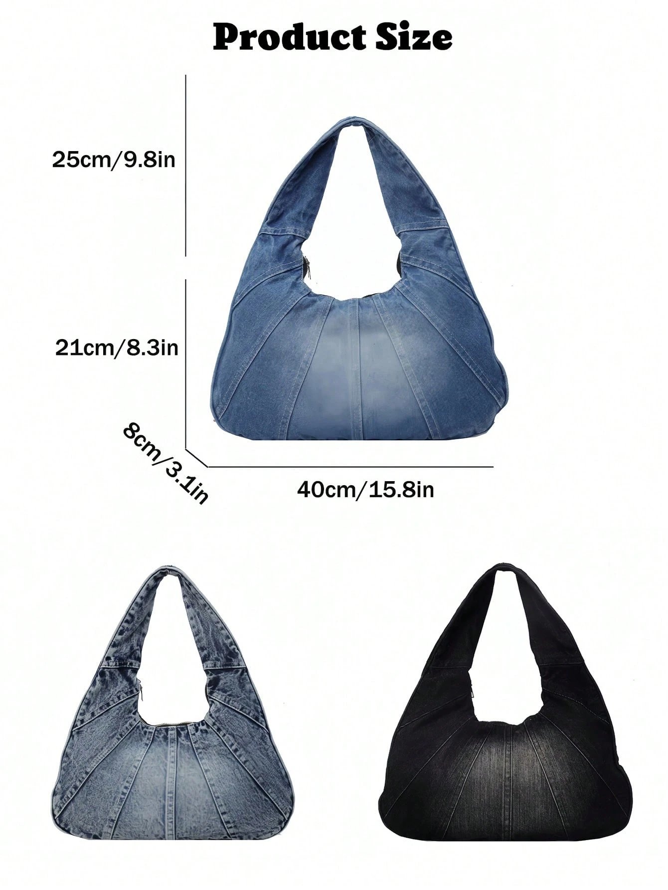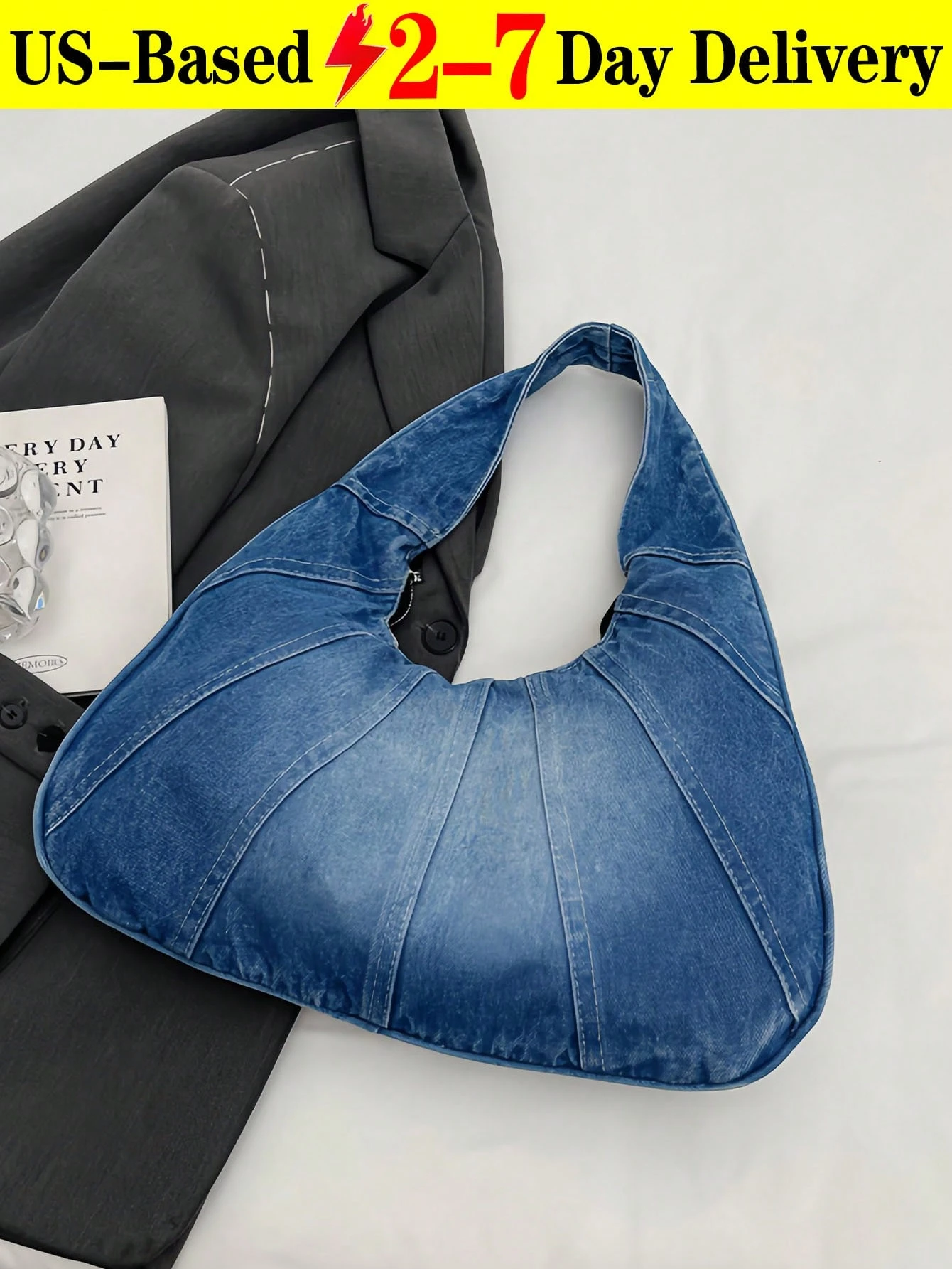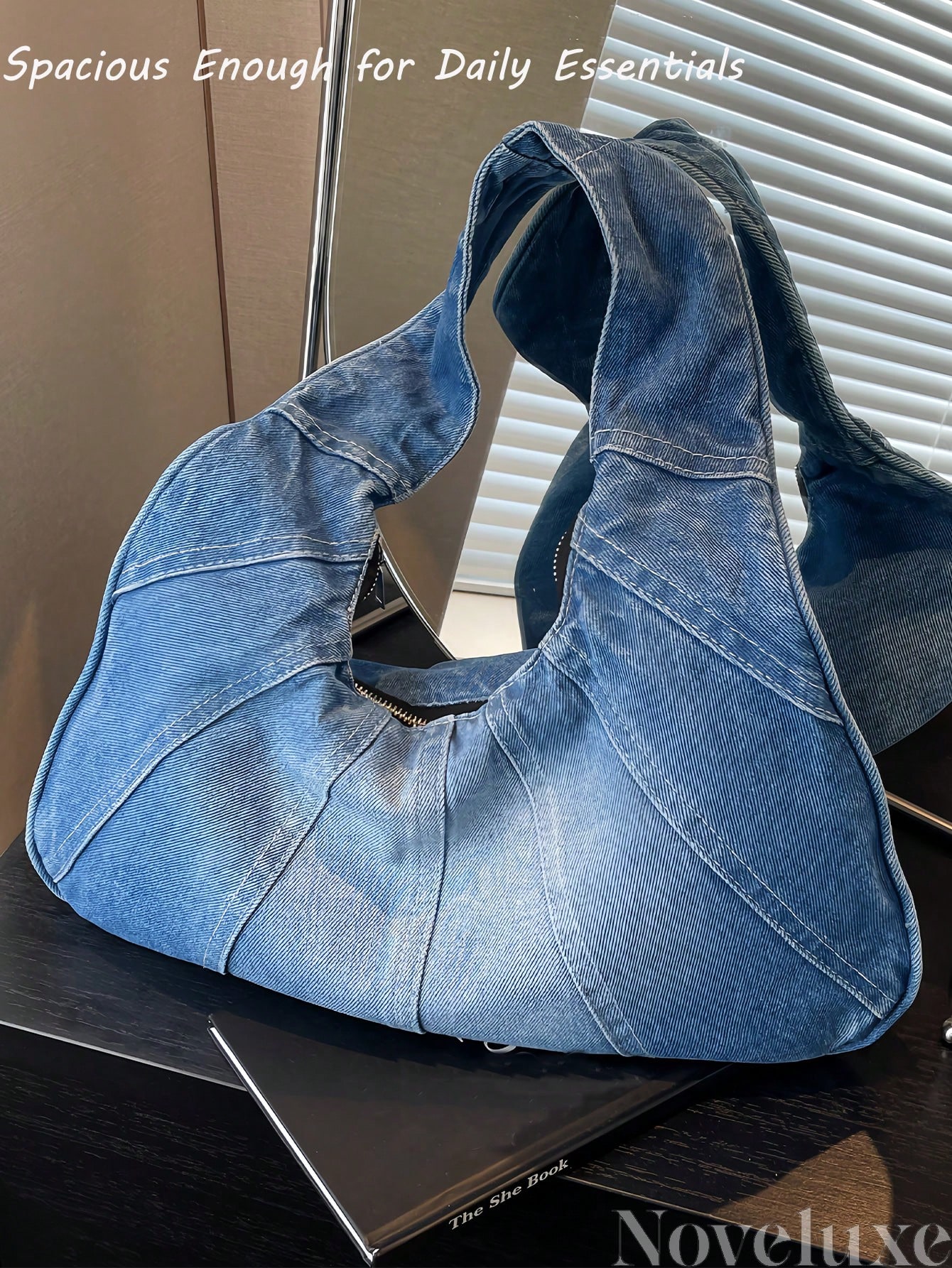 New Arrival Ladies Shoulder Bag,Autumn Shoulder Bag, Popular Crescent-Shaped Cowhide Jean Fabric Handbag, Large Capacity Crossbody Bag For Commuting And Casual Occasions. Minimalist Design, Smooth Zipper, Comfortable To Carry And Spacious Inside, Perfect