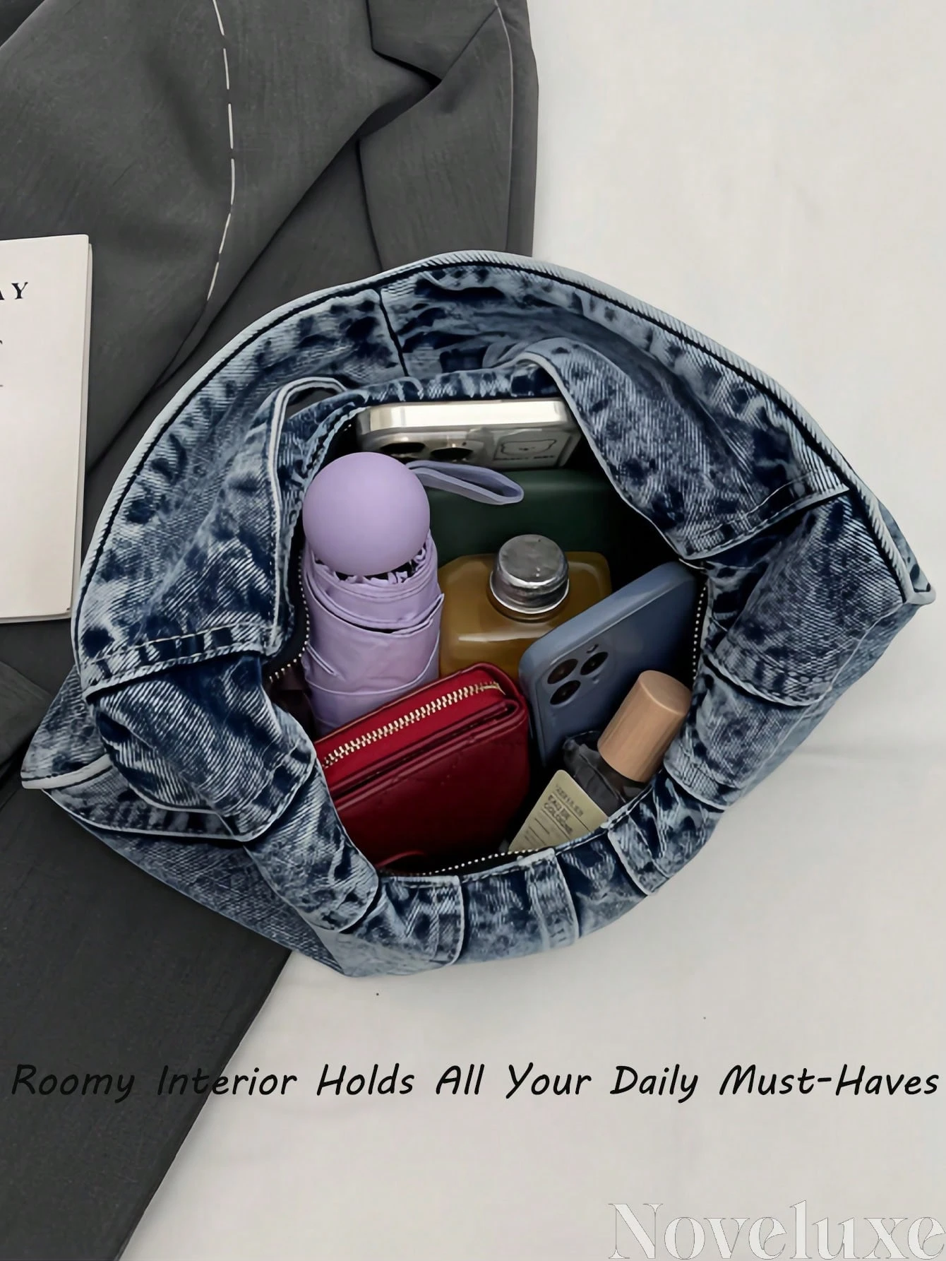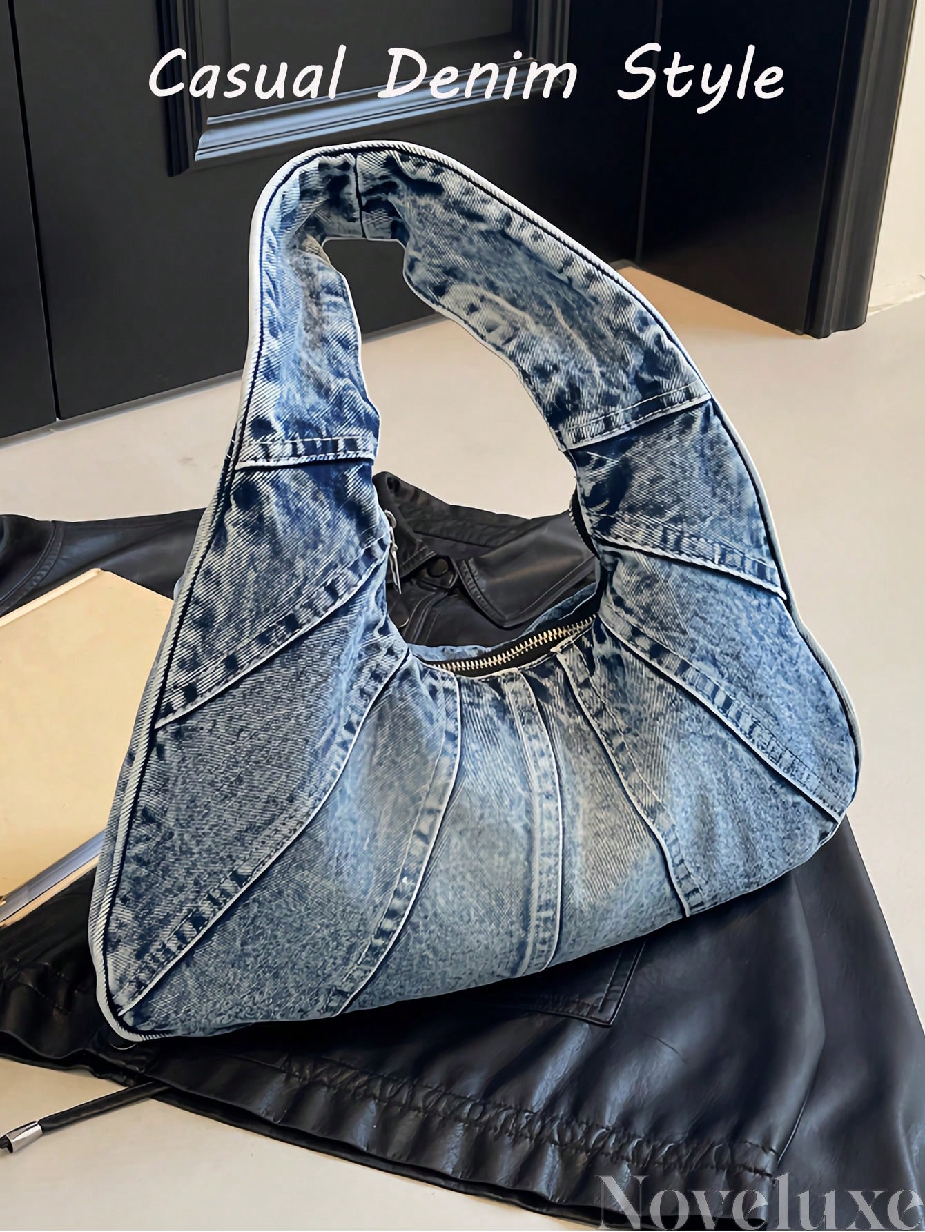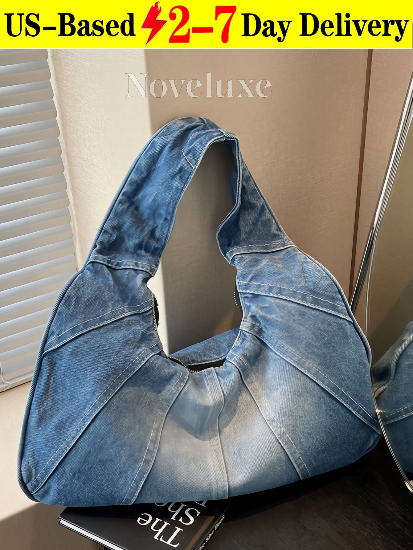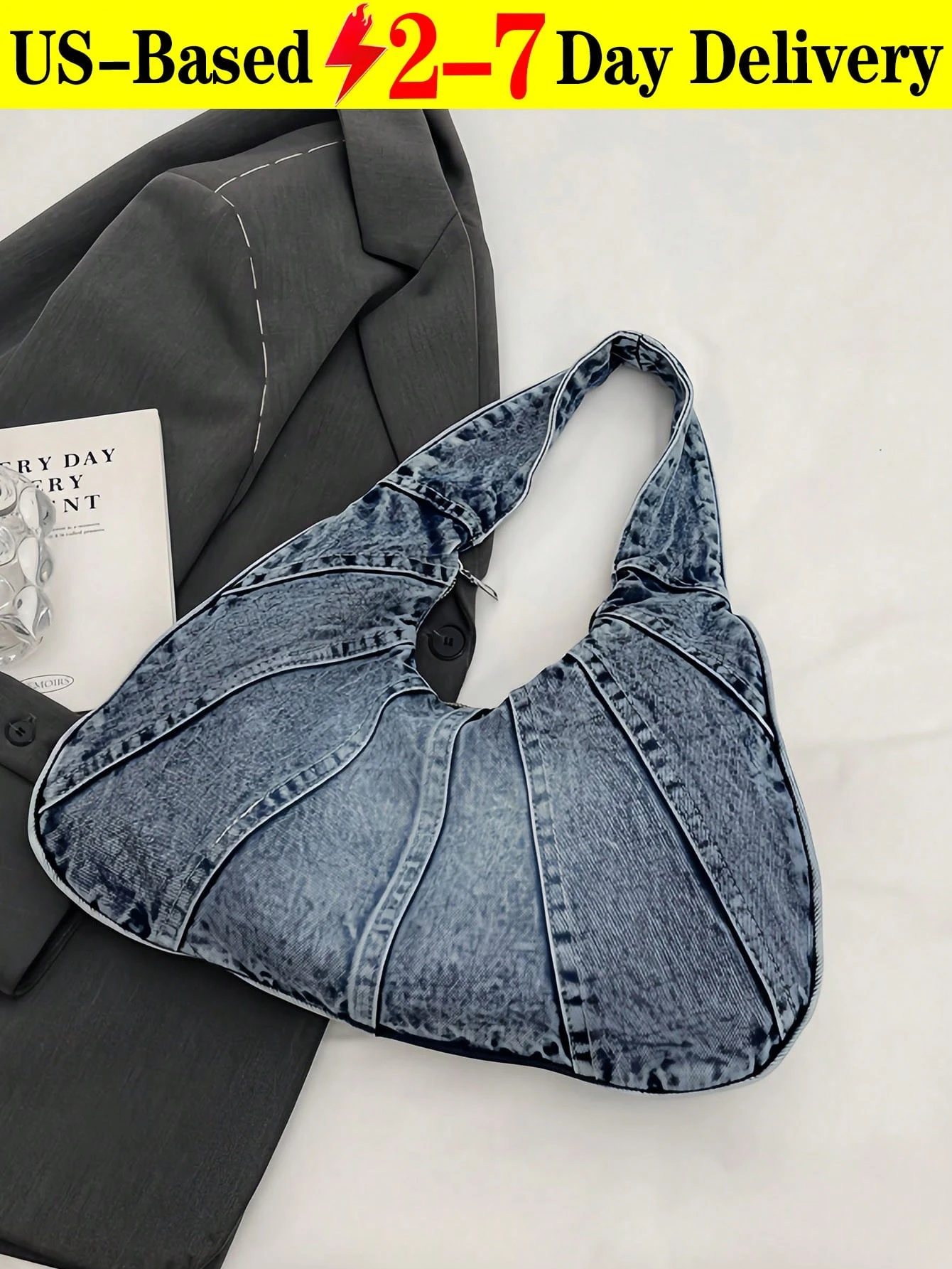 New Arrival Ladies Shoulder Bag,Autumn Shoulder Bag, Popular Crescent-Shaped Cowhide Jean Fabric Handbag, Large Capacity Crossbody Bag For Commuting And Casual Occasions. Minimalist Design, Smooth Zipper, Comfortable To Carry And Spacious Inside, Perfect