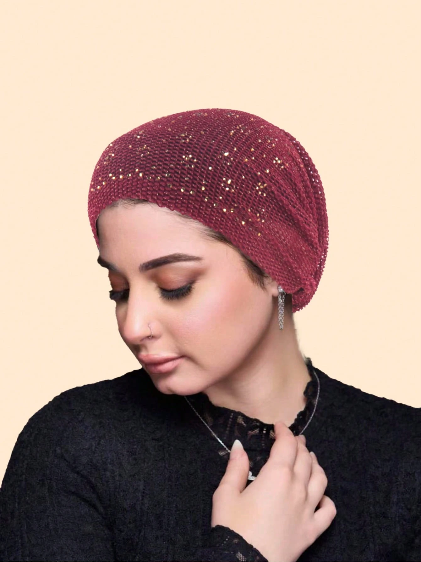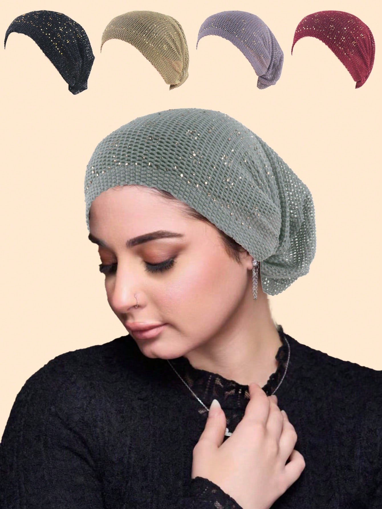 New Elastic Waist Rhinestone Hui Muslim Head Scarf, Fashionable Thin Hijab Hat For Mothers