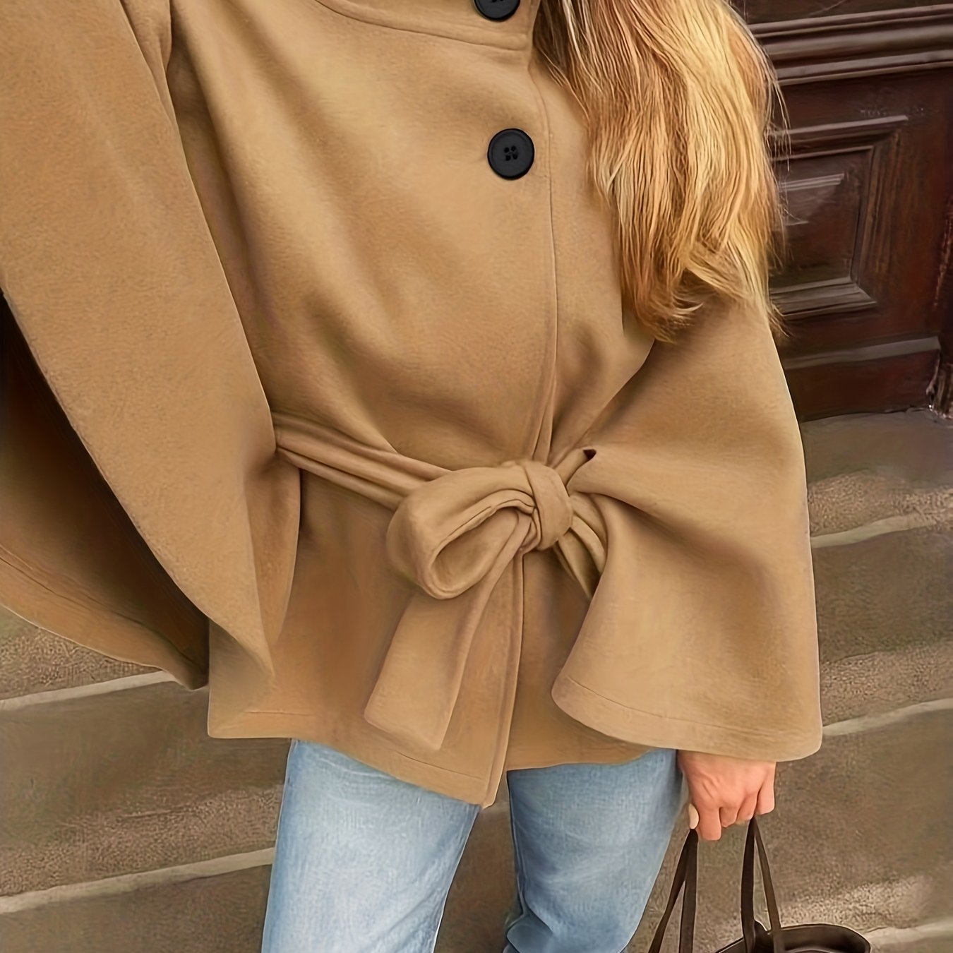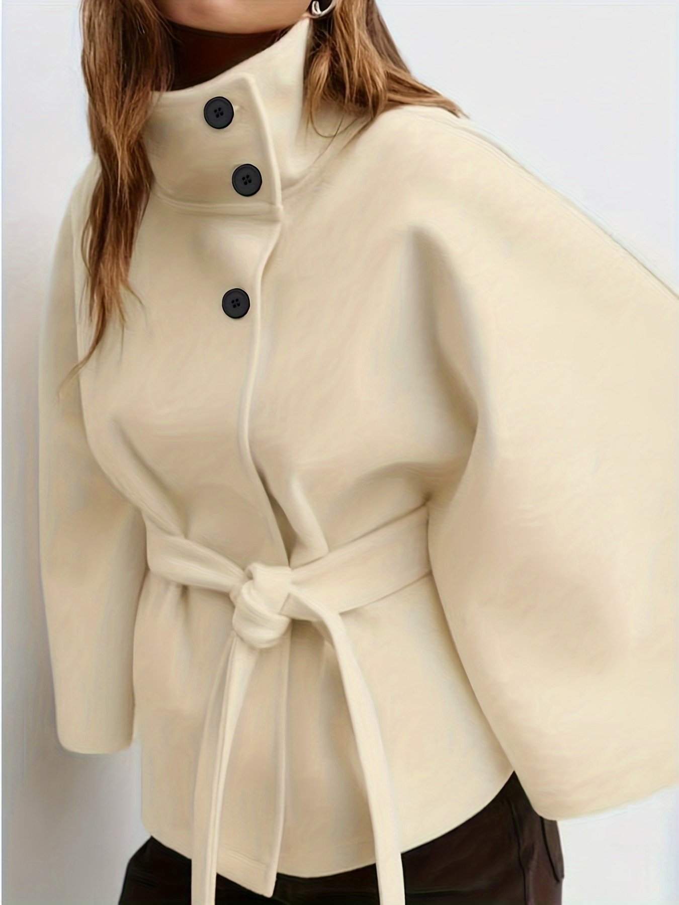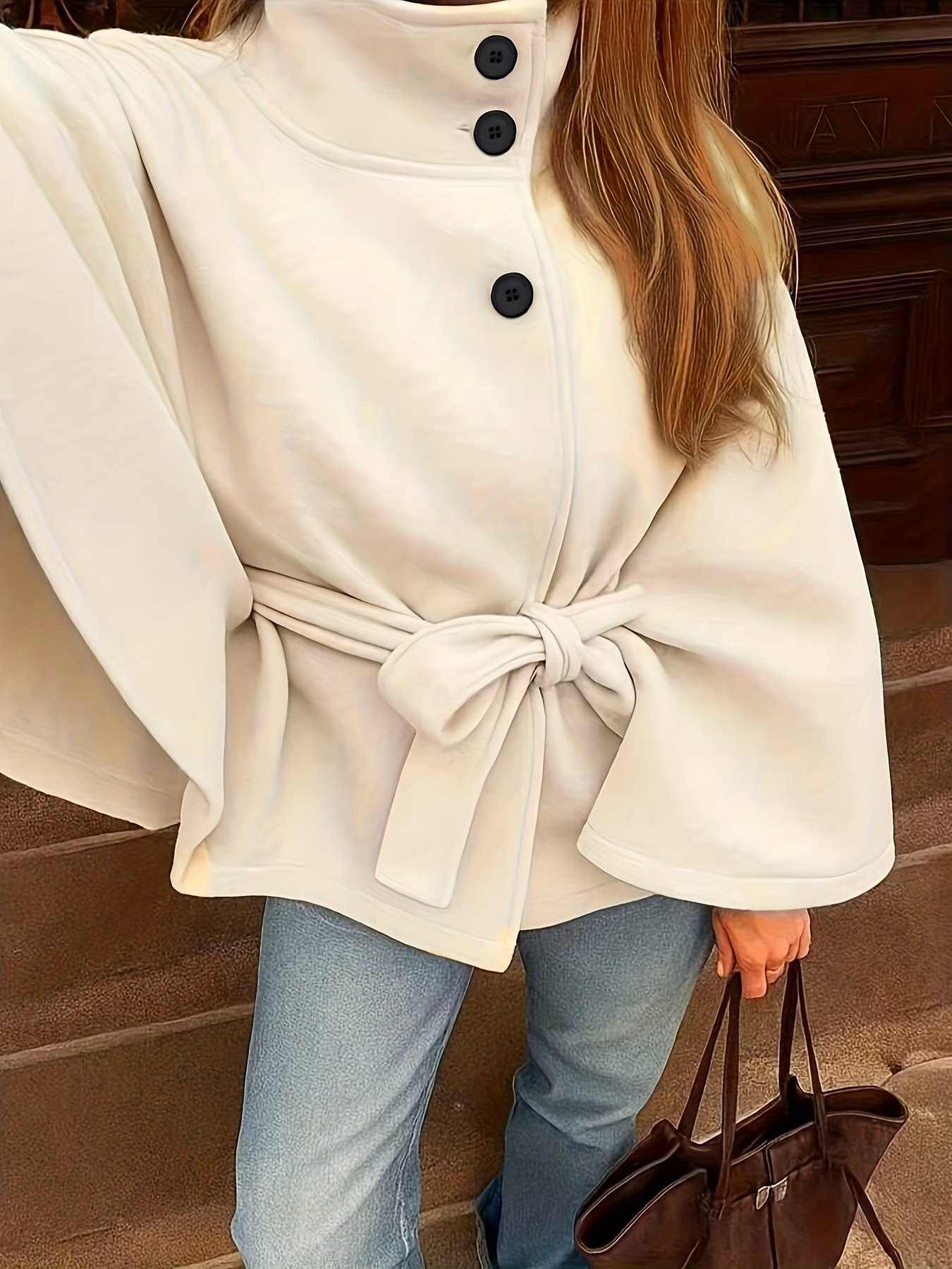 New Fashion Elegant Cape-Style Stand Collar Tie Button Coat