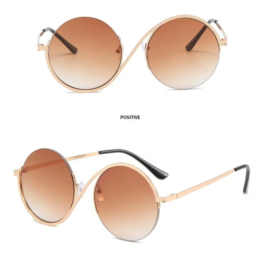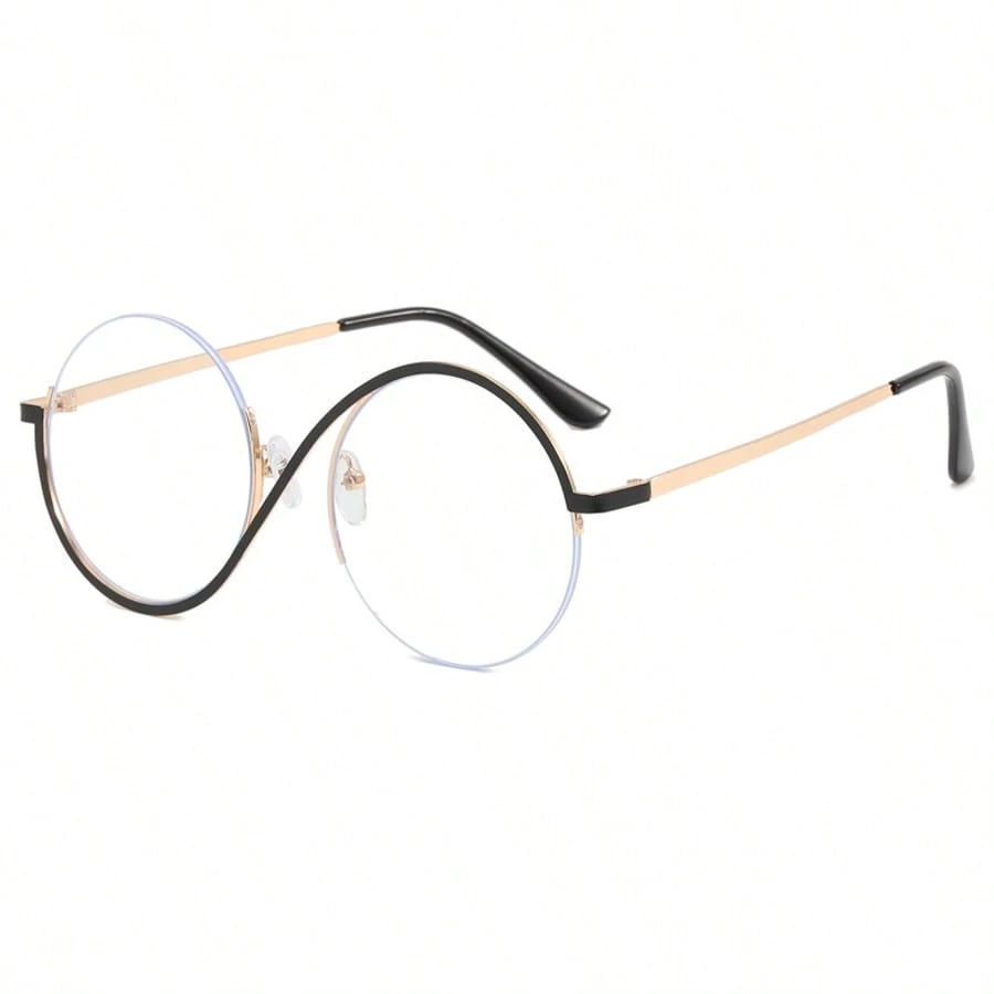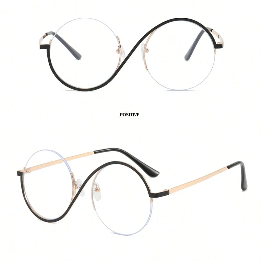 New Fashion Metal S-Shaped Circular Half-Frame Personalized Plain Mirror Glasses, Unisex Simple Versatile Casual Everyday Wear, Couple Street Photo, Outdoor Gathering Party Non-Prescription Glasses