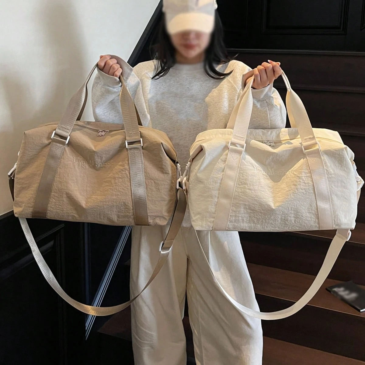 New-Style Simple Color-Block Hand Luggage. It Is Light, Has A Large Capacity, And Is An Essential Item For Traveling. It Comes With A Dry-Wet Separation Bag, Which Is Perfect For Gym Workouts And Packing Underwear. It Can Also Be Used As A Weekend Bag, A