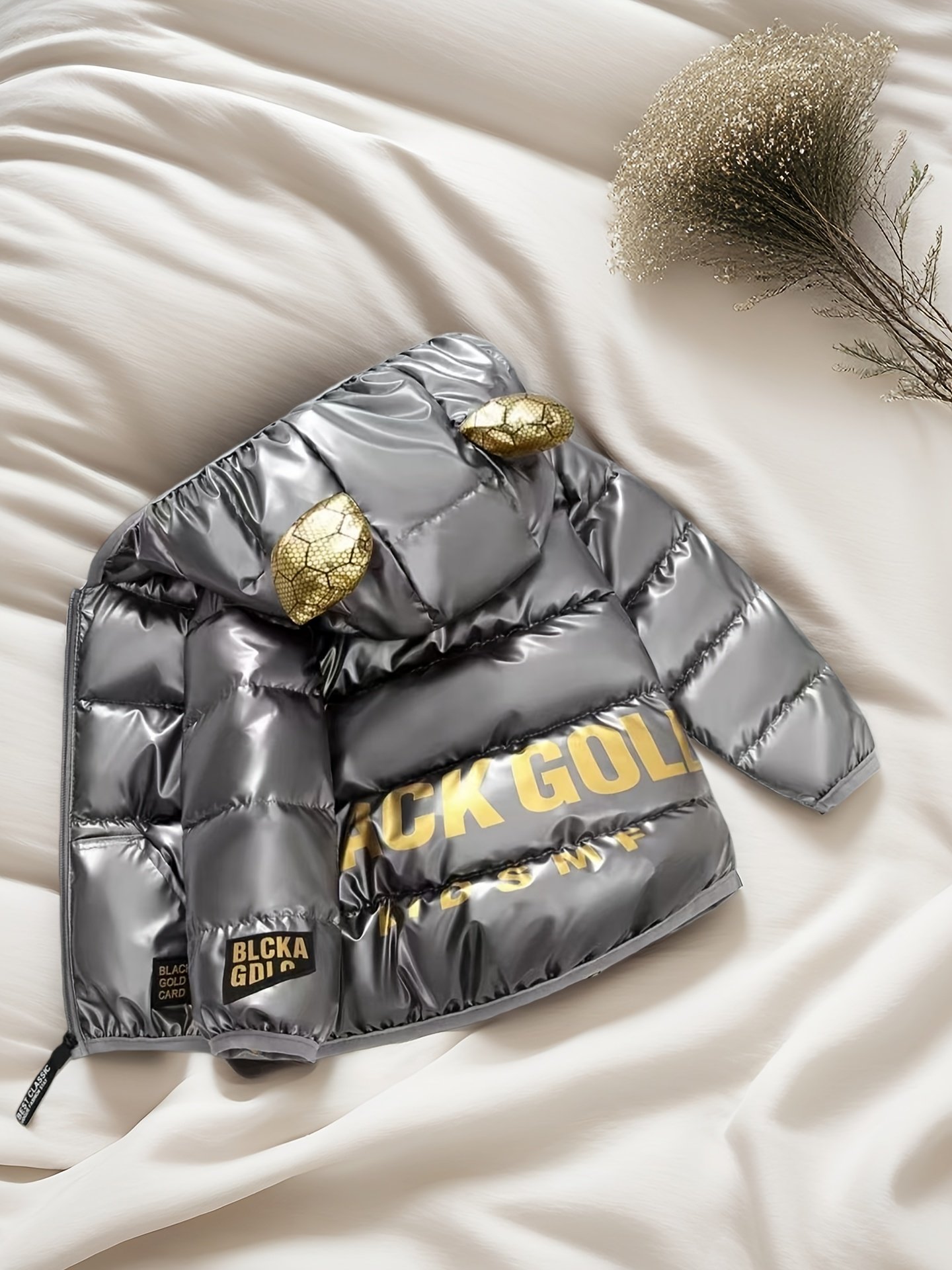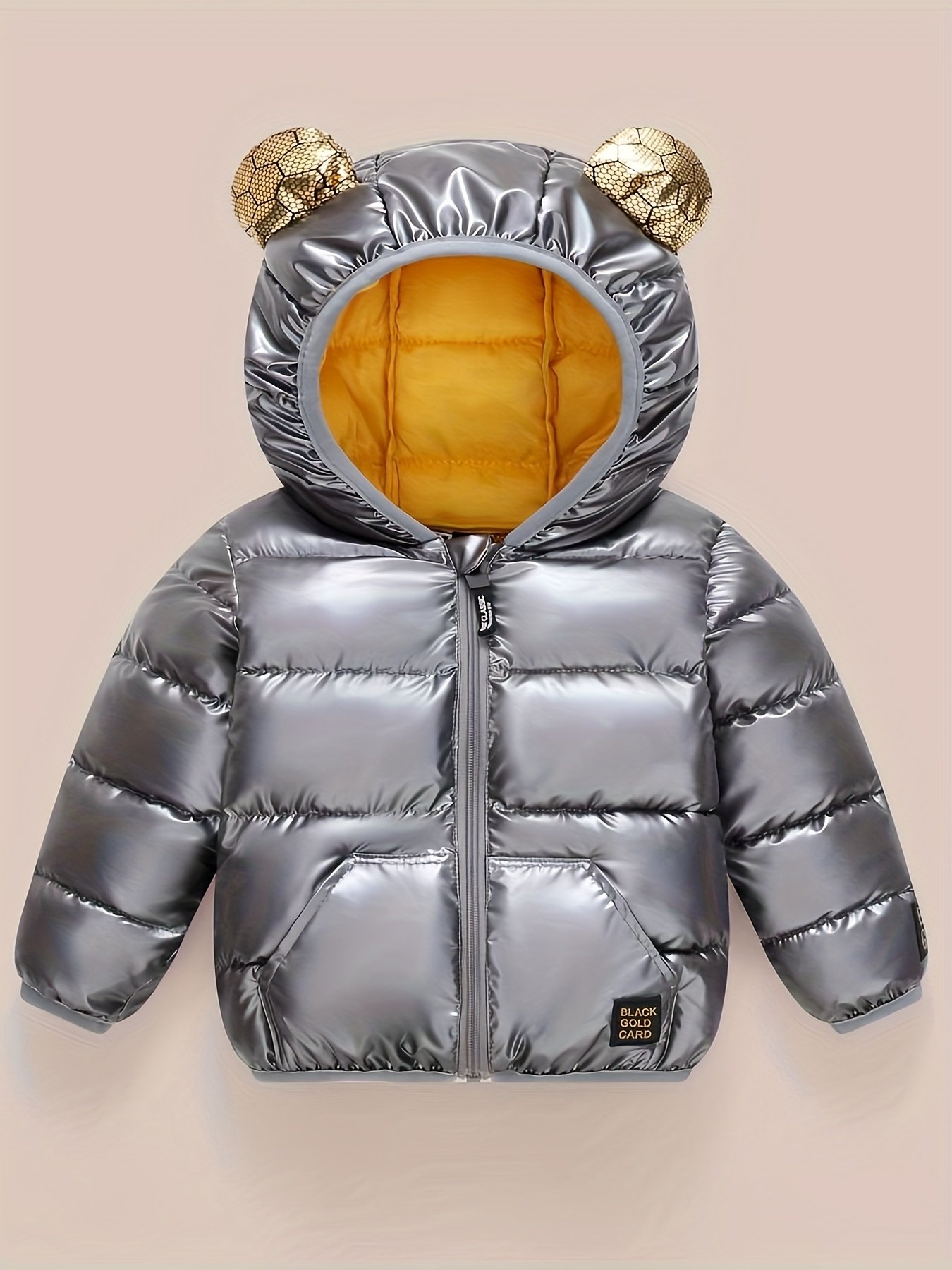 New Unisex Padded Double-sided Zipper Glossy Polyester Coat with Cute Ears – Inner Suspenders and Outer Pockets, Perfect for Outdoor Activities – High-end Quality Gift for Spring Festival, Ramadan, Valentine's Day, or Birthdays