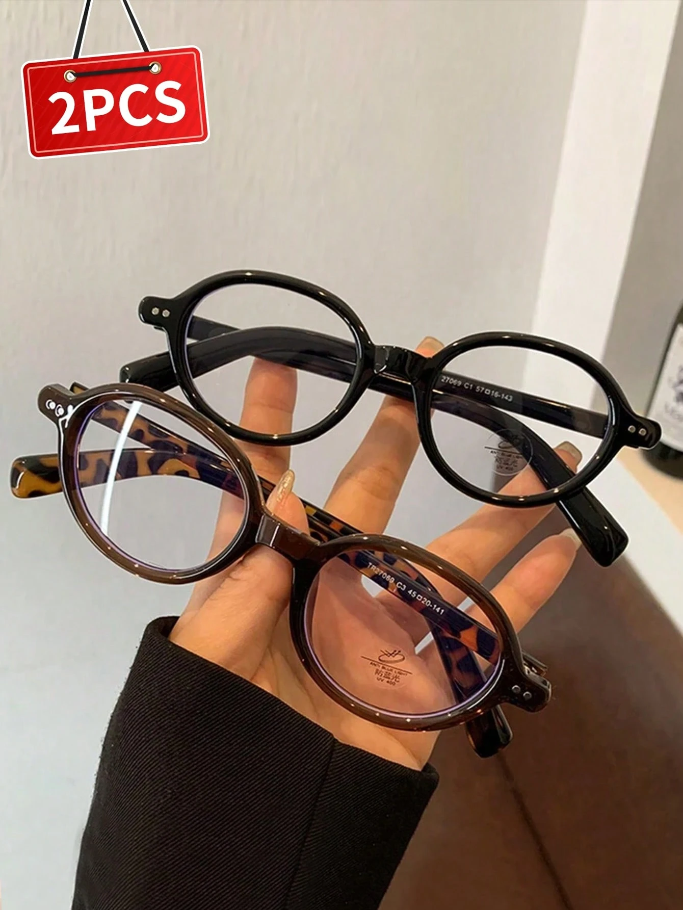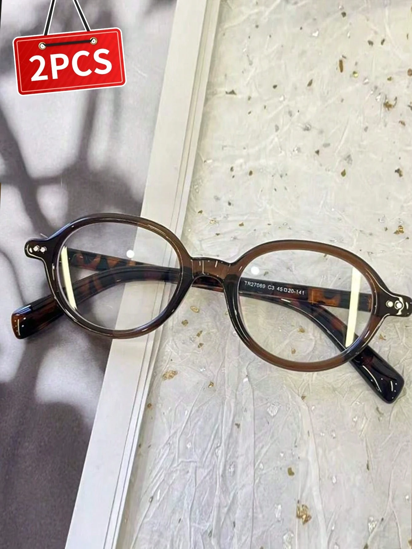 New1Pc Retro Oval Leopard Print Design Decorative Glasses For Women Color Blocked Glasses Fashion Frame Glasses Daily Use