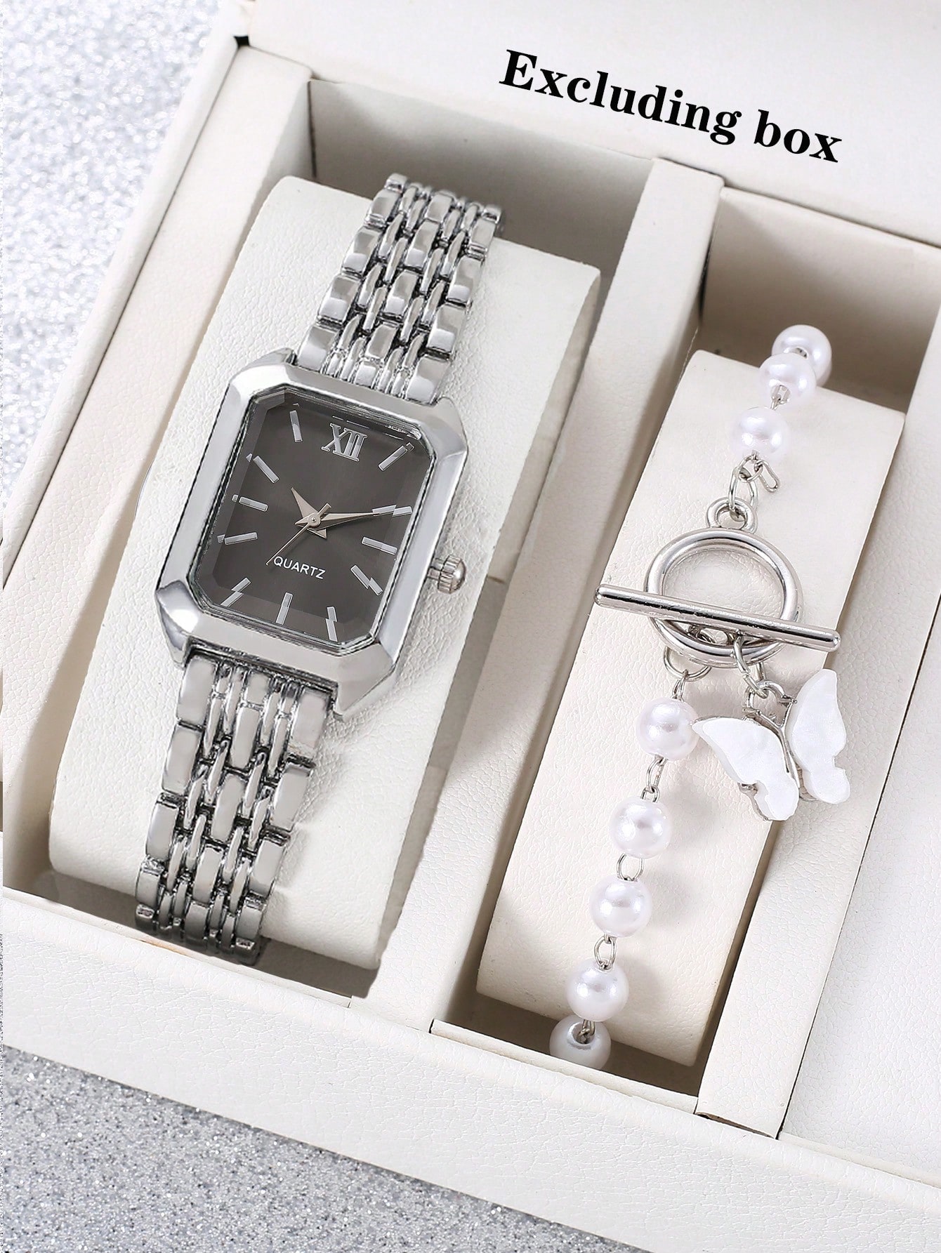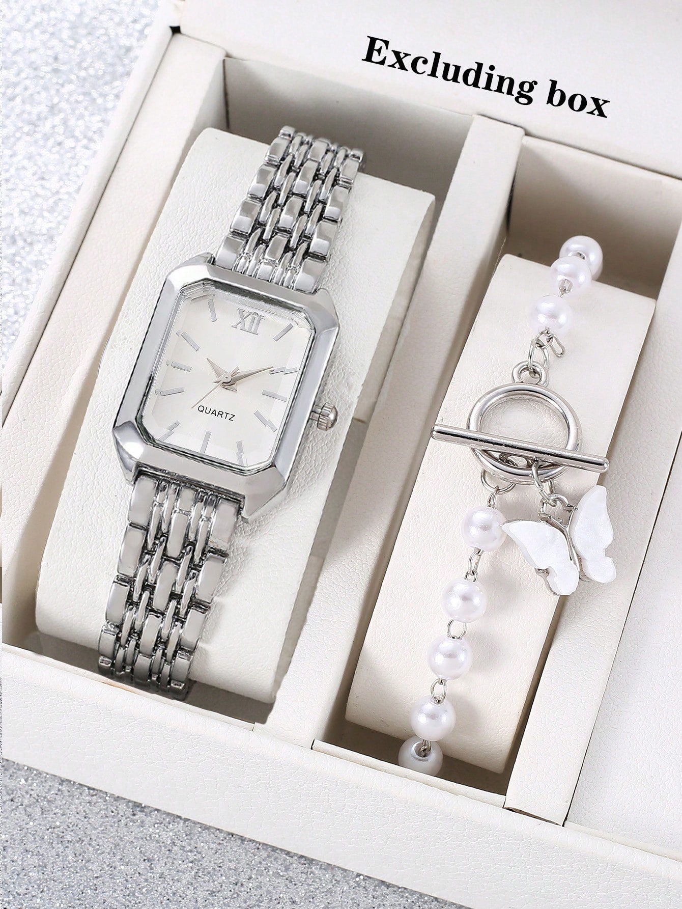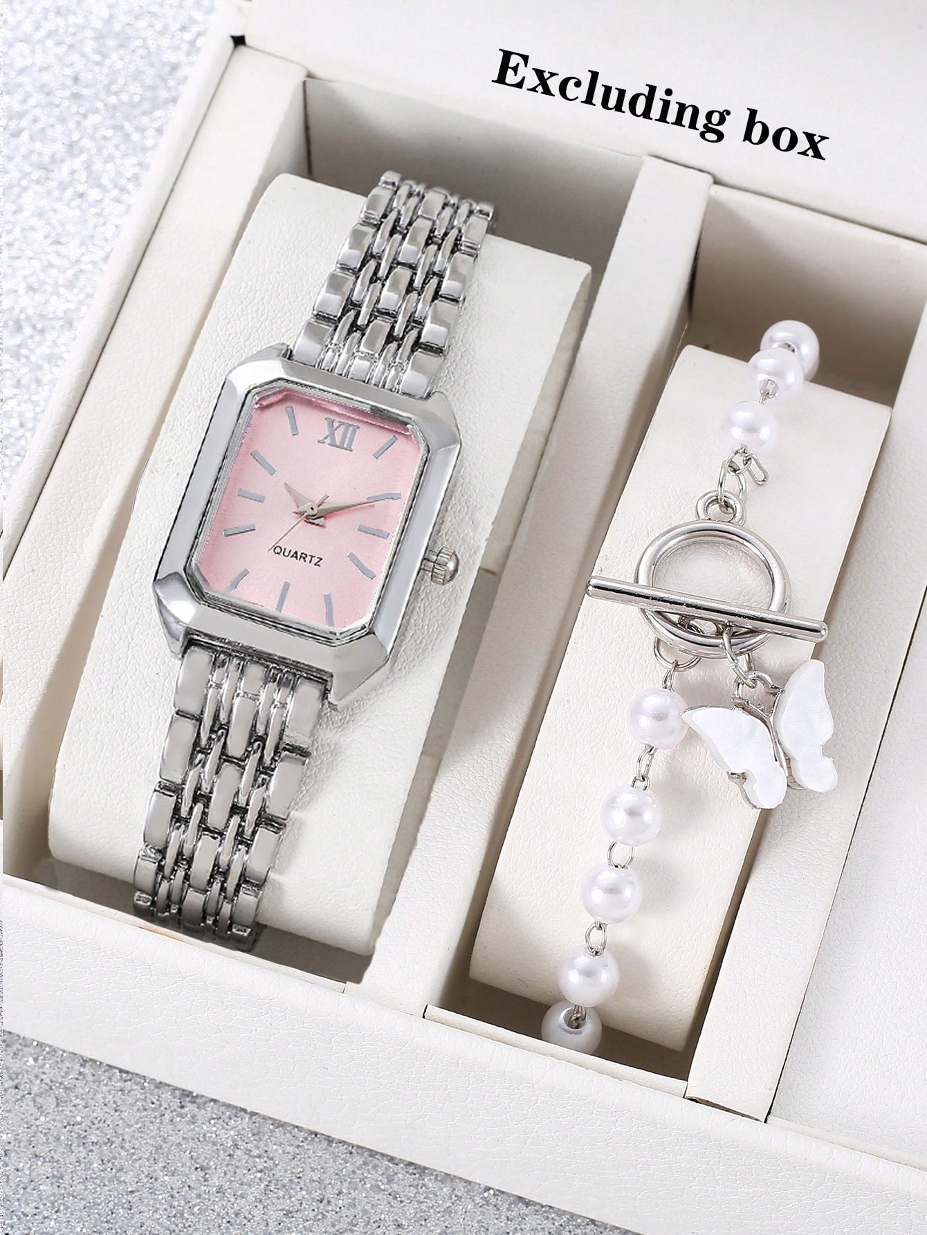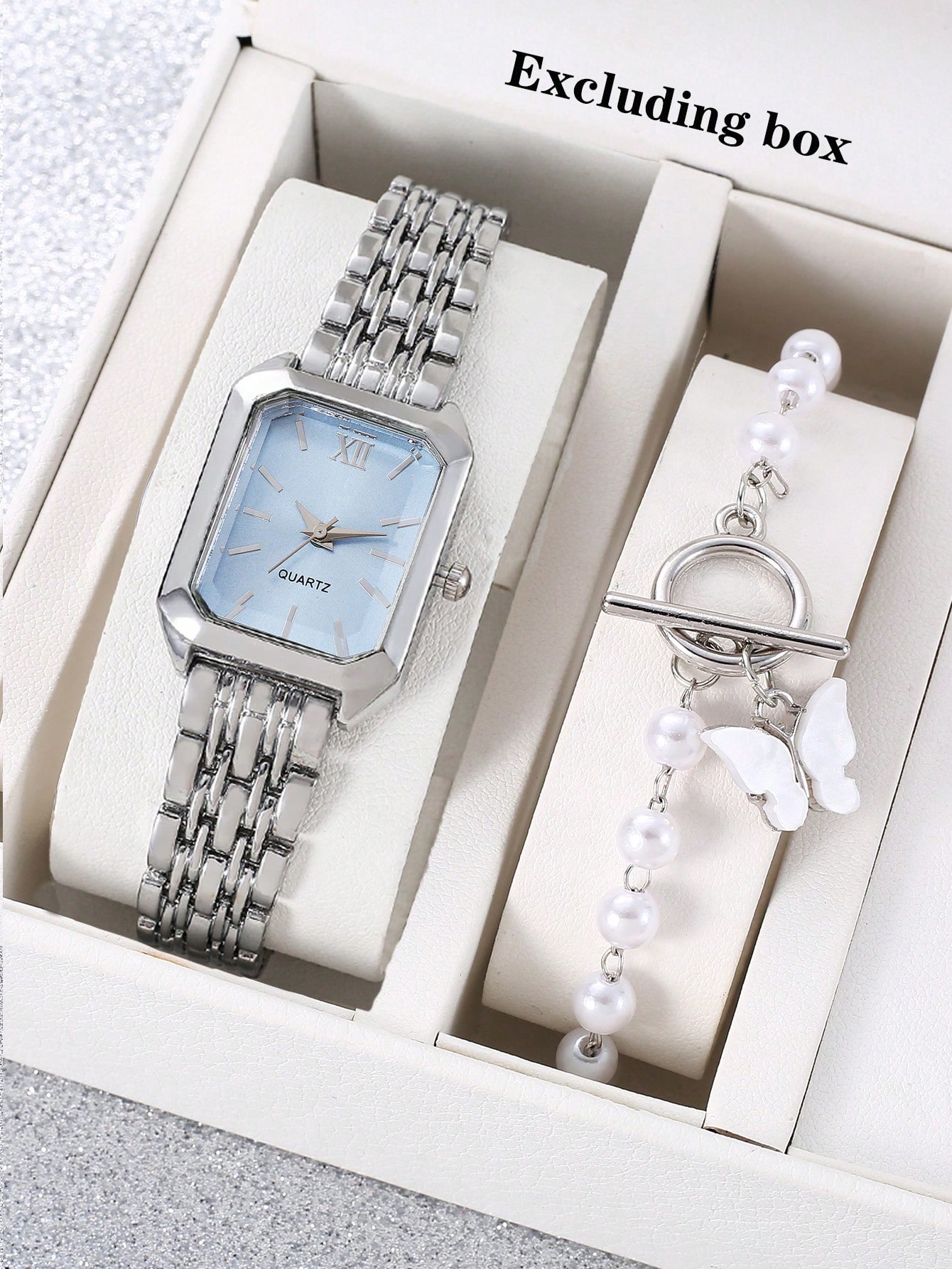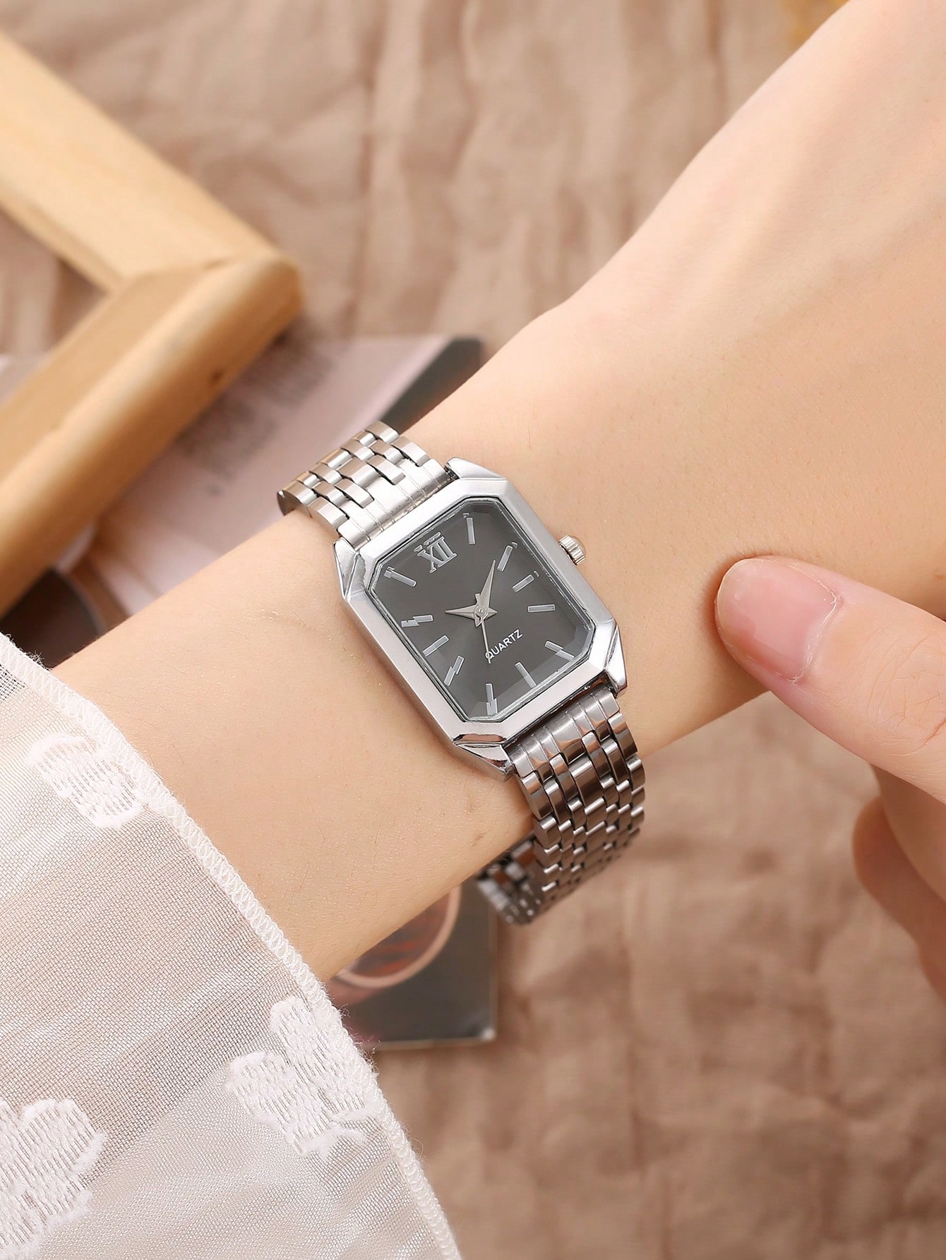 New2pcs Fashionable & Elegant Women Steel Band Watches, Ladies Stylish Minimalist Square Quartz Wrist Watches