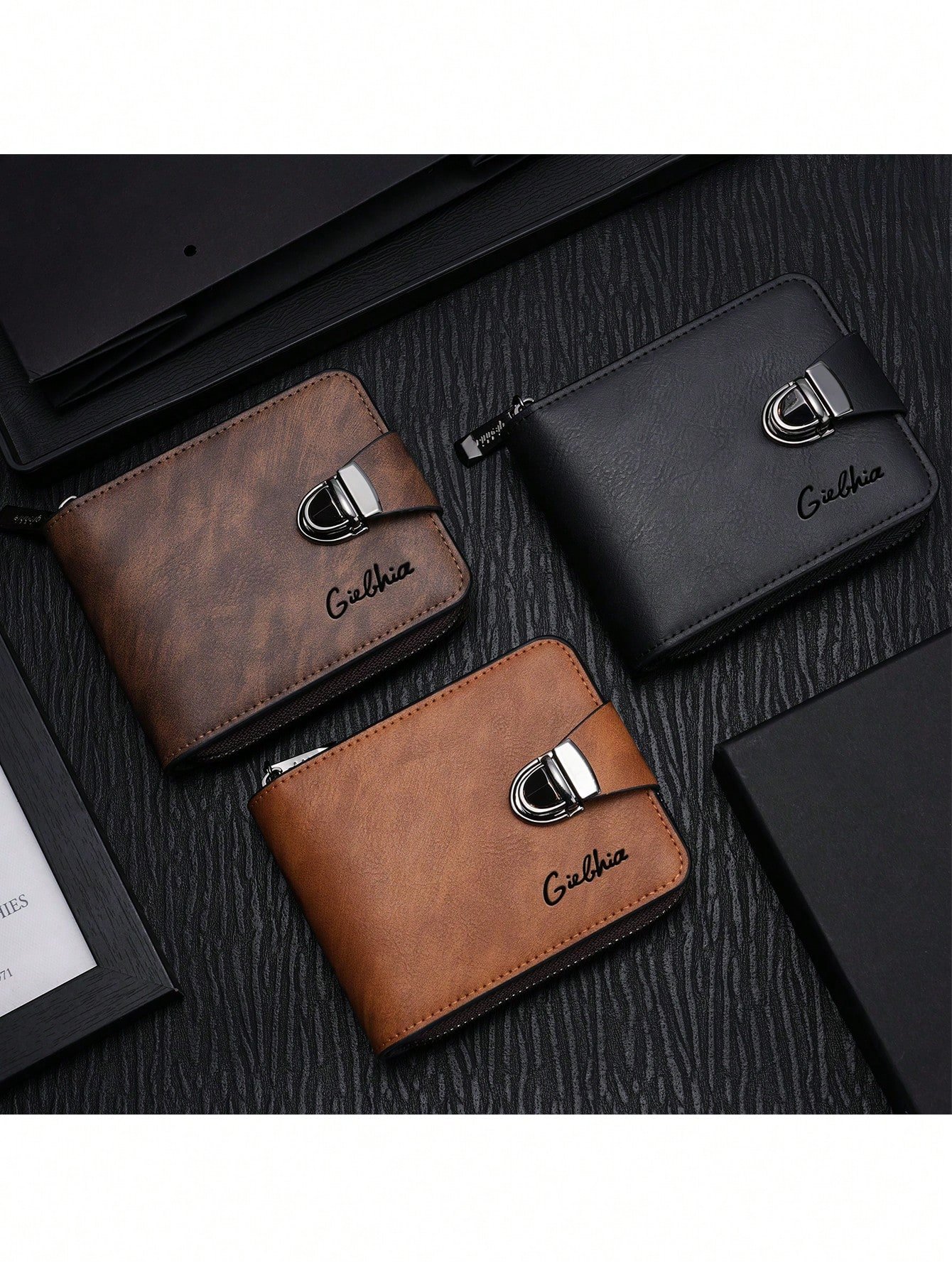 NewRetro Bifold Men's Wallet, Multi-Function Credit Card Holder, Short Zip Wallet With Large Capacity And Card Slots, Convenient Coin Pouch, Business Vintage Style, Ideal Gift For Men, Students, Boyfriends, Fathers