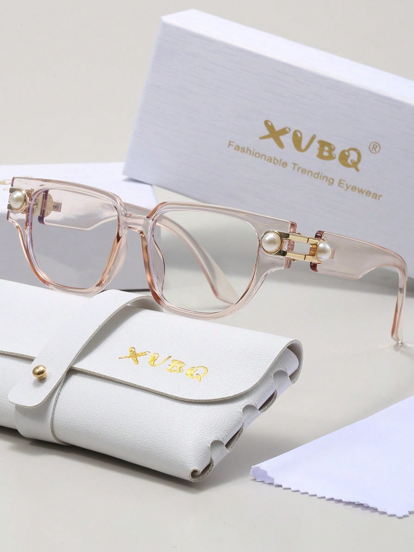 NewXVBQ 1 Pair Square Pearl Decor Casual Fashion Non-Prescription Glasses, Suitable For Daily Use, Packaged