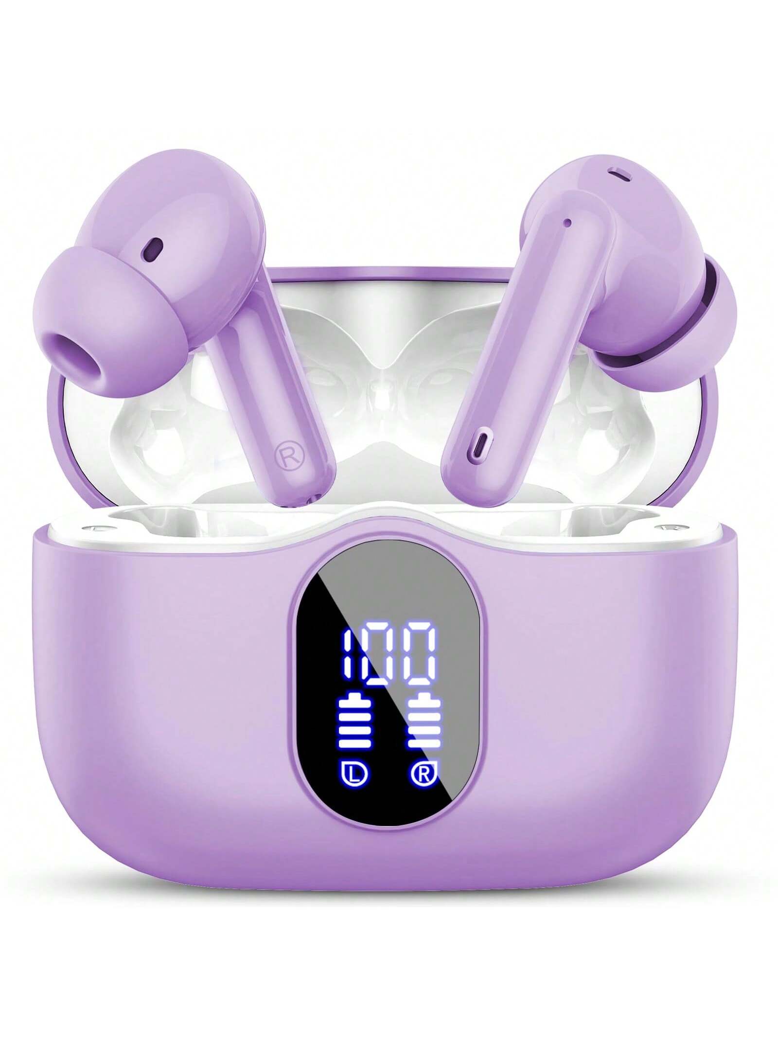 Ordtop Wireless Earbuds, Bluetooth Headphones 48H Playtime Ear Buds With LED Power Display, IPX7 Waterproof Bluetooth 5.4 Earphones In-Ear Earbuds With 4 Mic For Android IOS Cell Phone Laptop, Purple