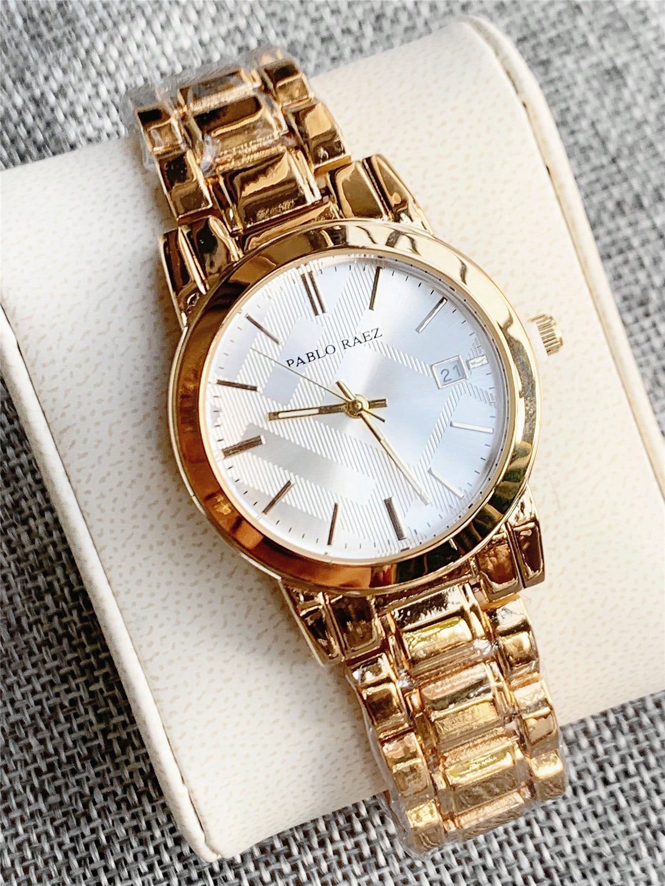 Pablo Raez 1pc Ladies Watch 18K Gold Jewelry Summer Accessories Vintage Women Watch Luxury Dress Watch Stainless Steel Bracelets Chain IPG Golden Plated Case Elegant Top Brand New Design Quartz Watch