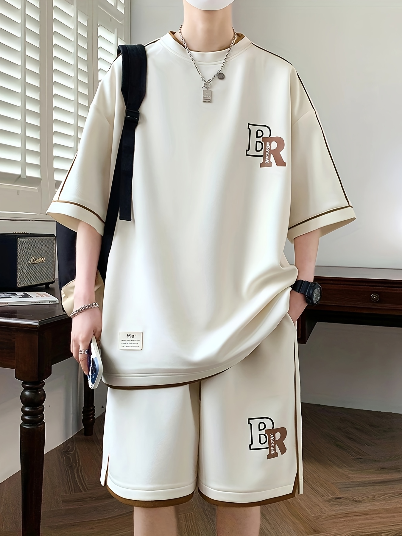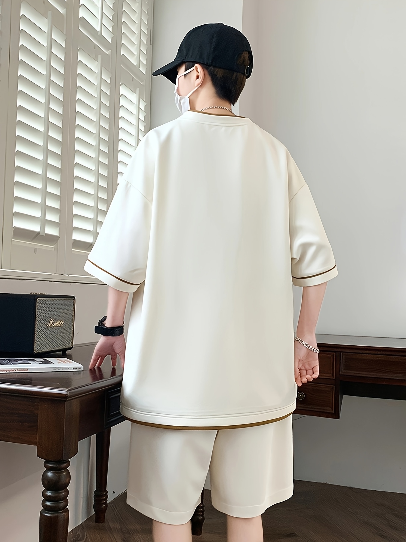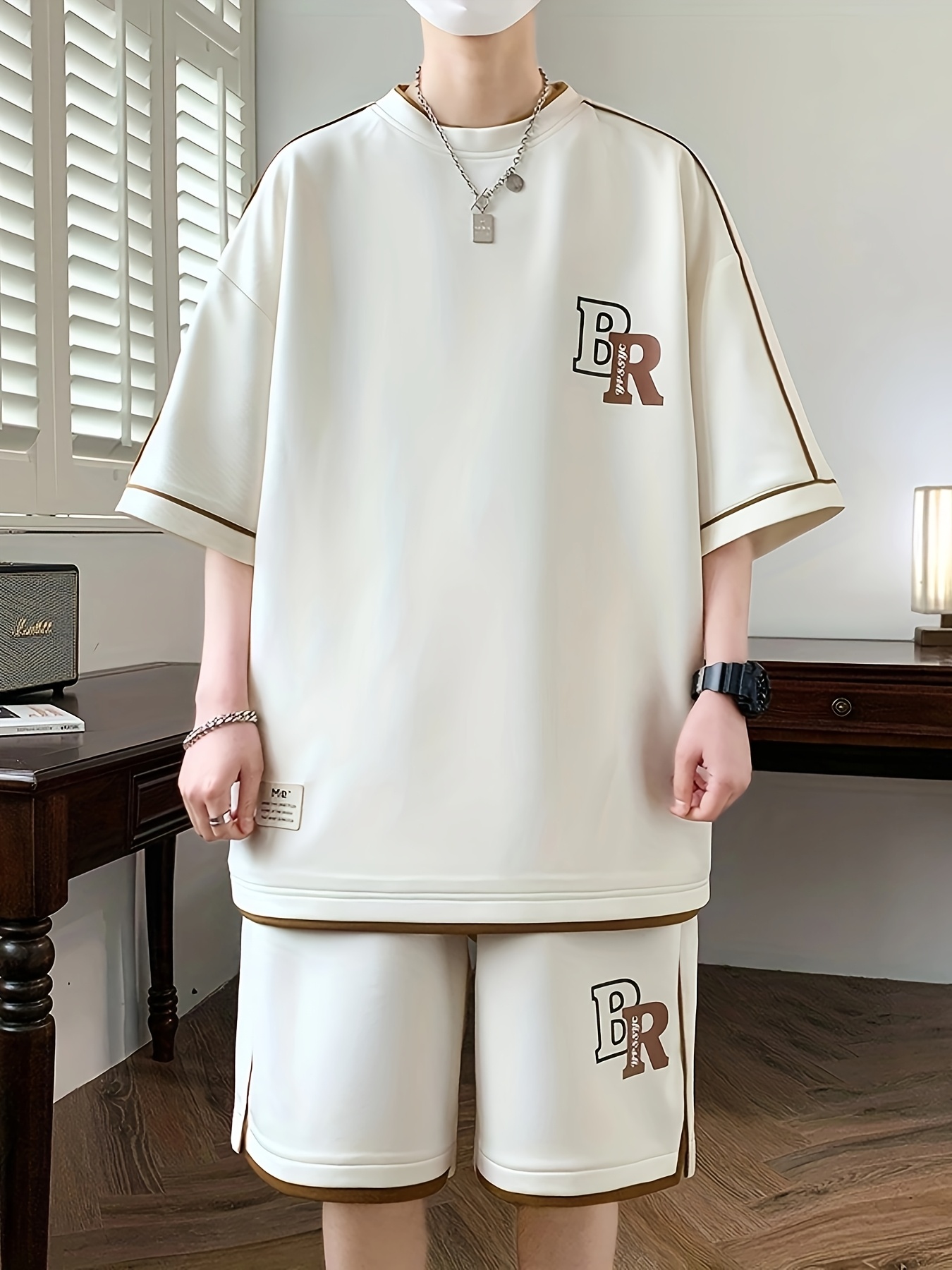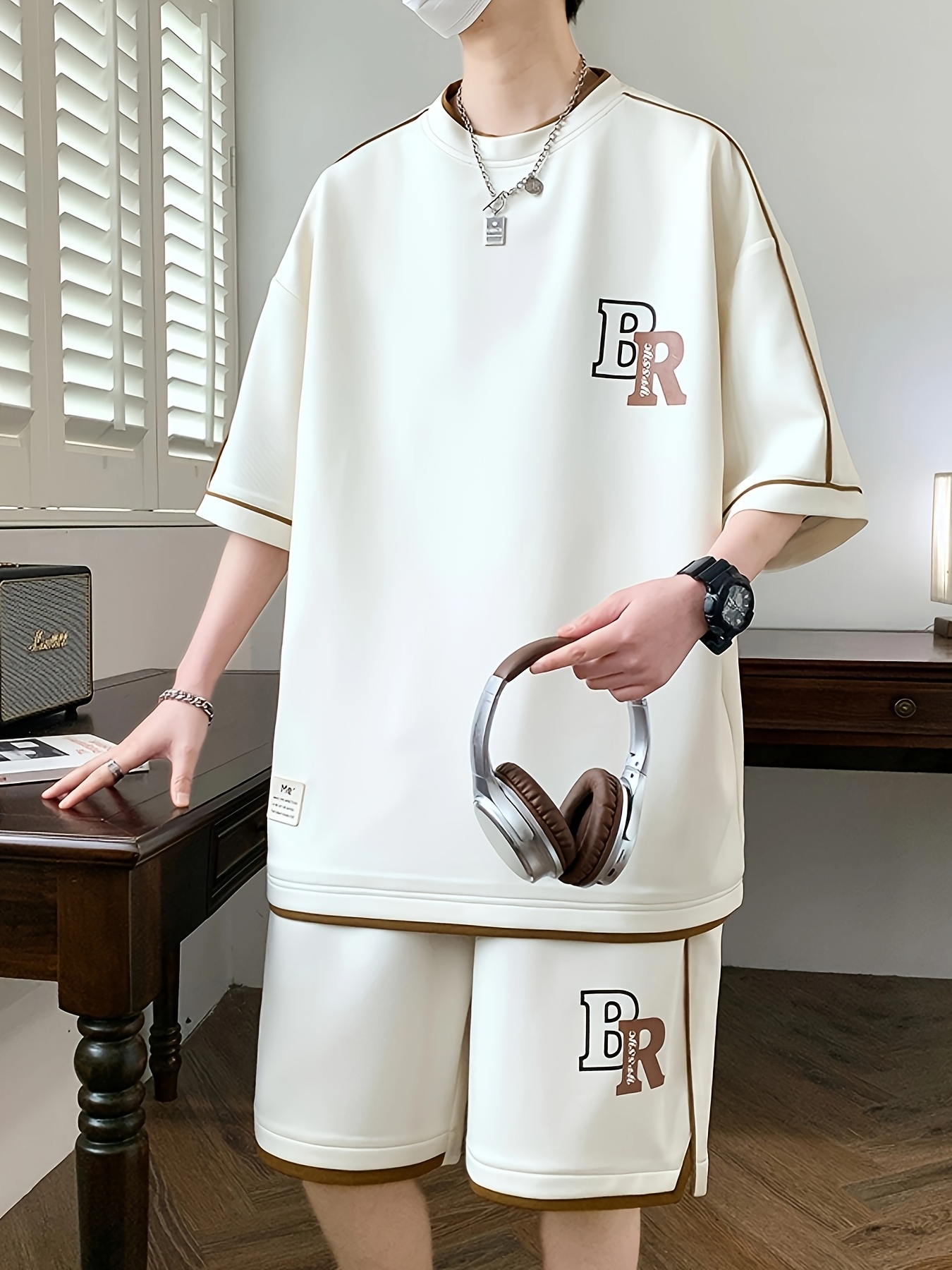 Pearson'S Choice Men'S Casual Two-Piece Summer Outfit Featuring Short Sleeves And Shorts, Suitable for Sports And Leisure, Trendy Vacation Wear, And Workout Clothes for Young Men.