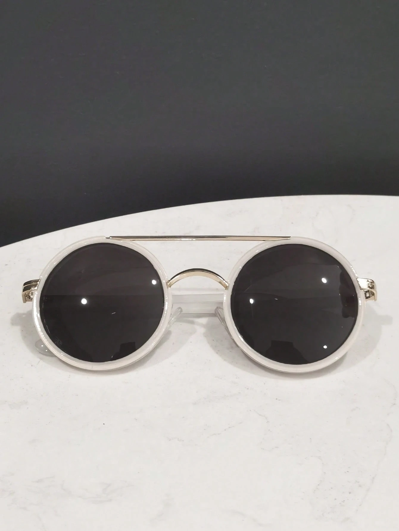 Polarized Sunglasses Women Retro Round Aviator Frame White Fashion Eyeglasses Classic Decoration Outdoor Sports Cycling Glasses Travel Beach Holiday Driving Fishing Summer UV Protection Sunglasses Men