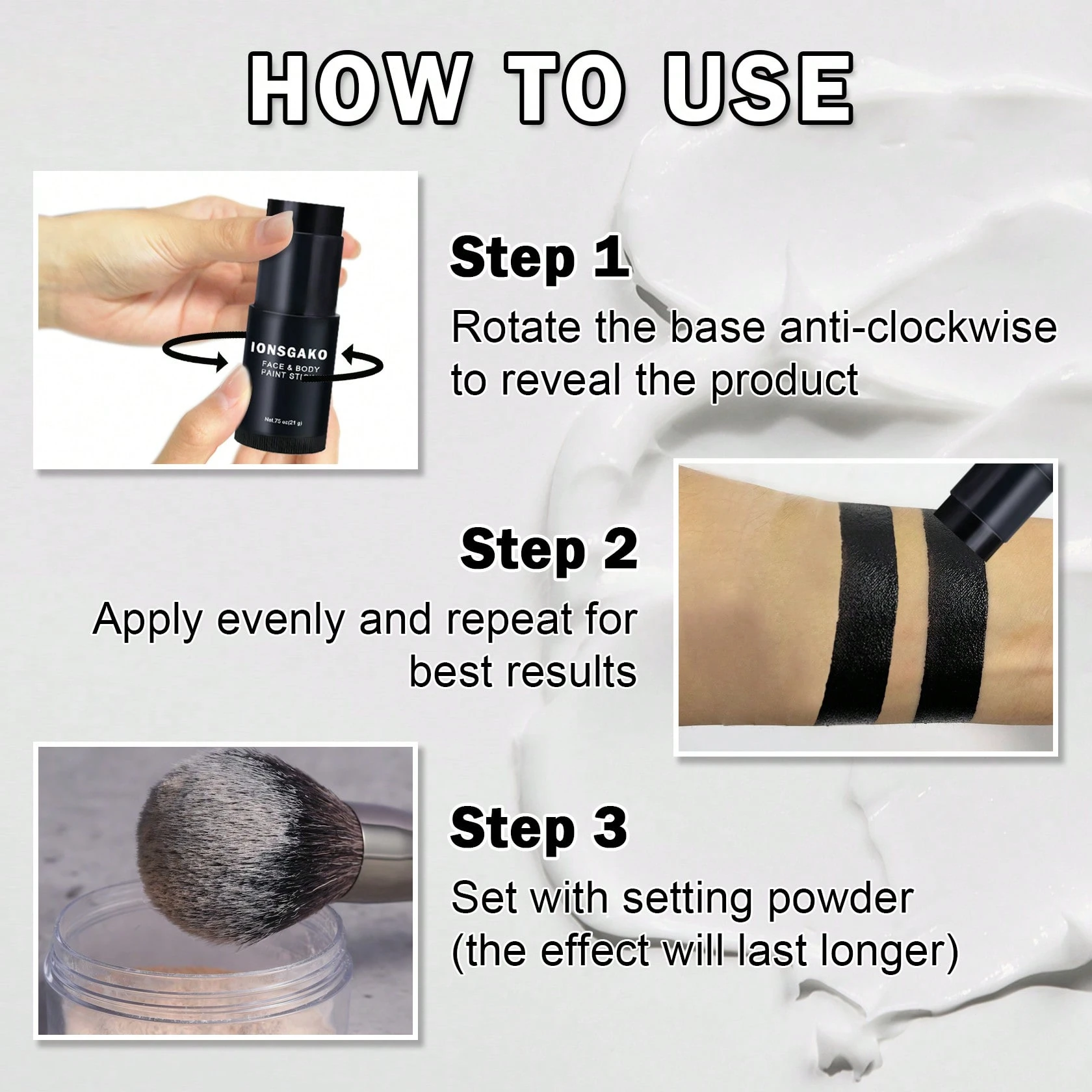 QIUFSSE 2PCS Black And White Face Paint Stick With Brush Eye Black Stick For Sports Halloween Makeup Face Painting Kit For Clown Skeleton Vampire SFX Makeup