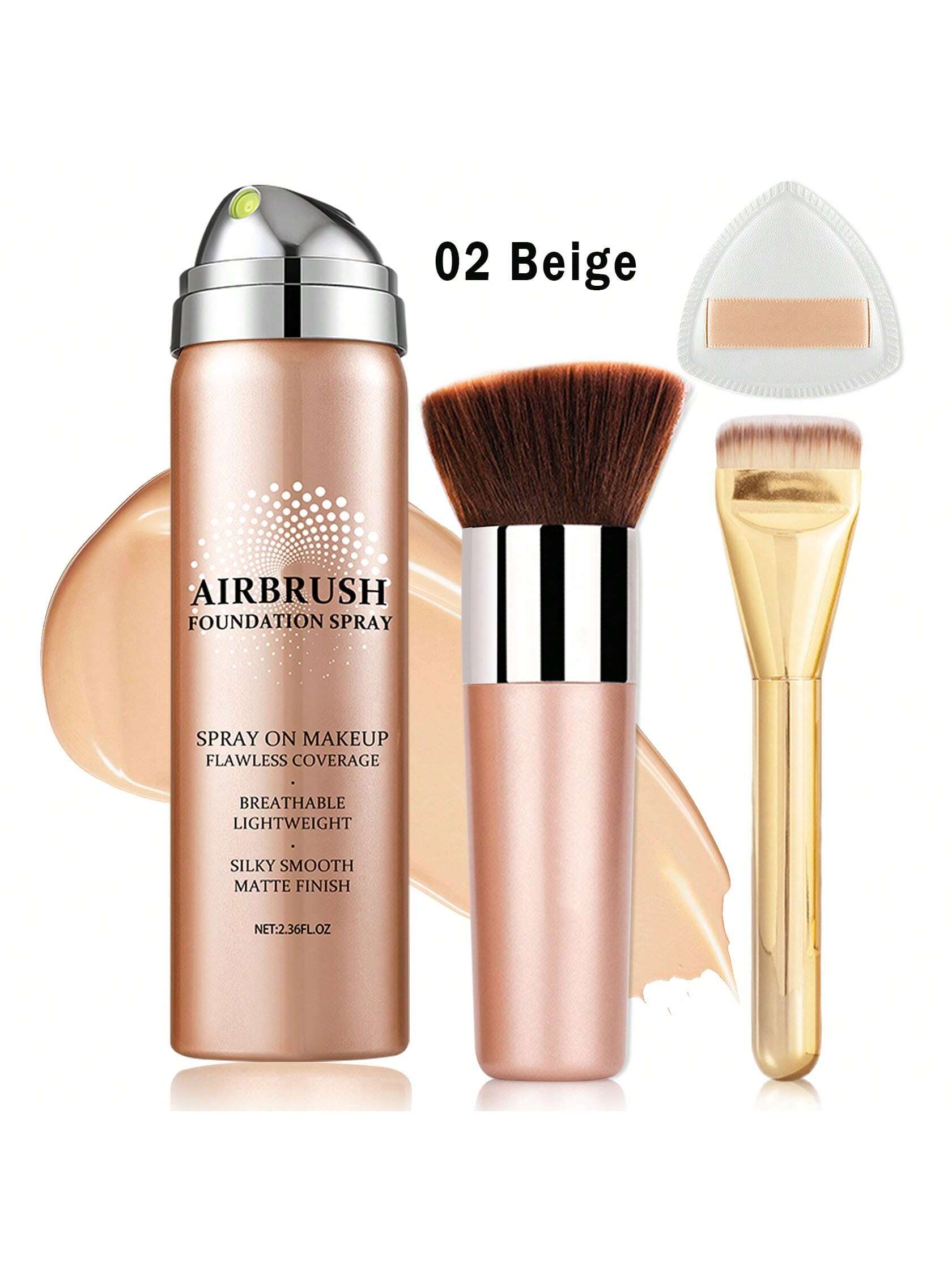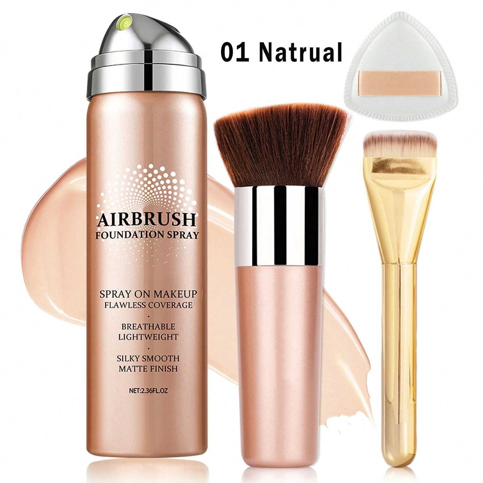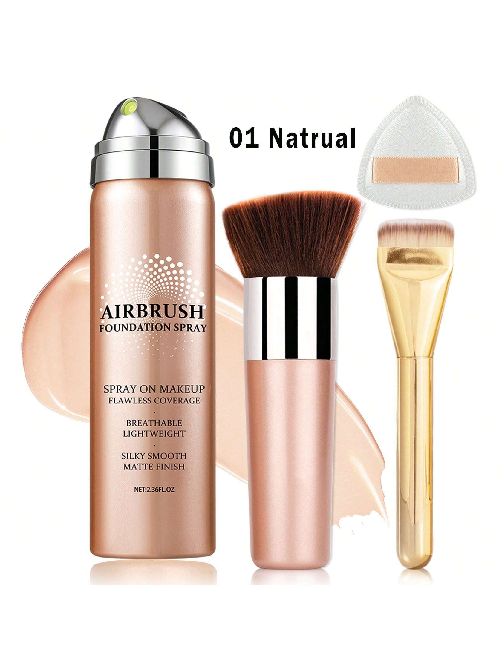 QIUFSSE AirBrush Foundation Makeup, Silky Mist Foundation Makeup Kit With Brush, Full Coverage Foundation For Smooth Radiant Finish, Formula Breathable Lightweight Hydrating