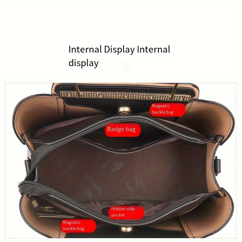 Women's Fashion Vintage Letter Print Versatile Tote Bag, Large Capacity Multi-Compartment Textured Shoulder Bag, Preferred Style for Daily Commute, Work, and Travel, Multifunctional Travel Handbag, Gift for Family