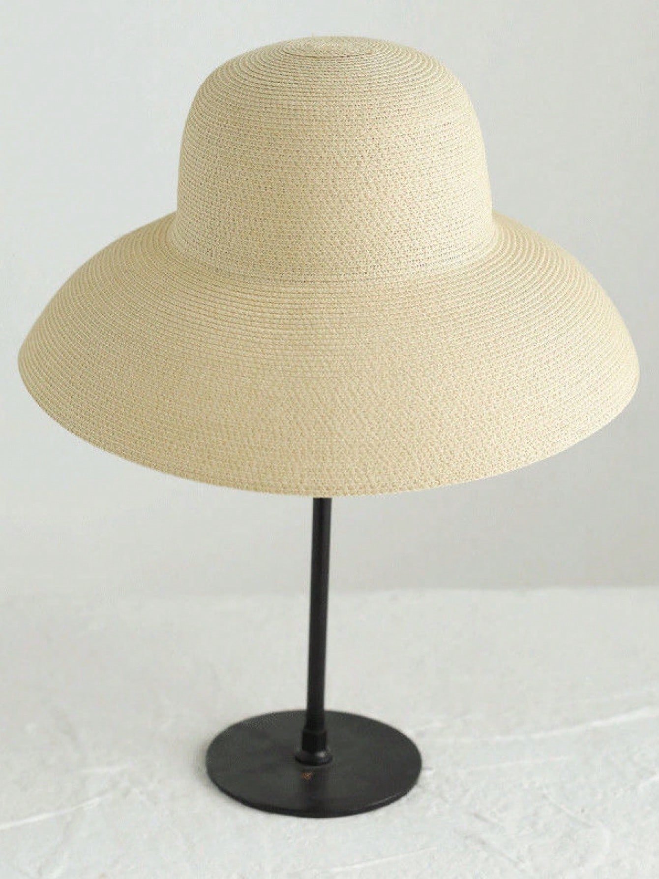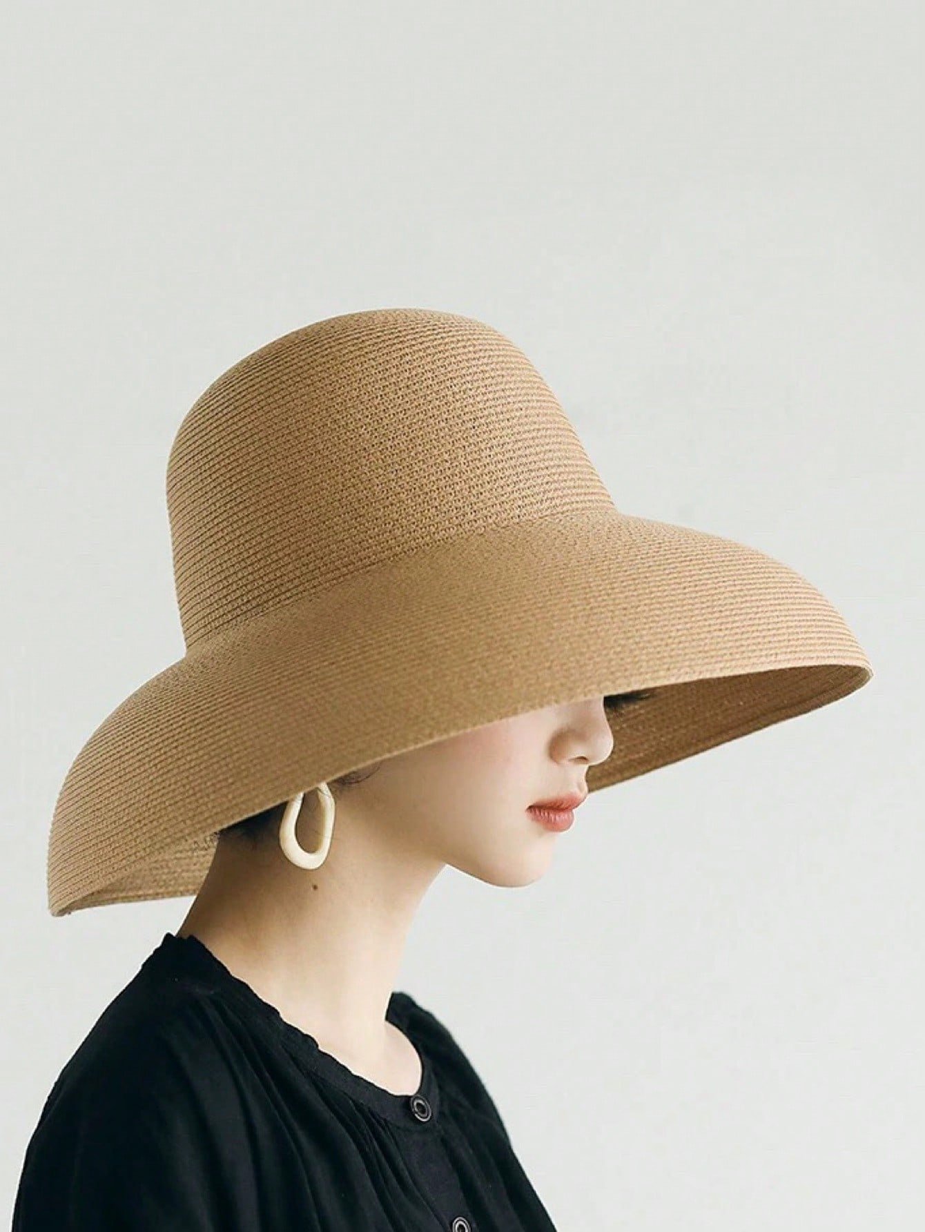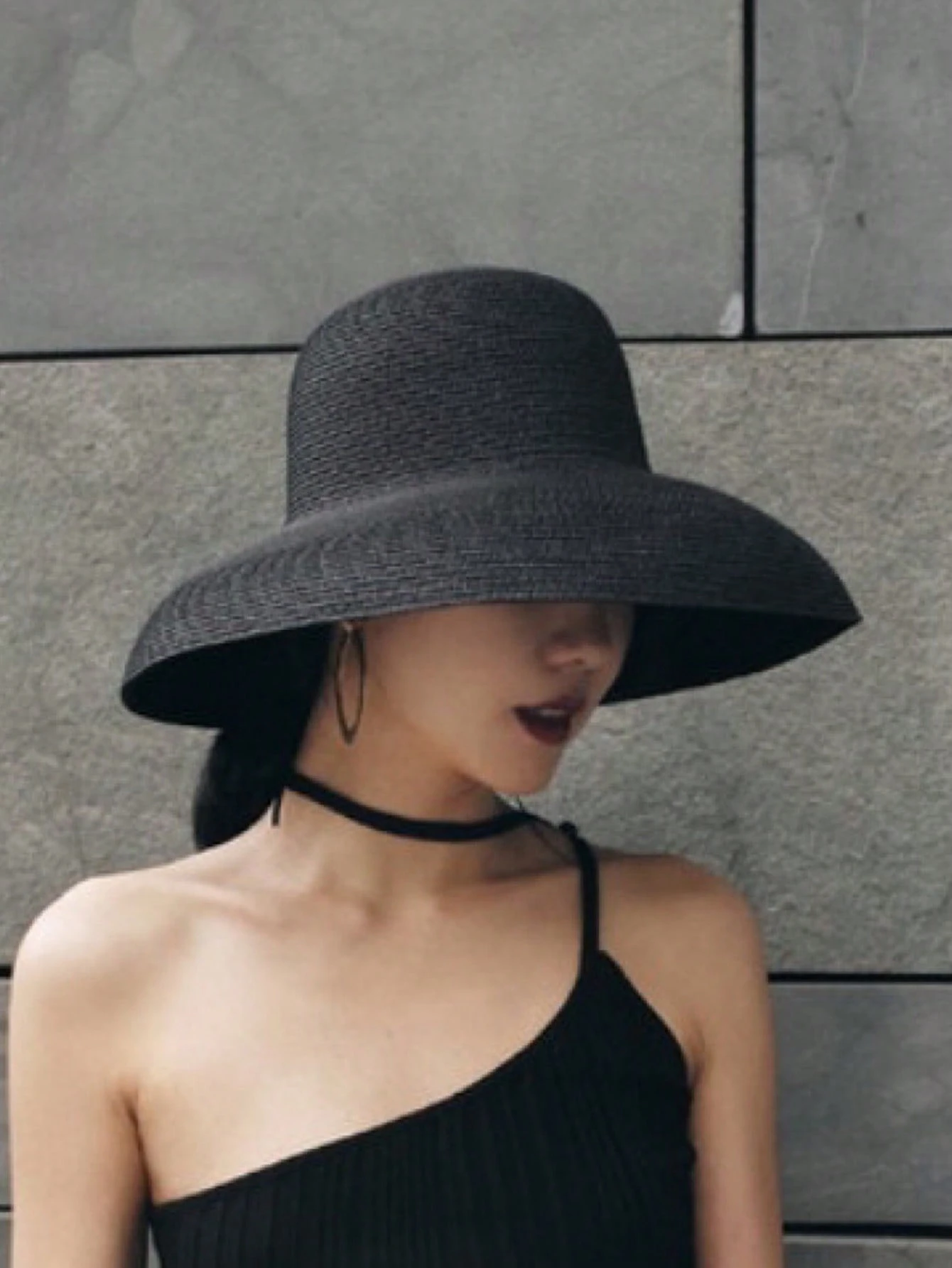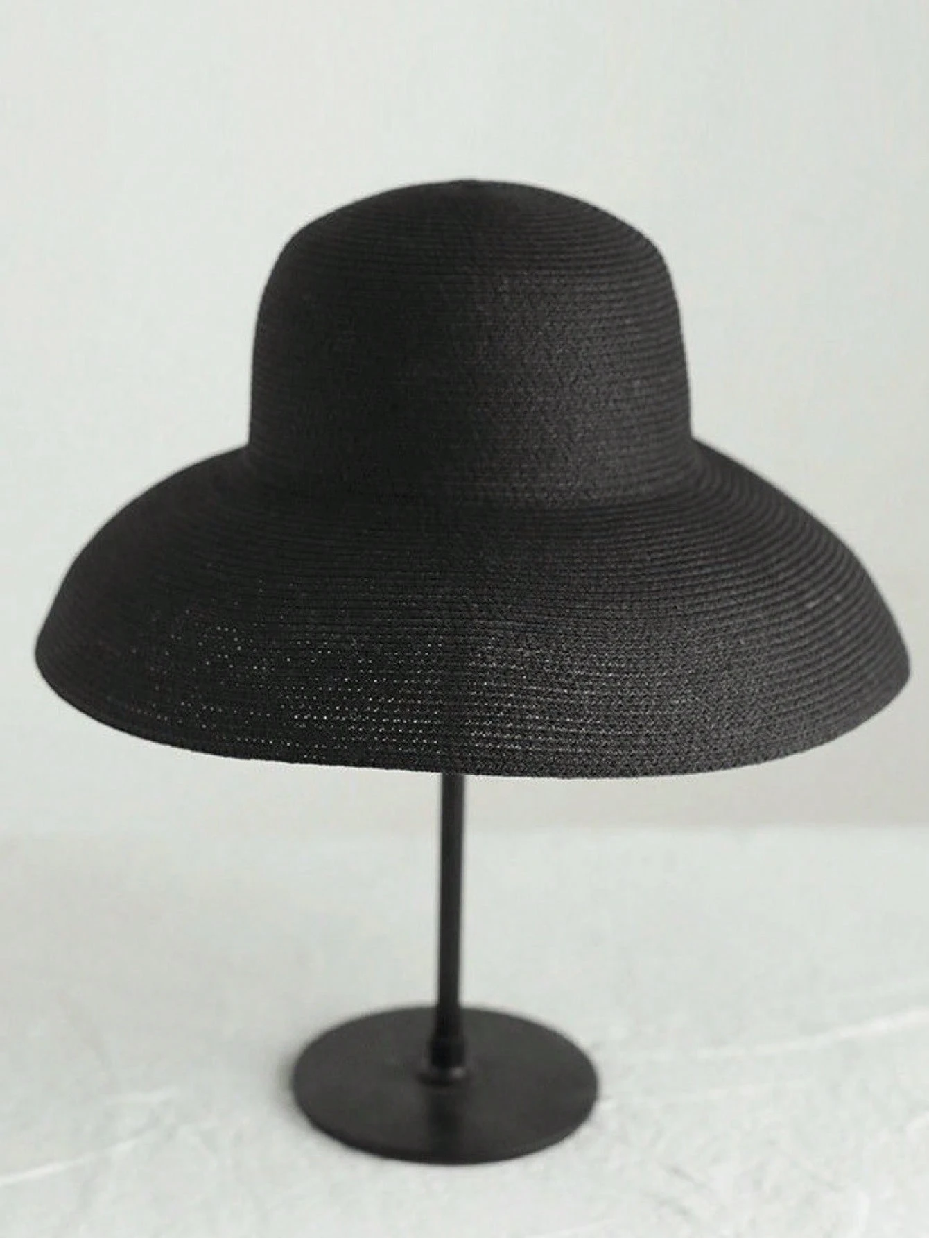 Retro French Style Black Viral Wide Brim Sun Hat, Women Summer Beach Hat UV Protection Elegant Casual Bohemian Vintage Chic Polyester Hat