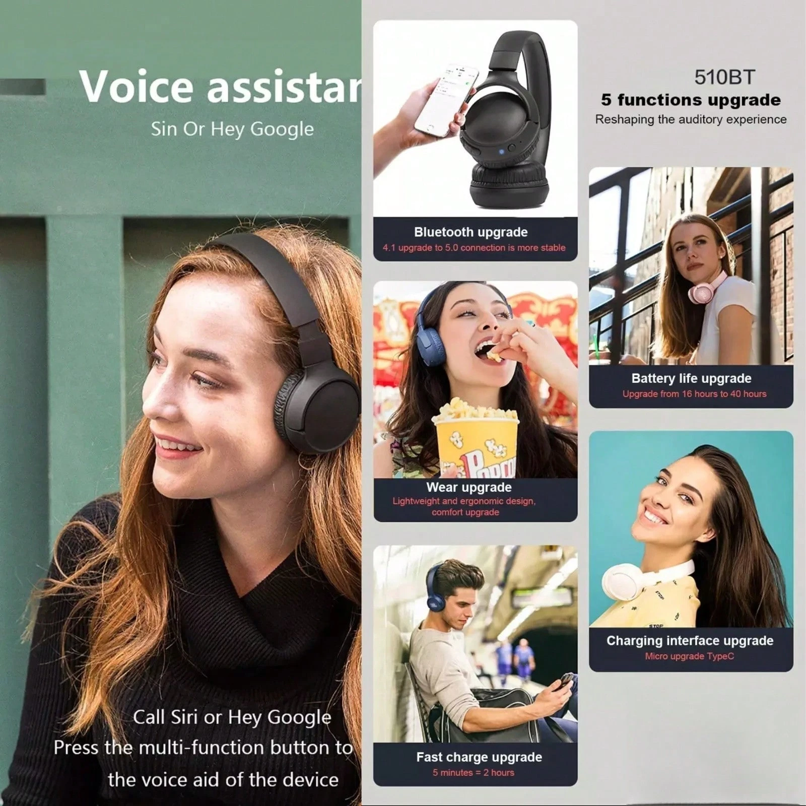 Home Electronics Airpods Retro Style On Ear Headphones 510BT Lightweight And Comfortable Wireless Bluetooth Headphones Long Lasting Battery, Built-In Microphone For Call, Foldable And Comfortable, Noise Reduction Compatible With Android And IOs New In Box With Type-C USB Cable Id