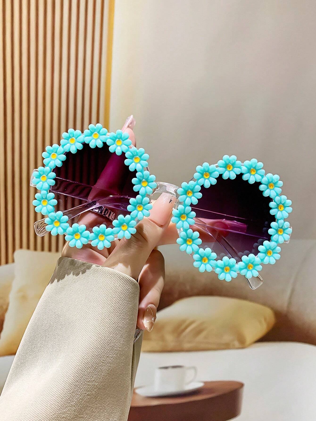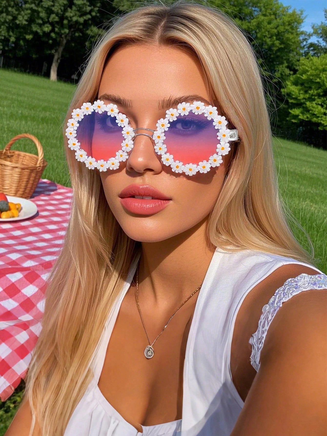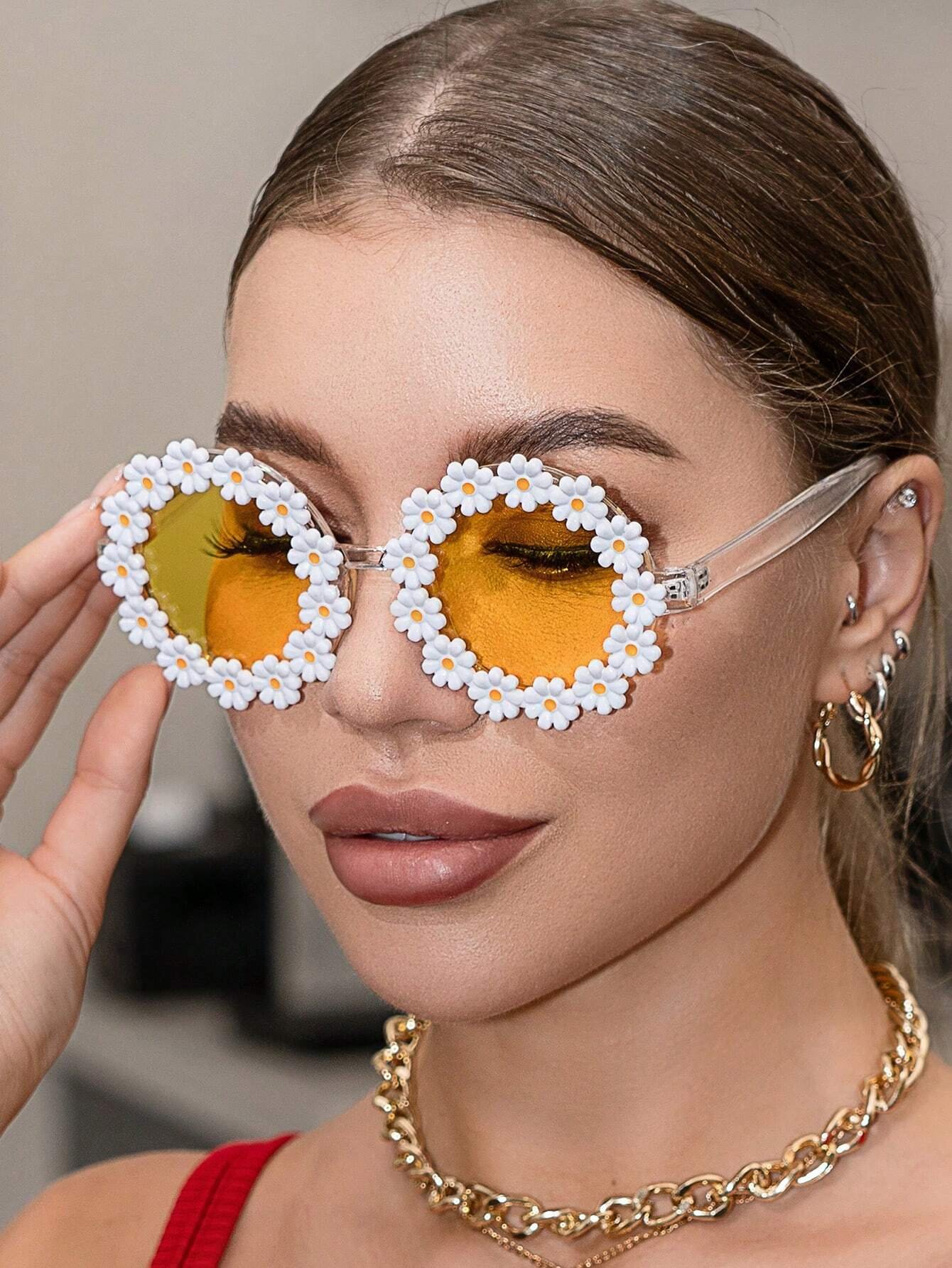 Round Flower Sunglasses For Women, Made Of Plastic. Suitable For Fashionable Street Snap, Party, Music Festival And Wedding Season Decoration, Y2k Glasses. Boho Sunglasses Beach Sun Glasses Halloween Beach Accessories For Women Sun Glasses Sunglasses Shad