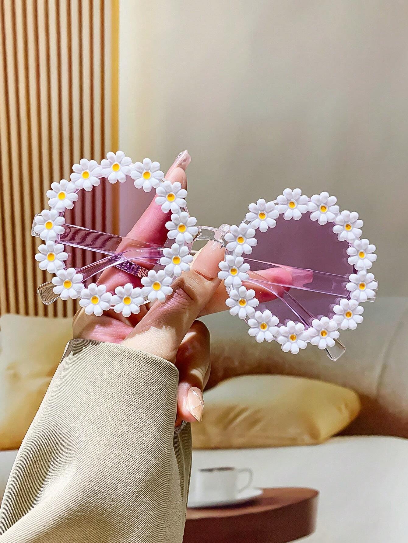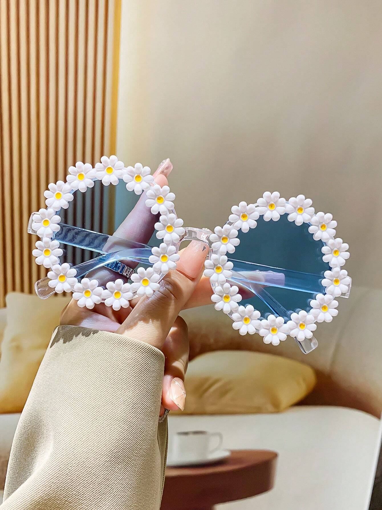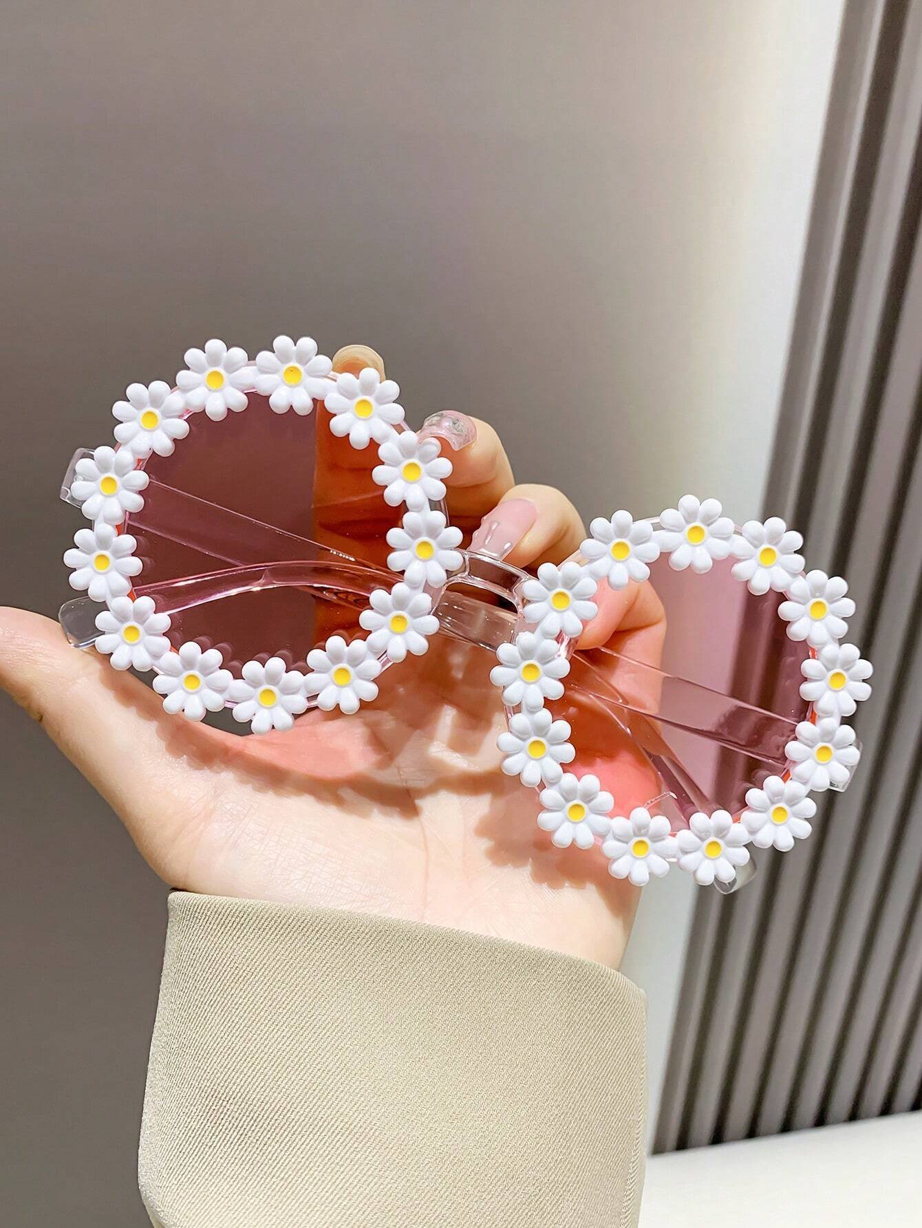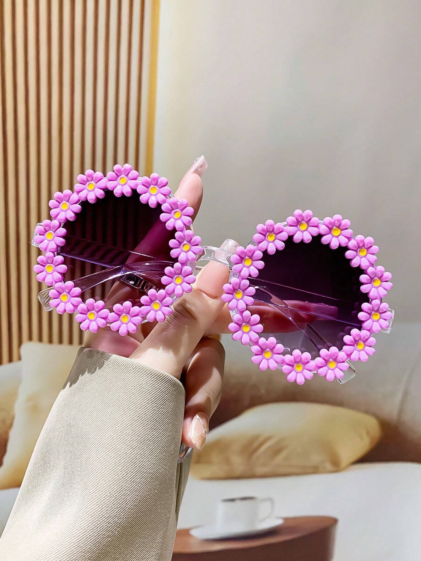 Round Flower Sunglasses For Women, Made Of Plastic. Suitable For Fashionable Street Snap, Party, Music Festival And Wedding Season Decoration, Y2k Glasses. Boho Sunglasses Beach Sun Glasses Halloween Beach Accessories For Women Sun Glasses Sunglasses Shad