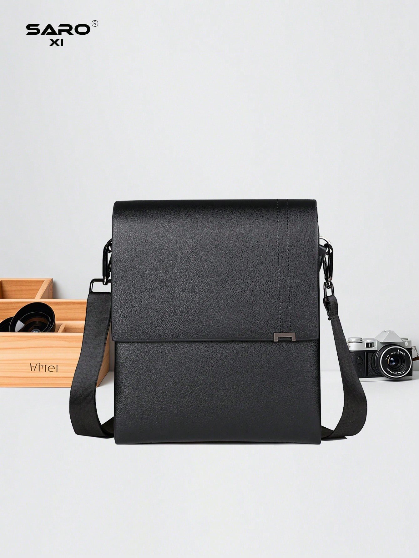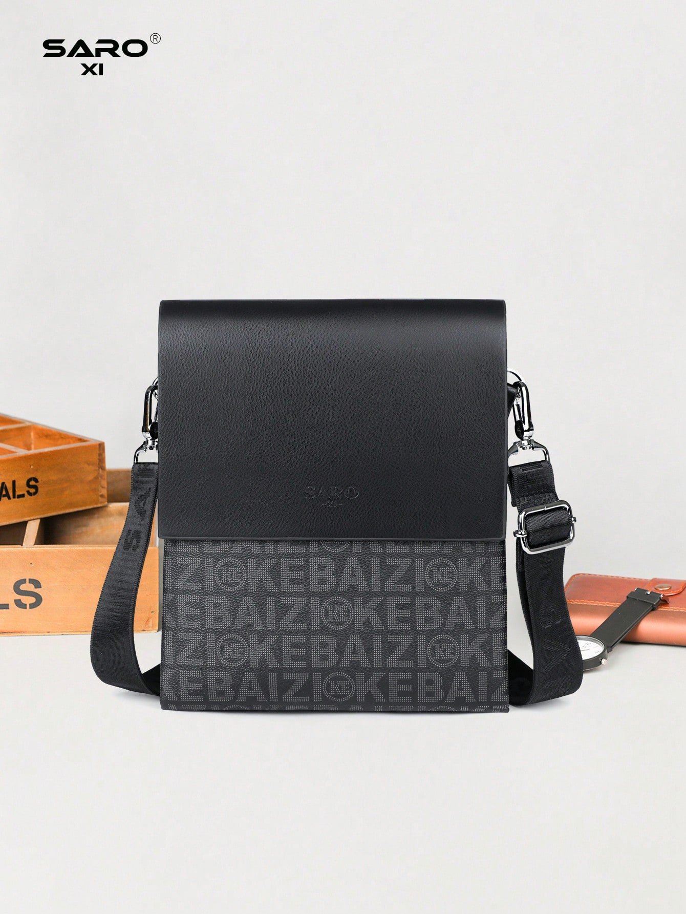 saroxi 1pc Minimalist PU Men's Crossbody Bag, Black/Brown, Multifunctional Shoulder Bag For Casual, Commuting, Gift For Boyfriend