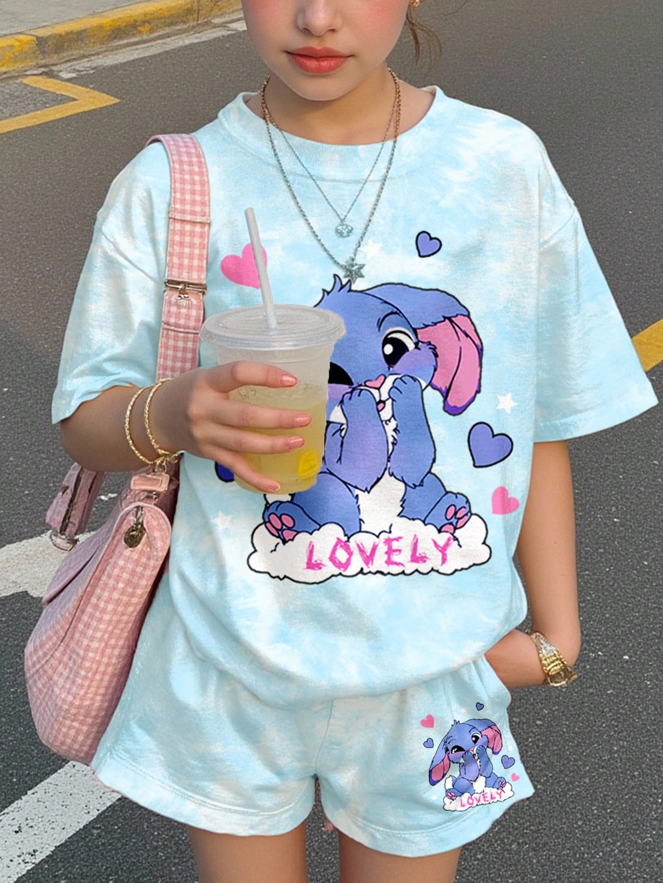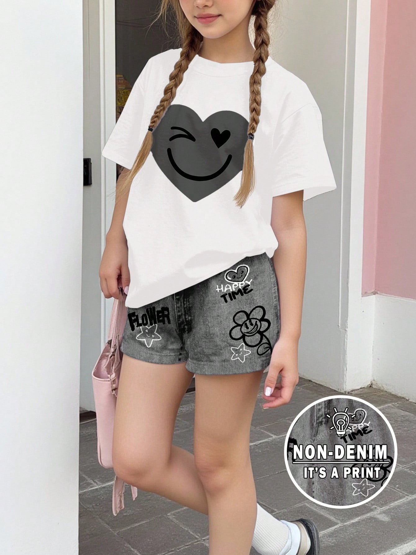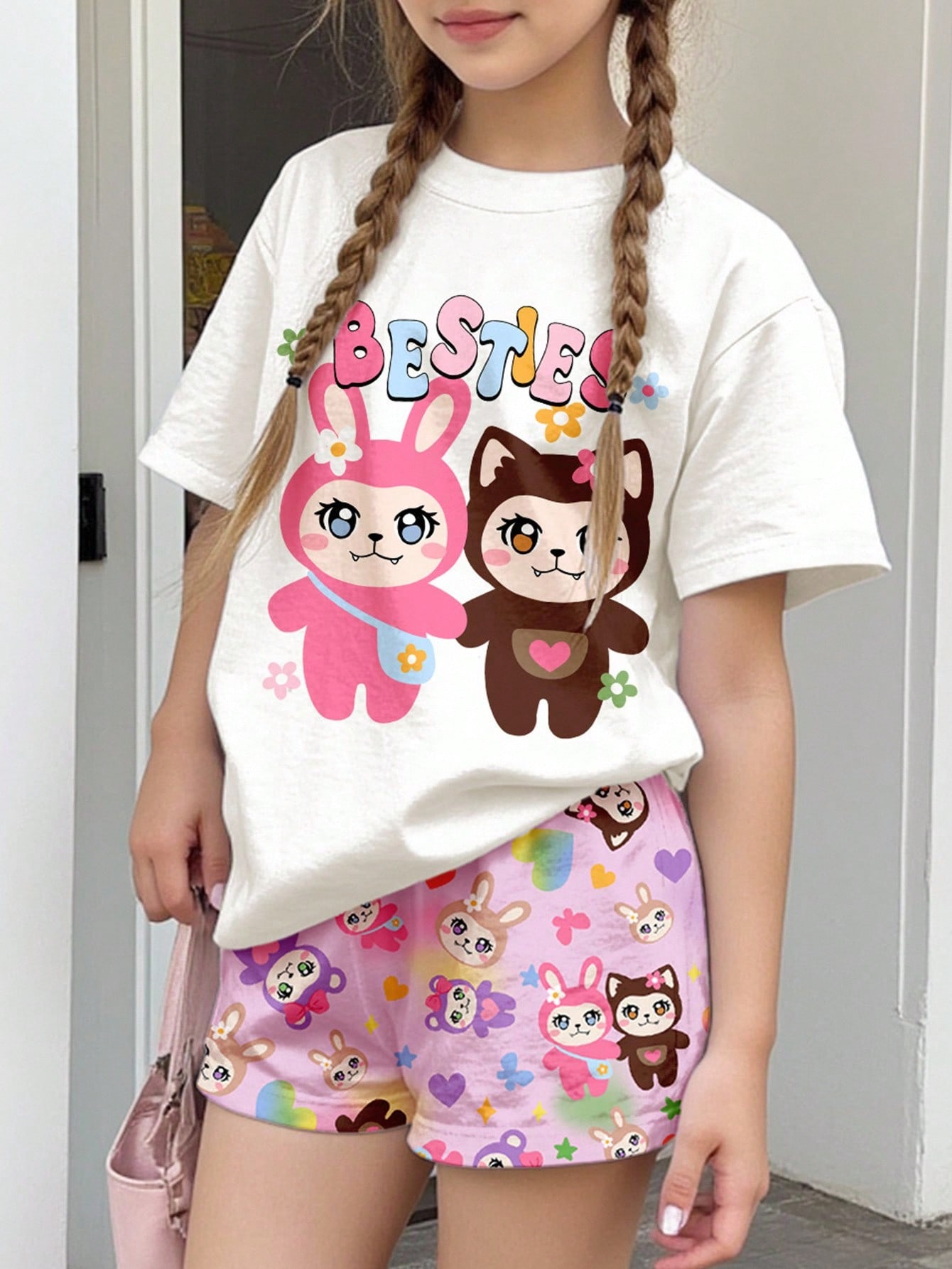 SHEIN 2pcs/Set Tween Girls Navy Blue & Pink Fashionable Streetwear Jersey Number 95 Graphic Round Neck Short Sleeve T-Shirt And Shorts Set, Suitable For Summer, Autumn Outfits For Outside, Easy Comfort, Autumn Layers For Kids, Stylish Kids, Casual Wear, K