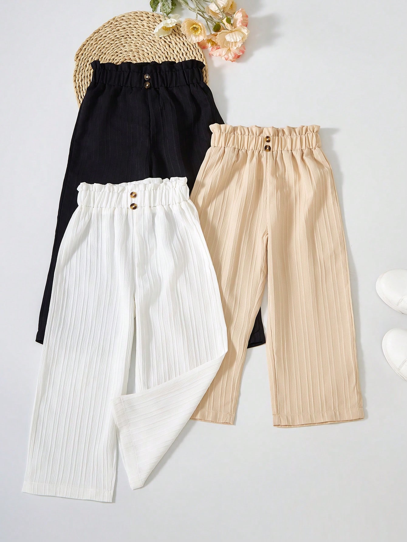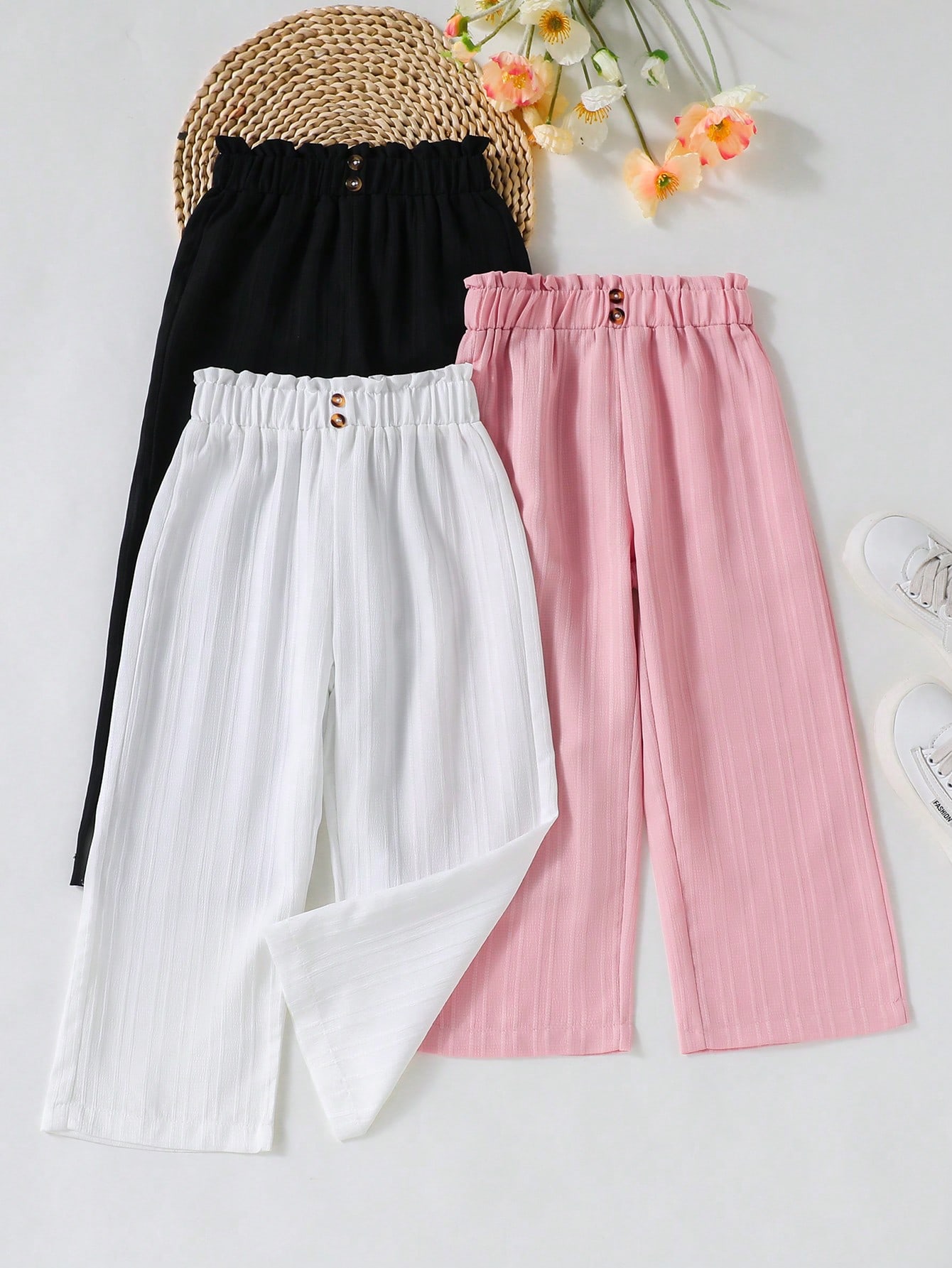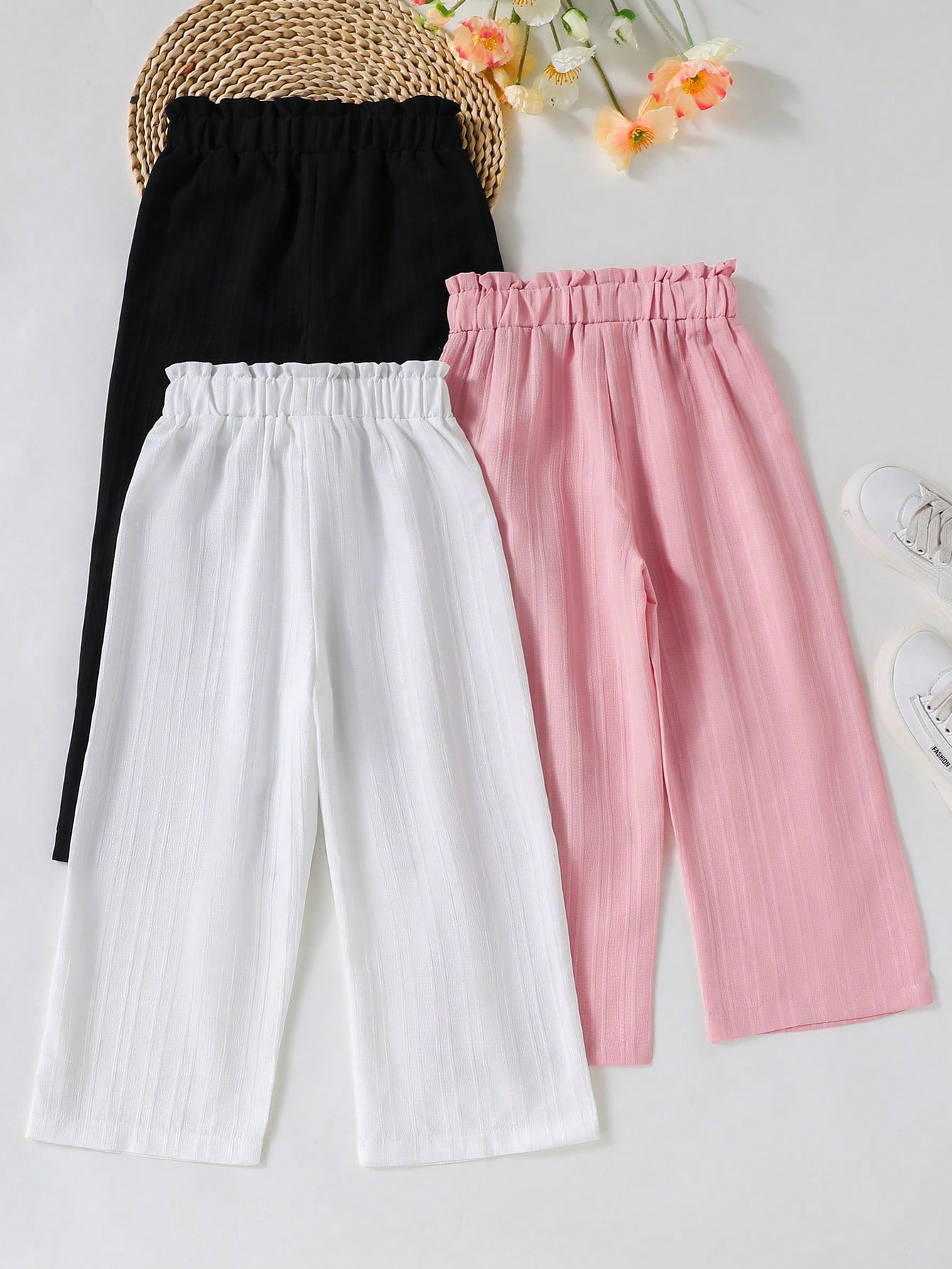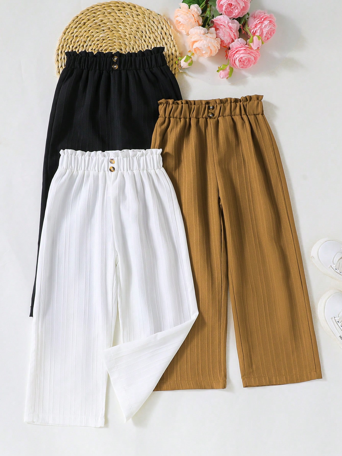 SHEIN 3pcs Young Girl Casual Comfy Wide Leg Pants, Suitable For Spring & Autumn