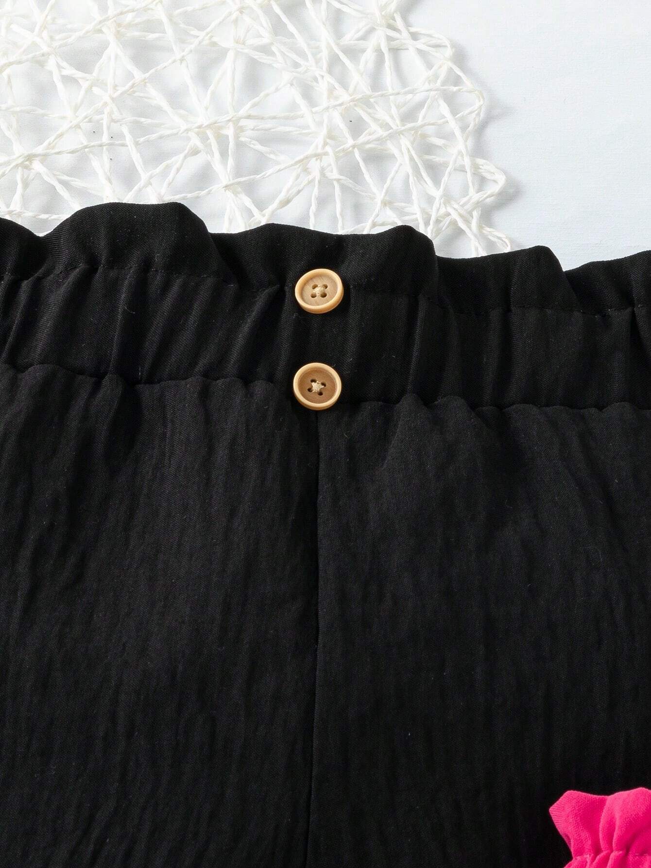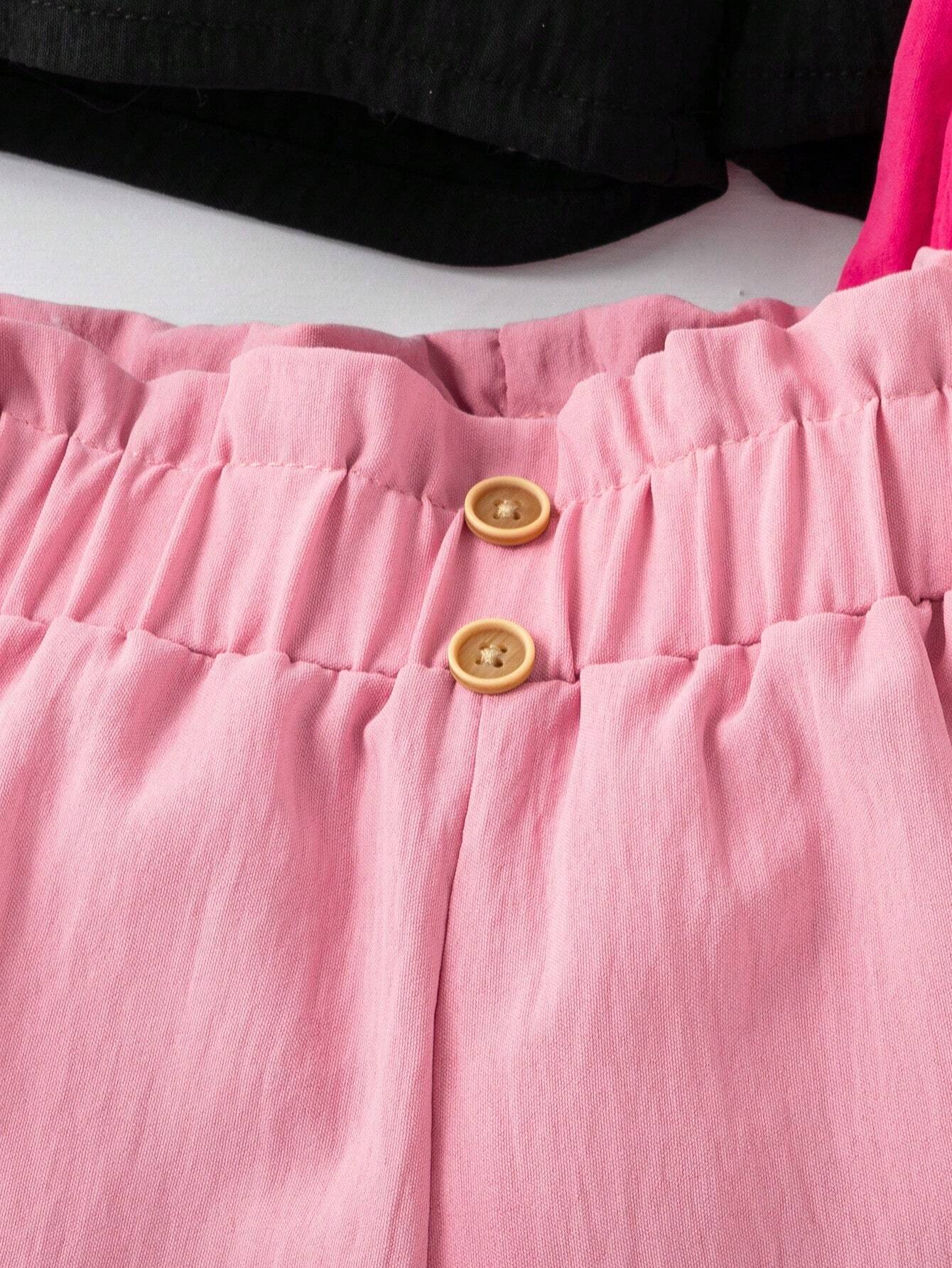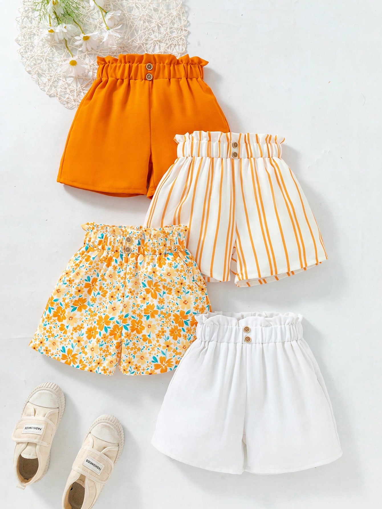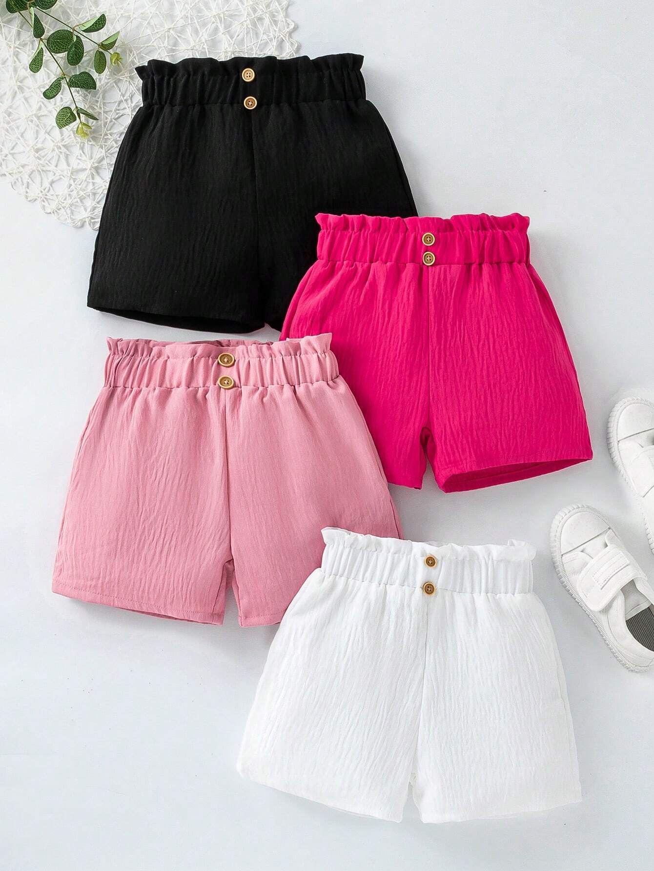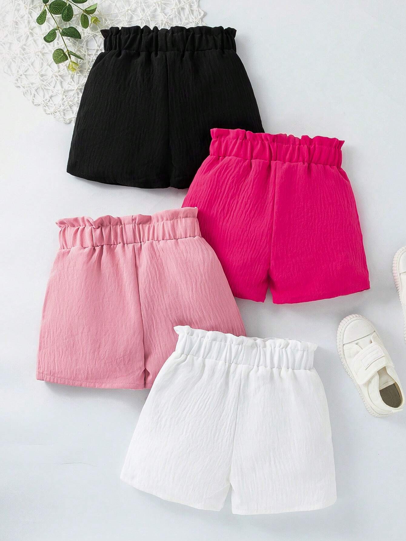 SHEIN 4pcs/Set Young Girls' Simple Style Casual Elastic Waistband Shirred Shorts Four-Piece Set For Summer