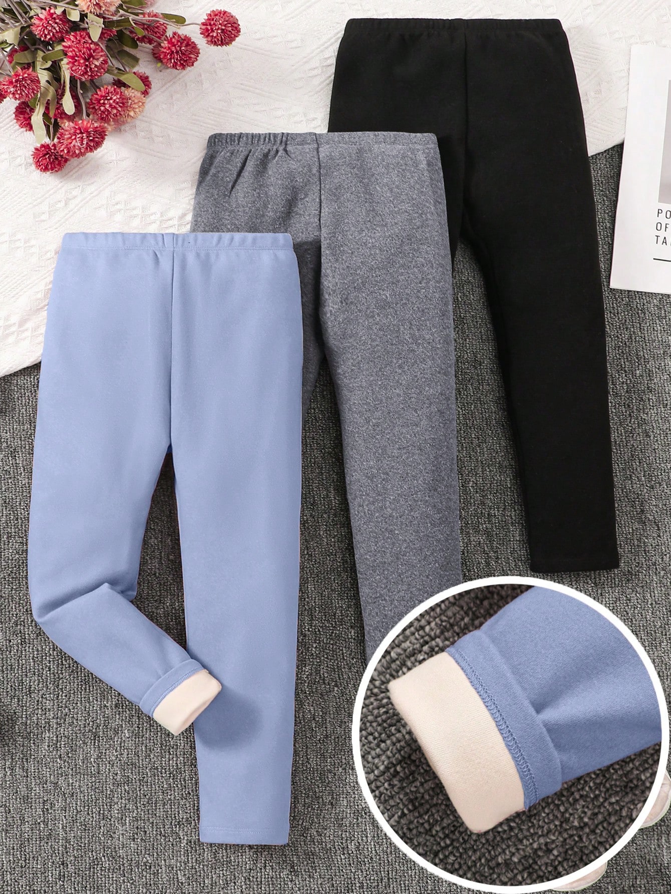 Young Girls Thin Flocking Flare Pants, 2025 Autumn/Winter New Simple Versatile Fleece Lined Trousers, Fashionable Young Girl Wide Leg Pants For Outdoor Wear, Elegant Stretchy Girls Long Pants