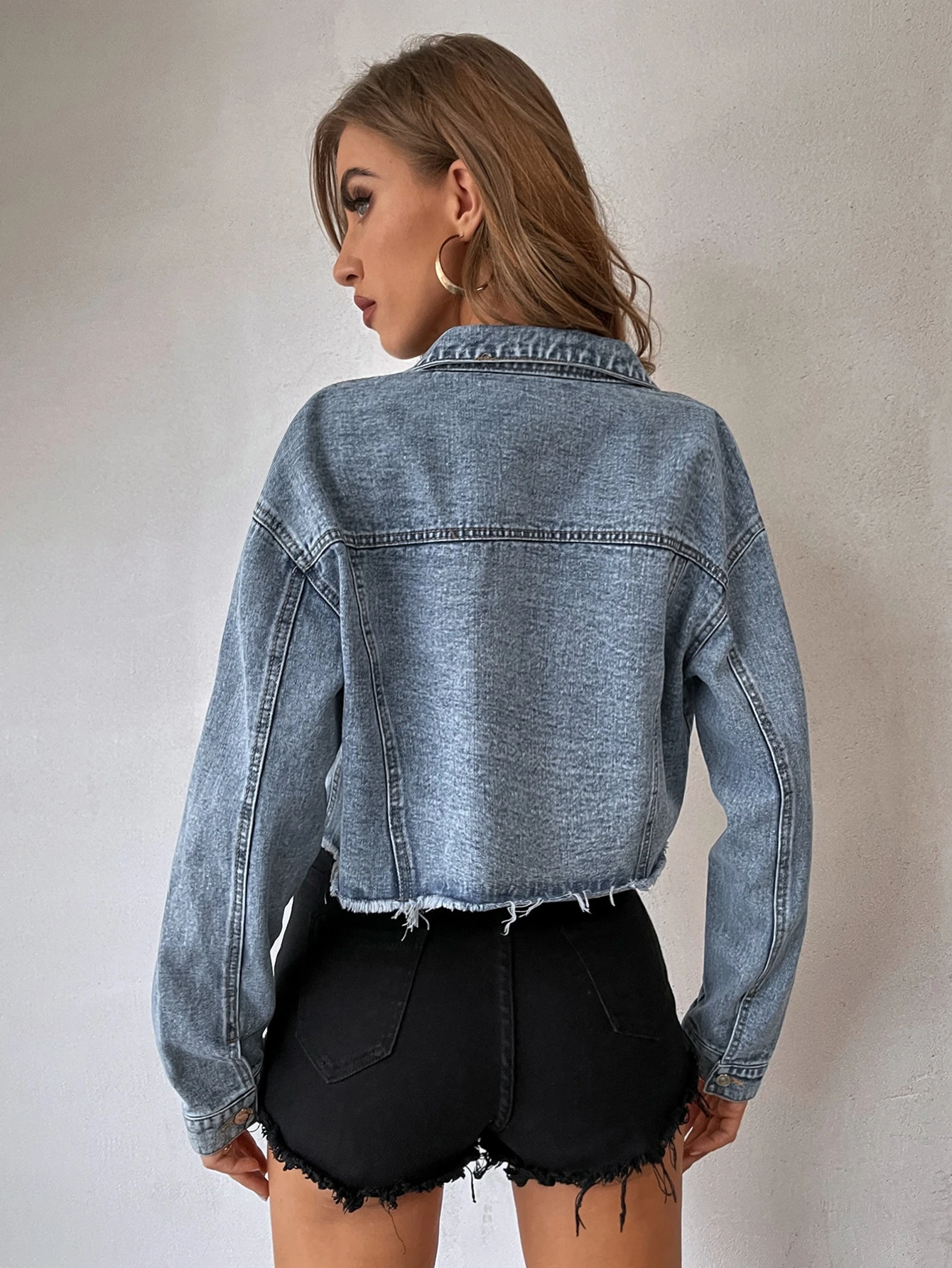 Be the first to review “SHEIN Essnce Rand Zak Ruwe hem Voorpand met Knoopjes Vlak Denim jas” Cancel reply