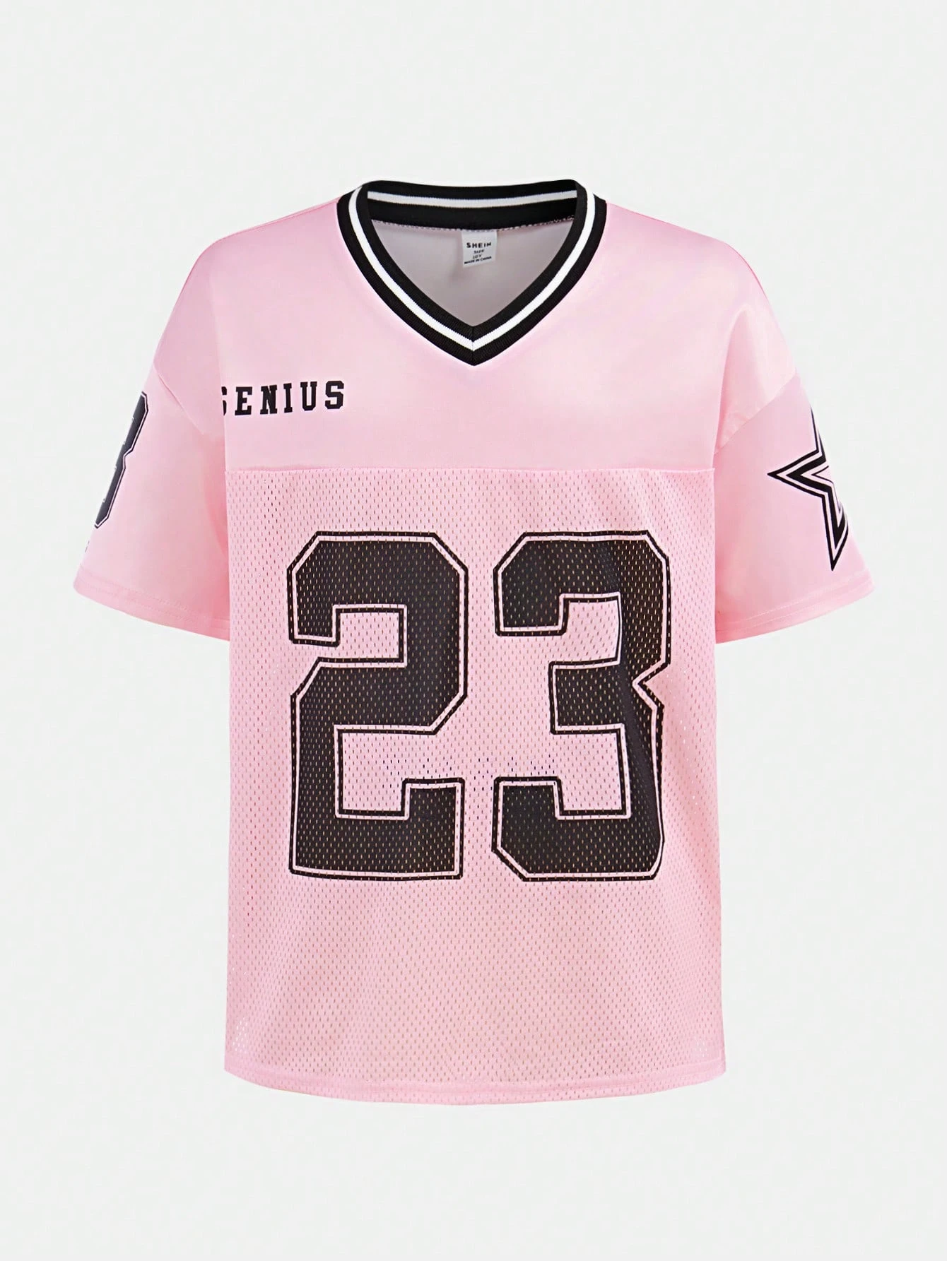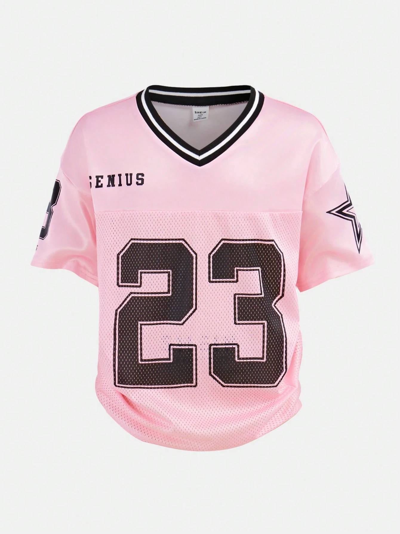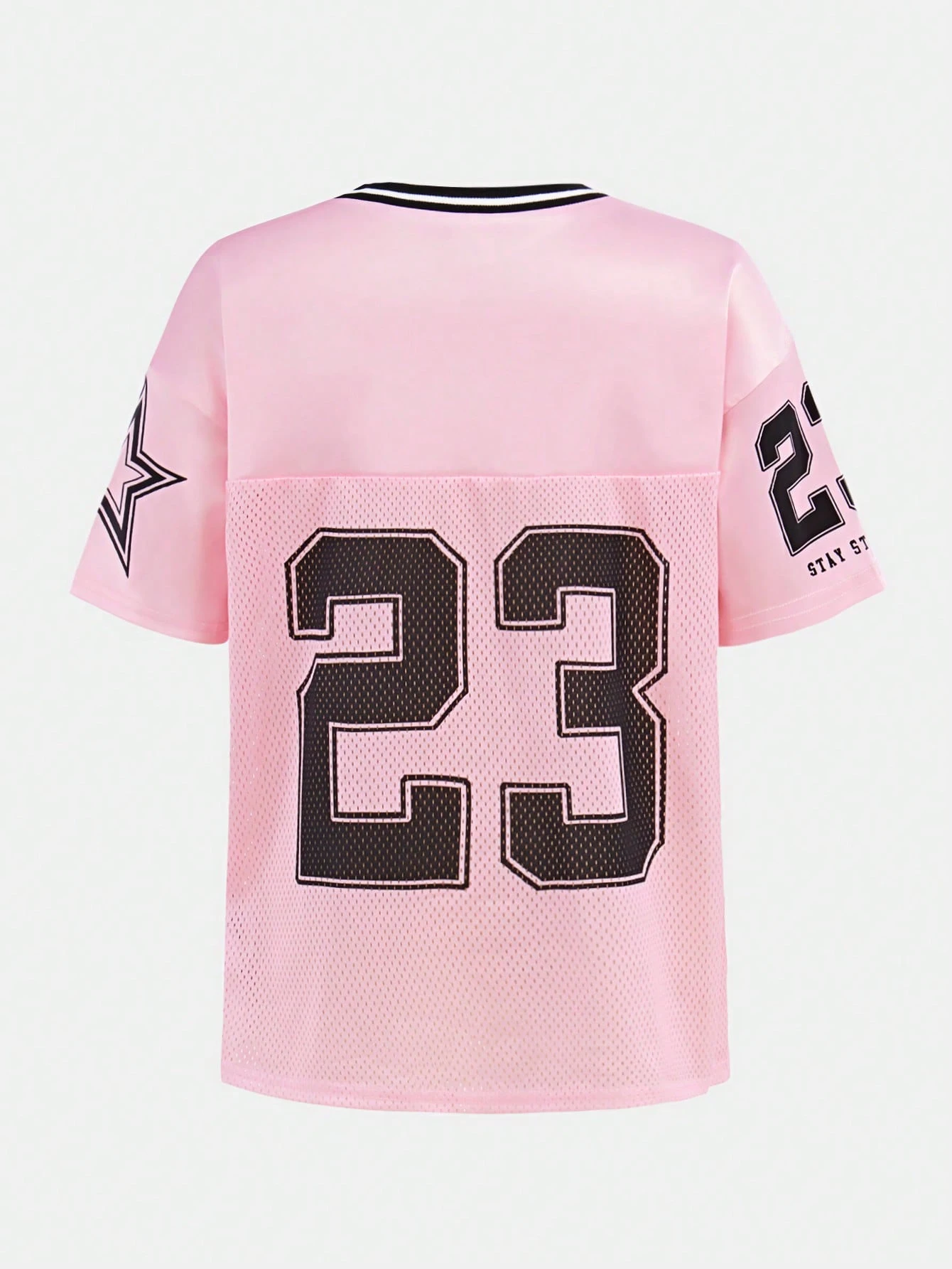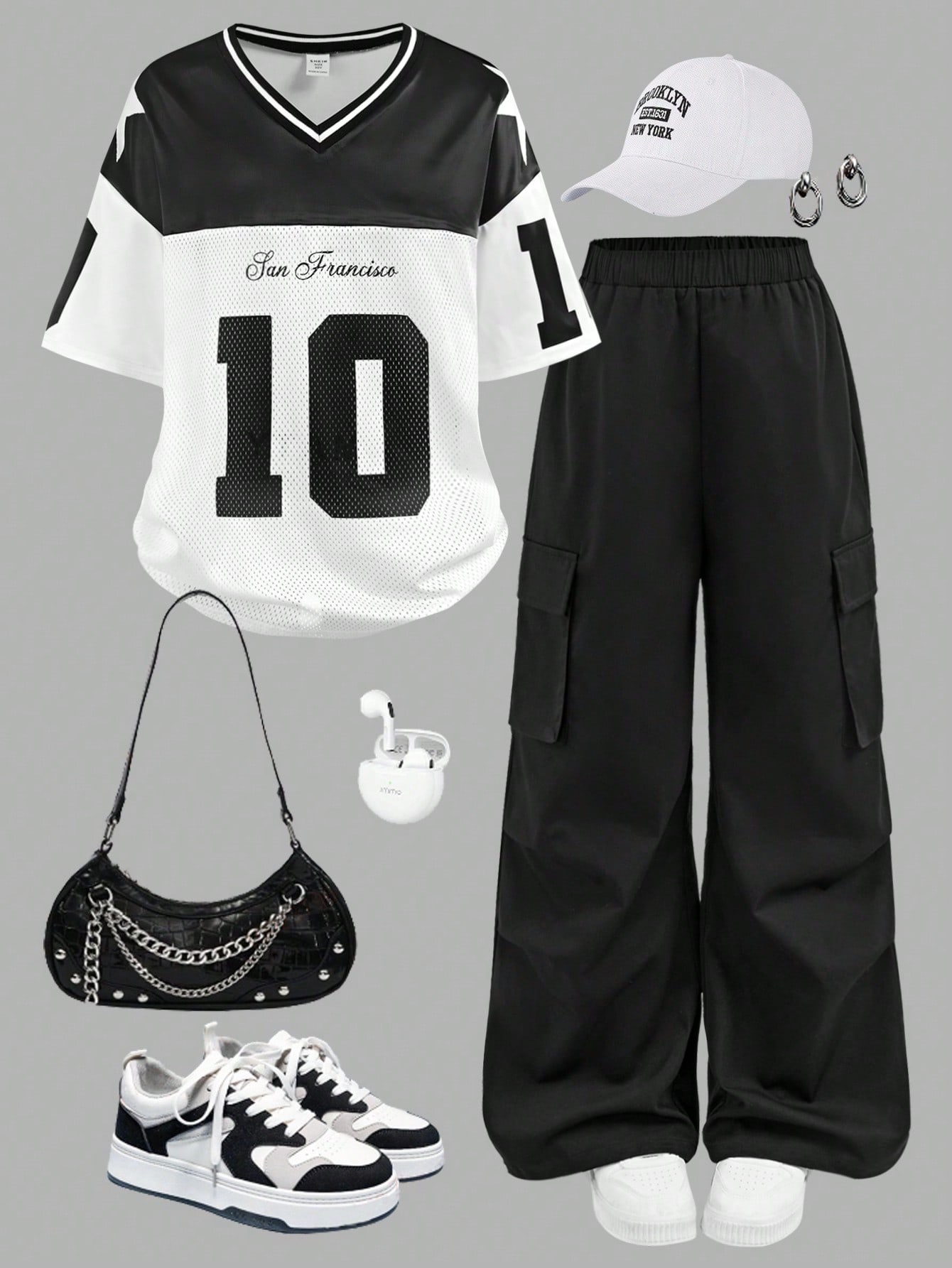 SHEIN Girlism Tween Girl Casual Streetwear Loose Jersey Print Top And Wide Leg Pants 2-Piece Set