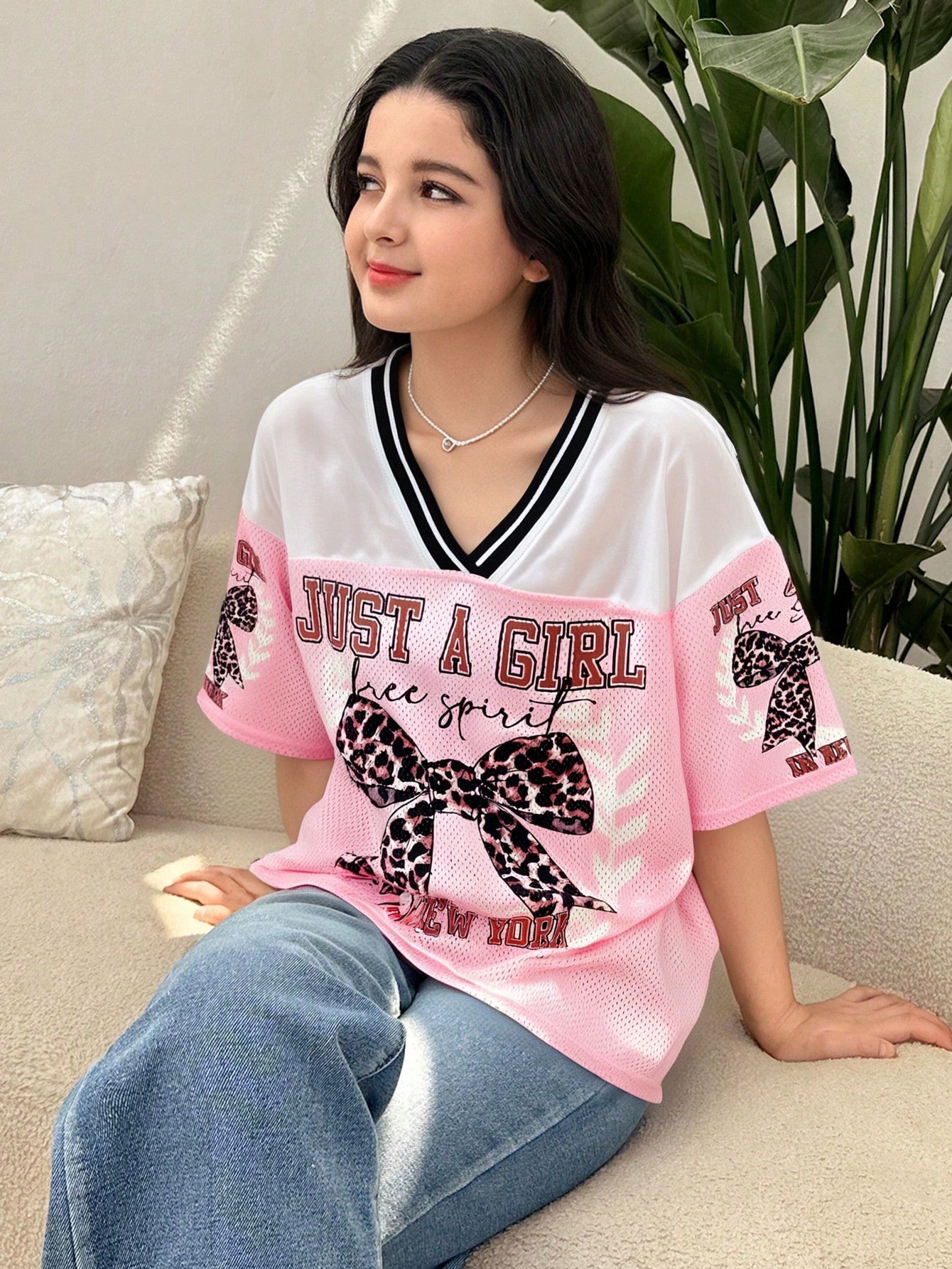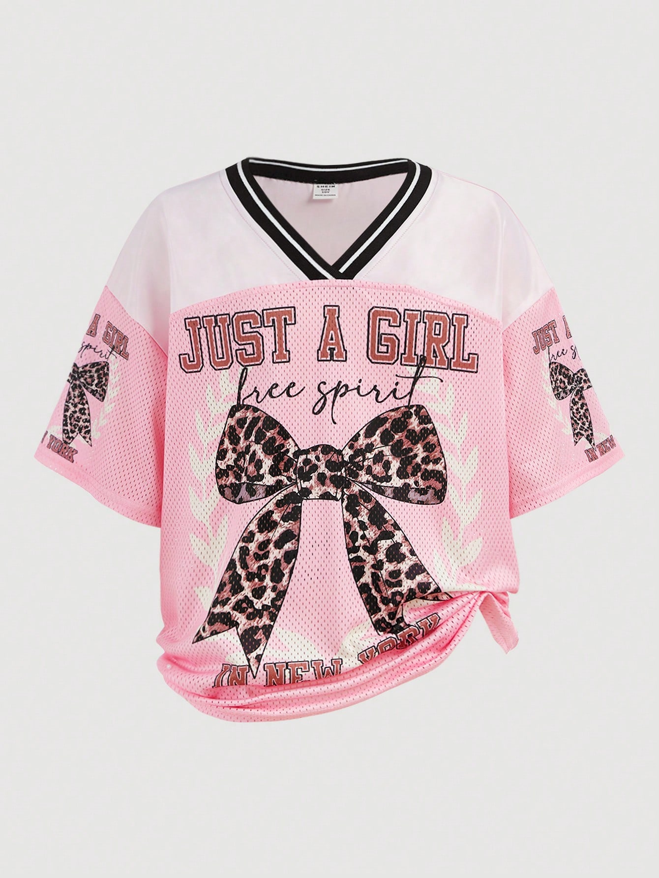 Be the first to review “SHEIN Girlism Tween Girls Y2K Casual Streetwear Leopard Bow Slogan Graphic Print Mesh Splice V-Neck Boxy Short Sleeve Knit T-Shirt, Pink” Cancel reply