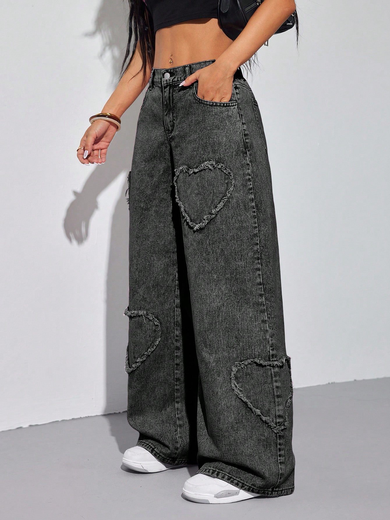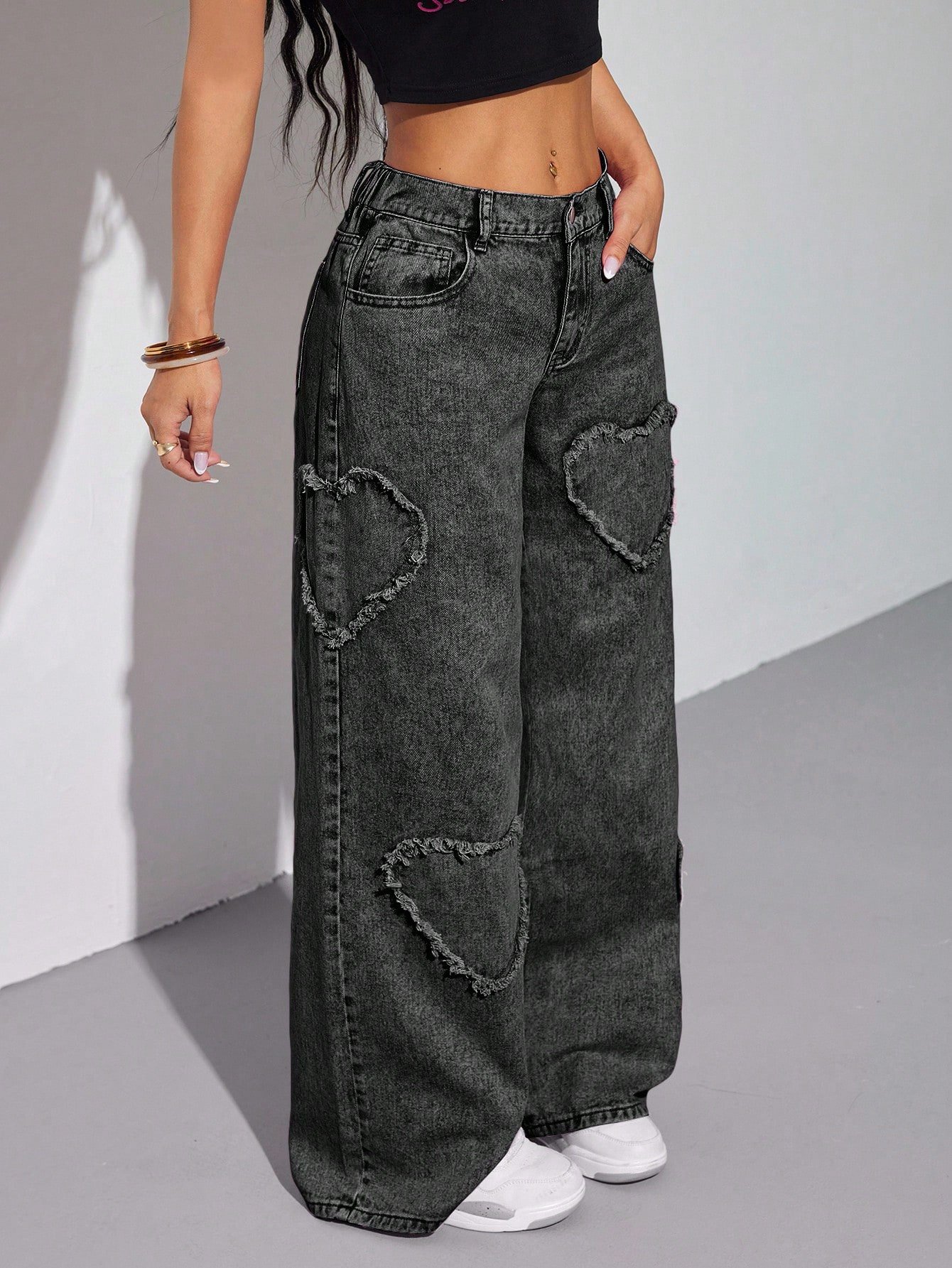 SHEIN PETITE Women's Casual Versatile Button Pocket Wide Leg Straight Jeans
