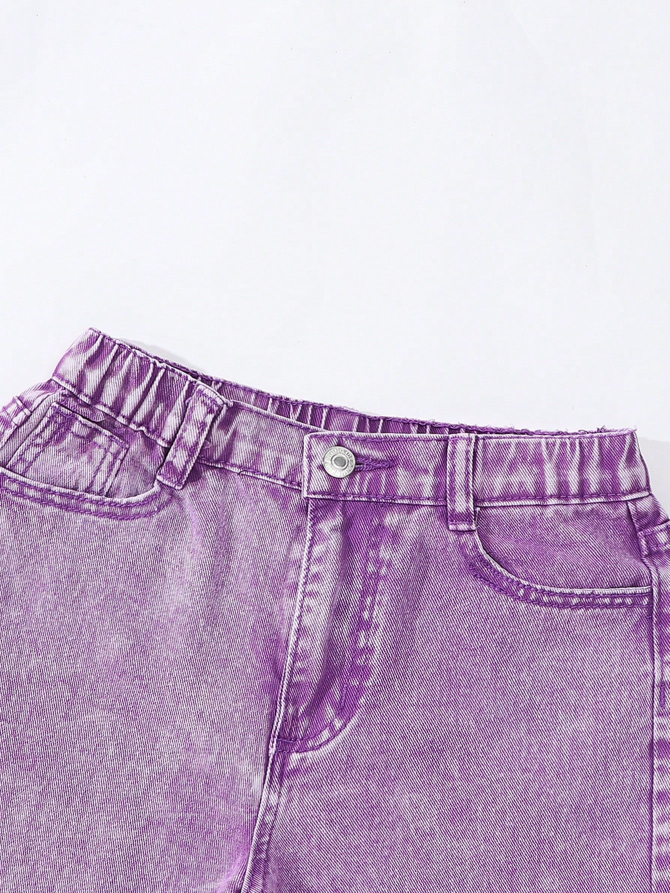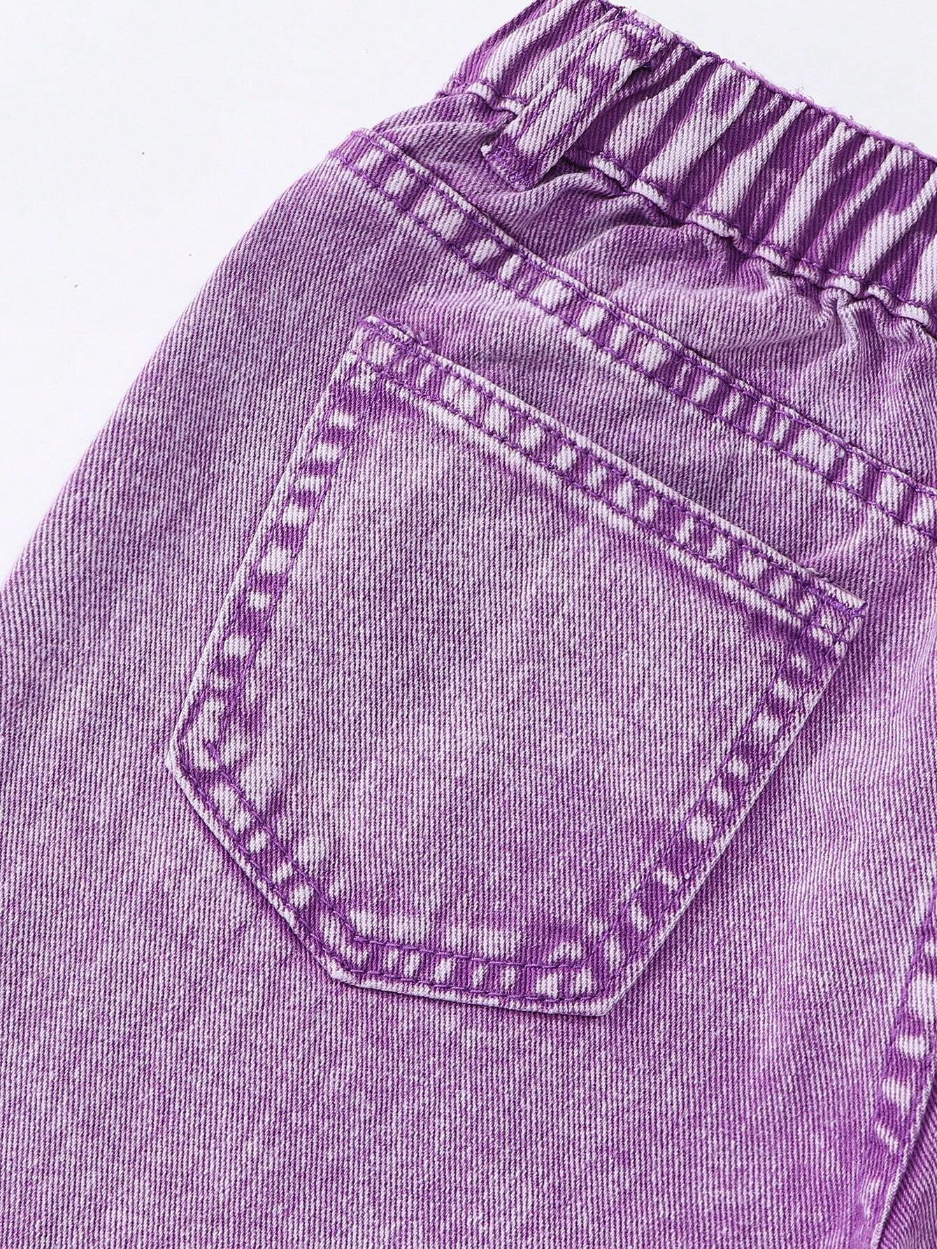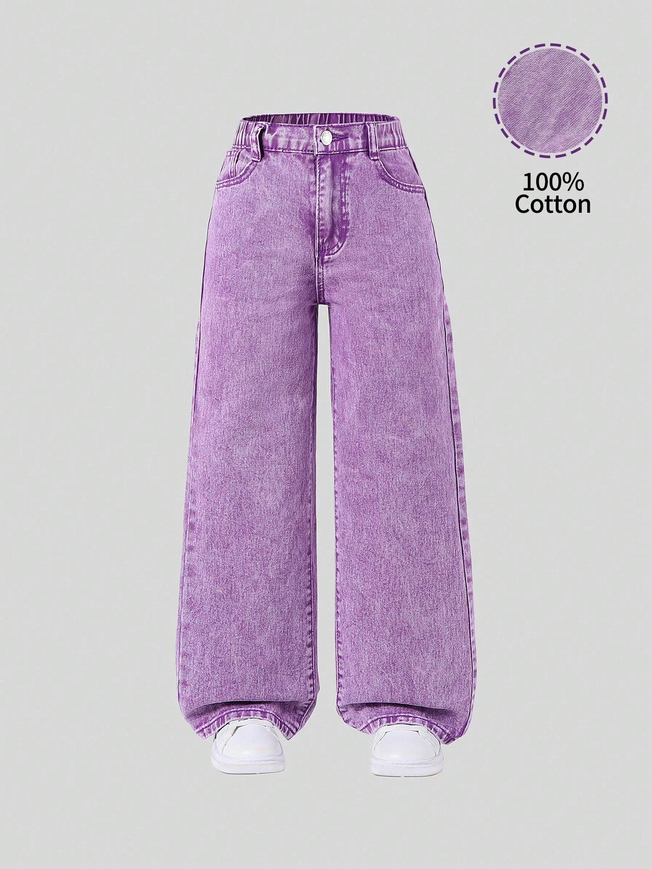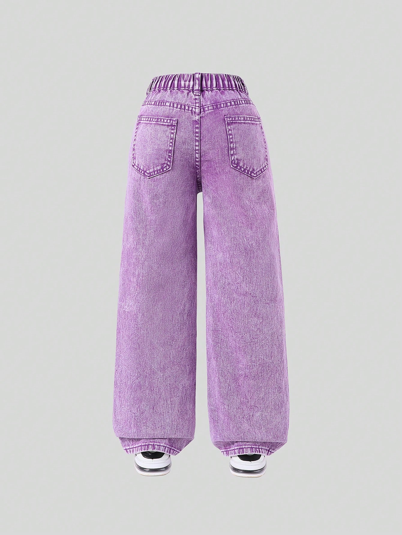 SHEIN Tween Girl Y2K Street Daily Elastic Waist Straight Jeans With Flat Pockets, Girls Daily OOTD Outfits, School, Campus, College