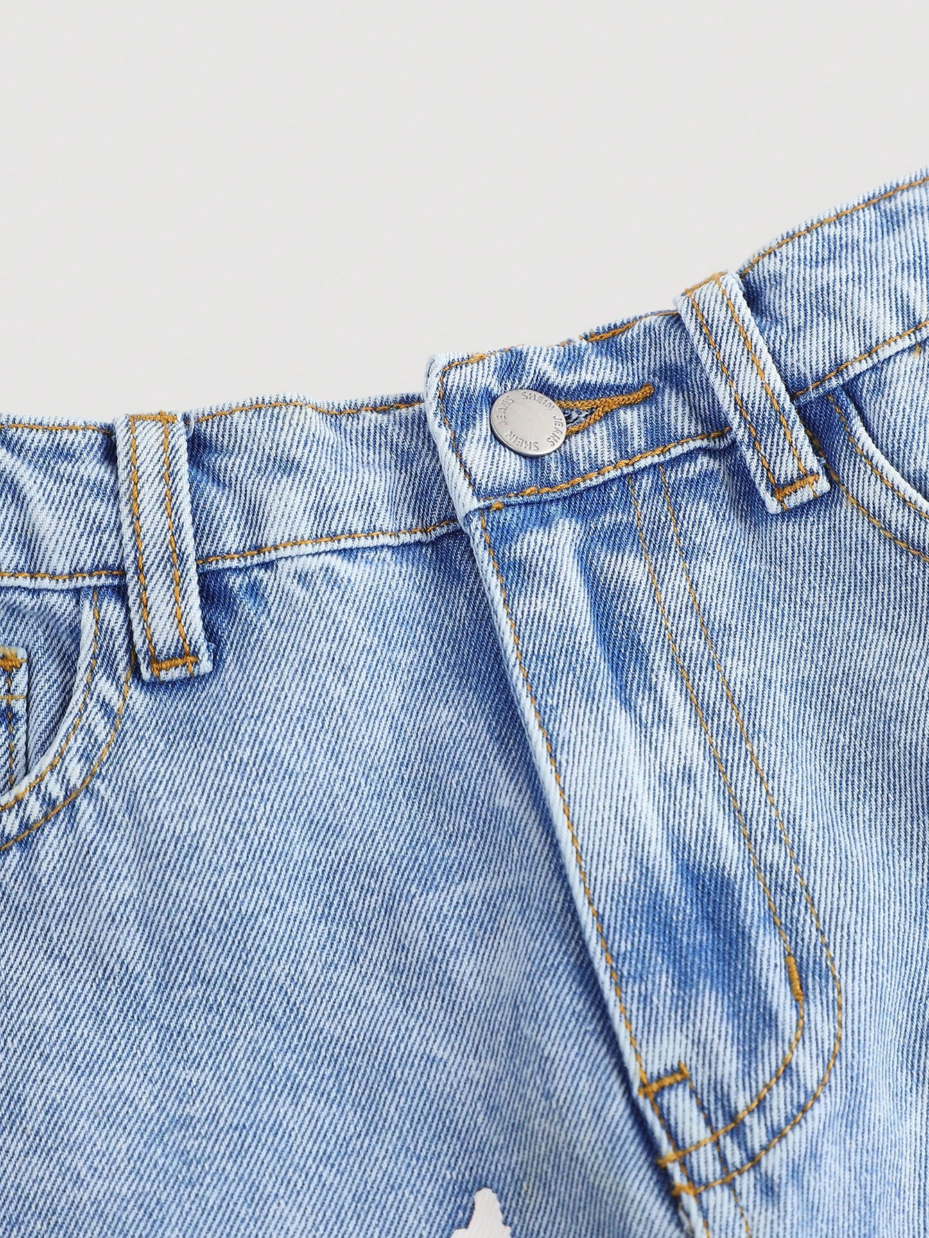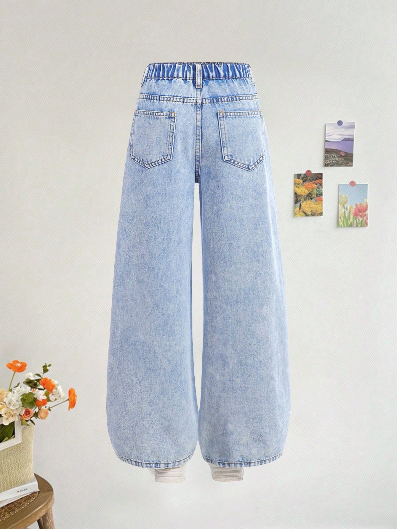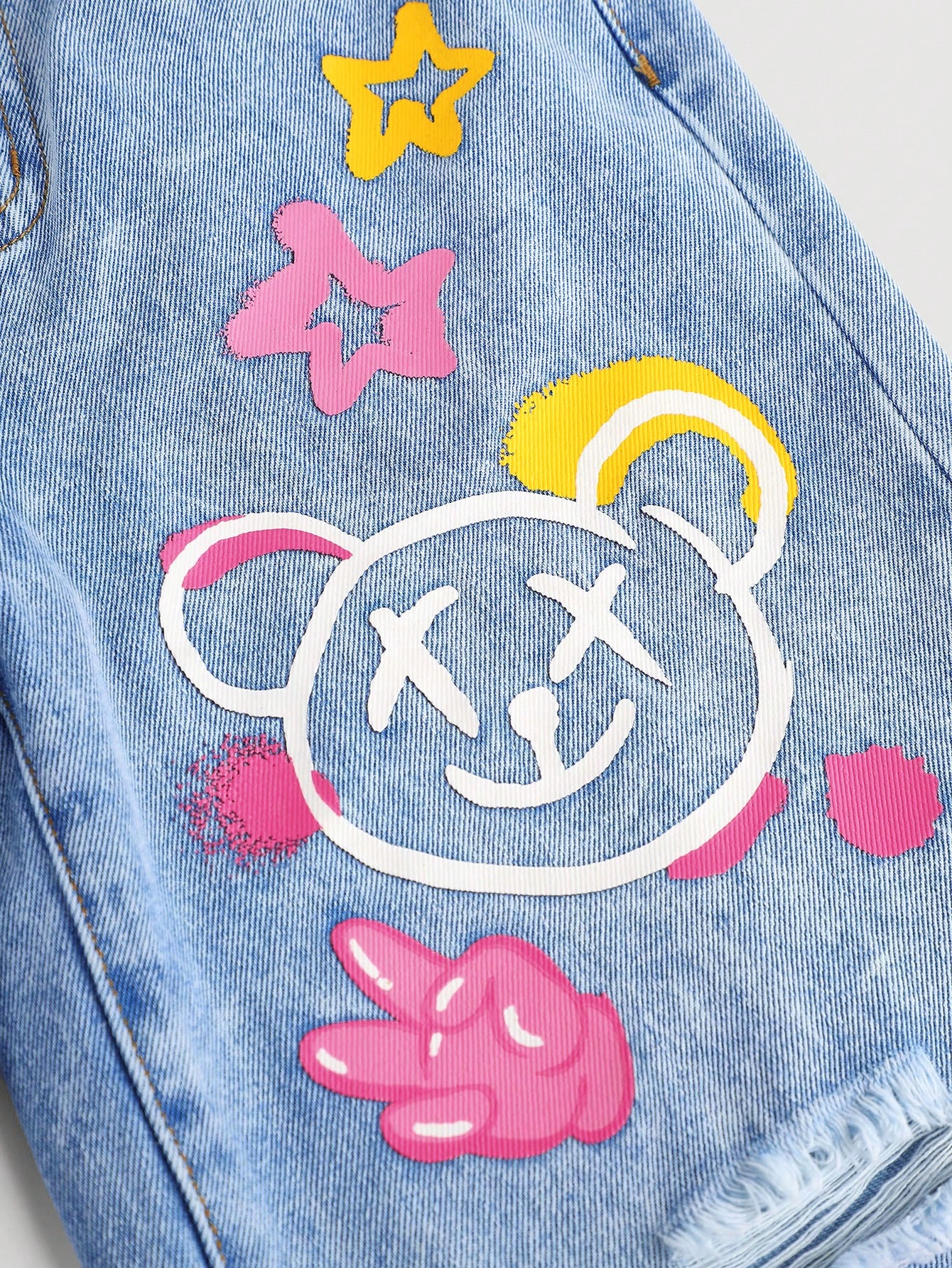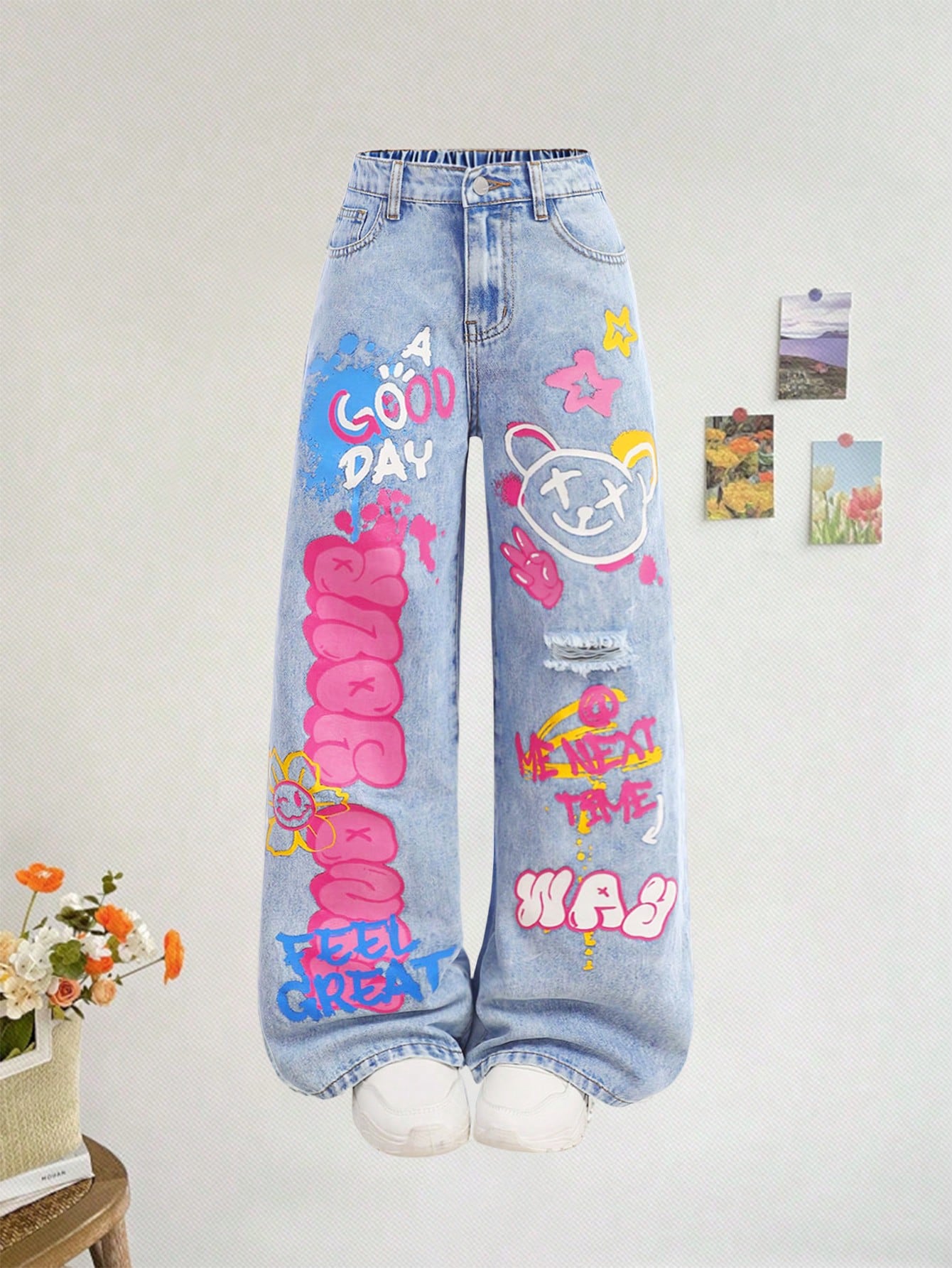 SHEIN Tween Girls' Y2k Fashionable Ripped Colorful Graffiti Print Baggy Blue Denim Jeans For Tween Girl Clothes Girls Costume Dailywear Streetwear Outfits And Four Seasons For Girls Clothes