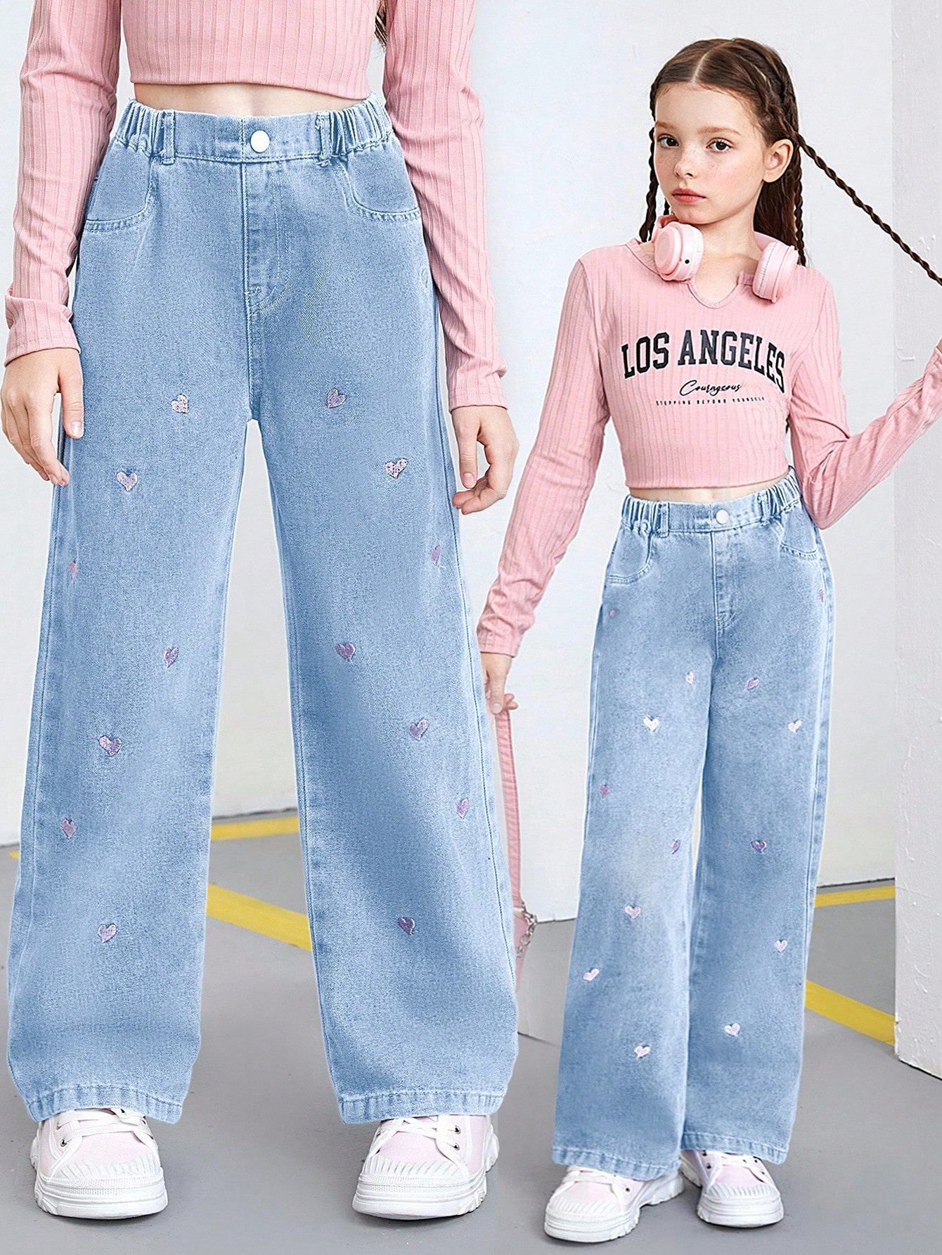 Be the first to review “SHEIN Tween Girls Y2K Style Washed Blue Loose Playful Heart Embroidery Straight Leg Jeans, Suitable For Daily Fashion Versatile Wear” Cancel reply