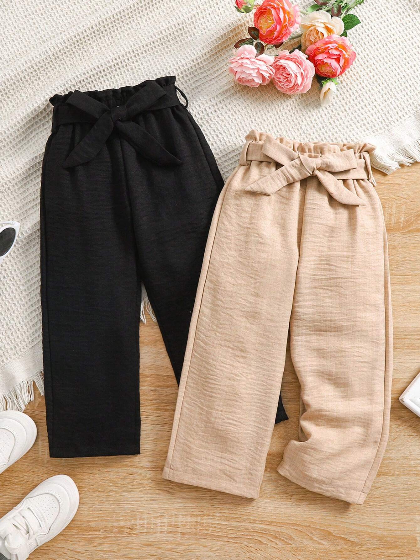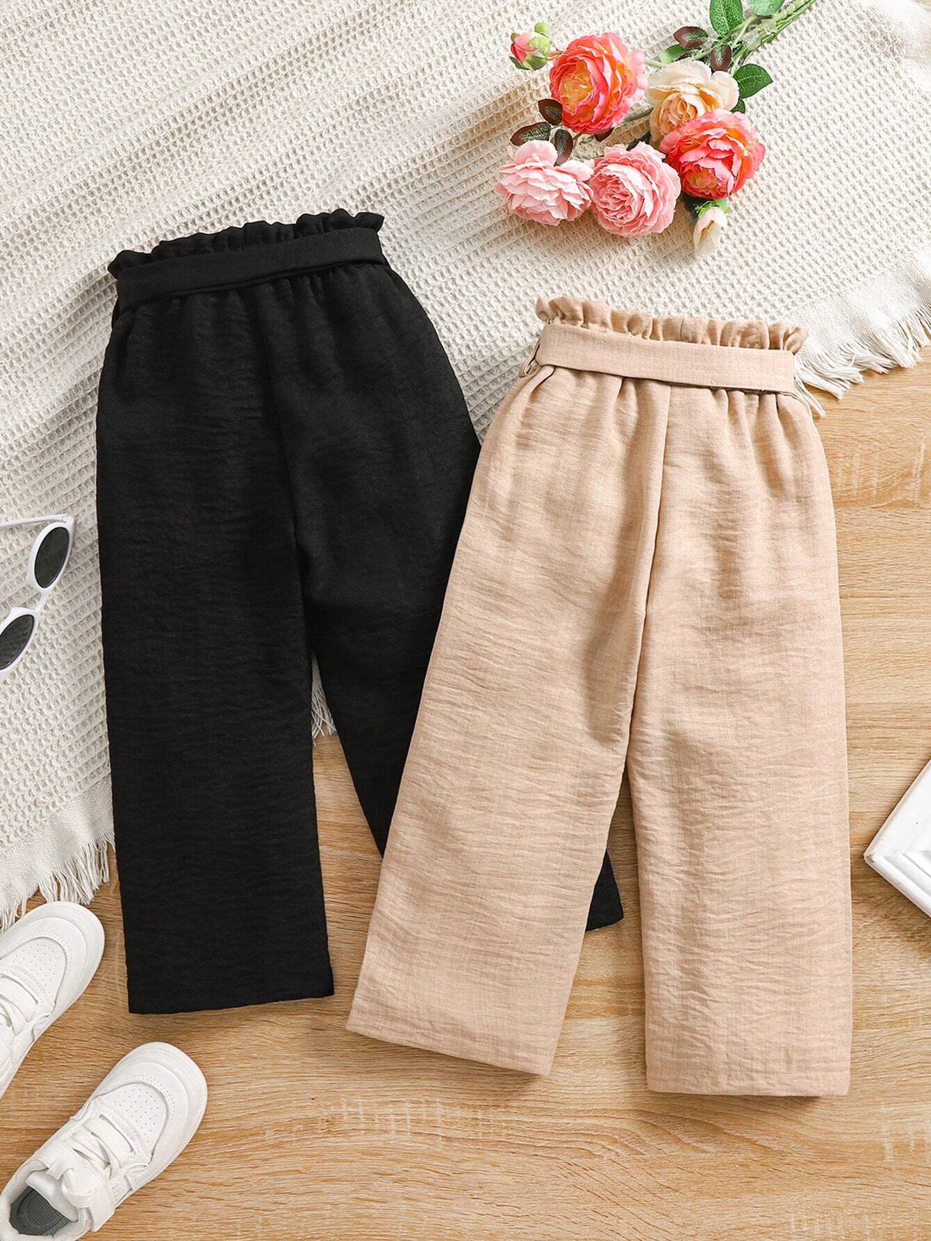 SHEIN Vintaside Kids Young Girl Casual Solid Paper Bag Waist Long Pants