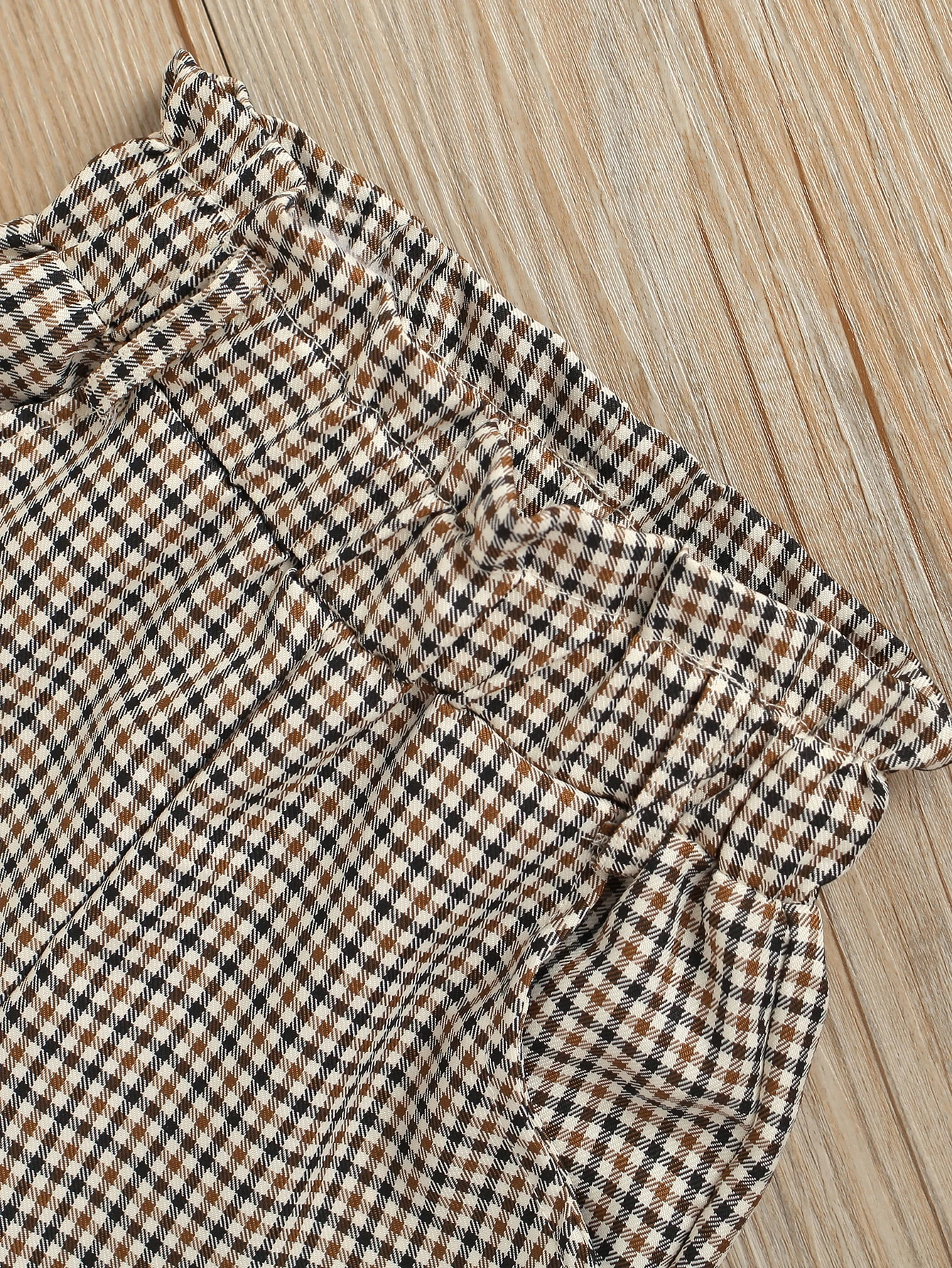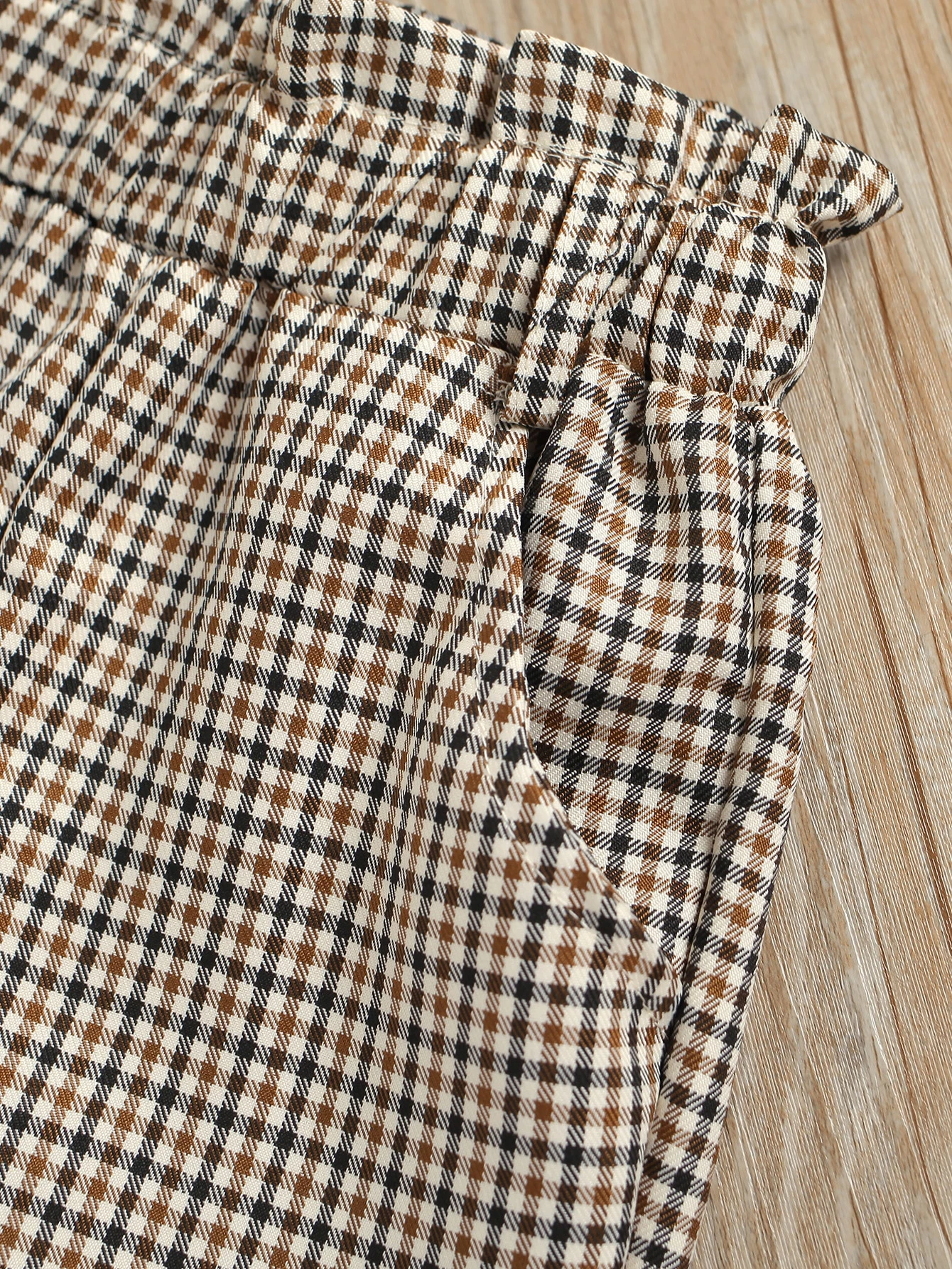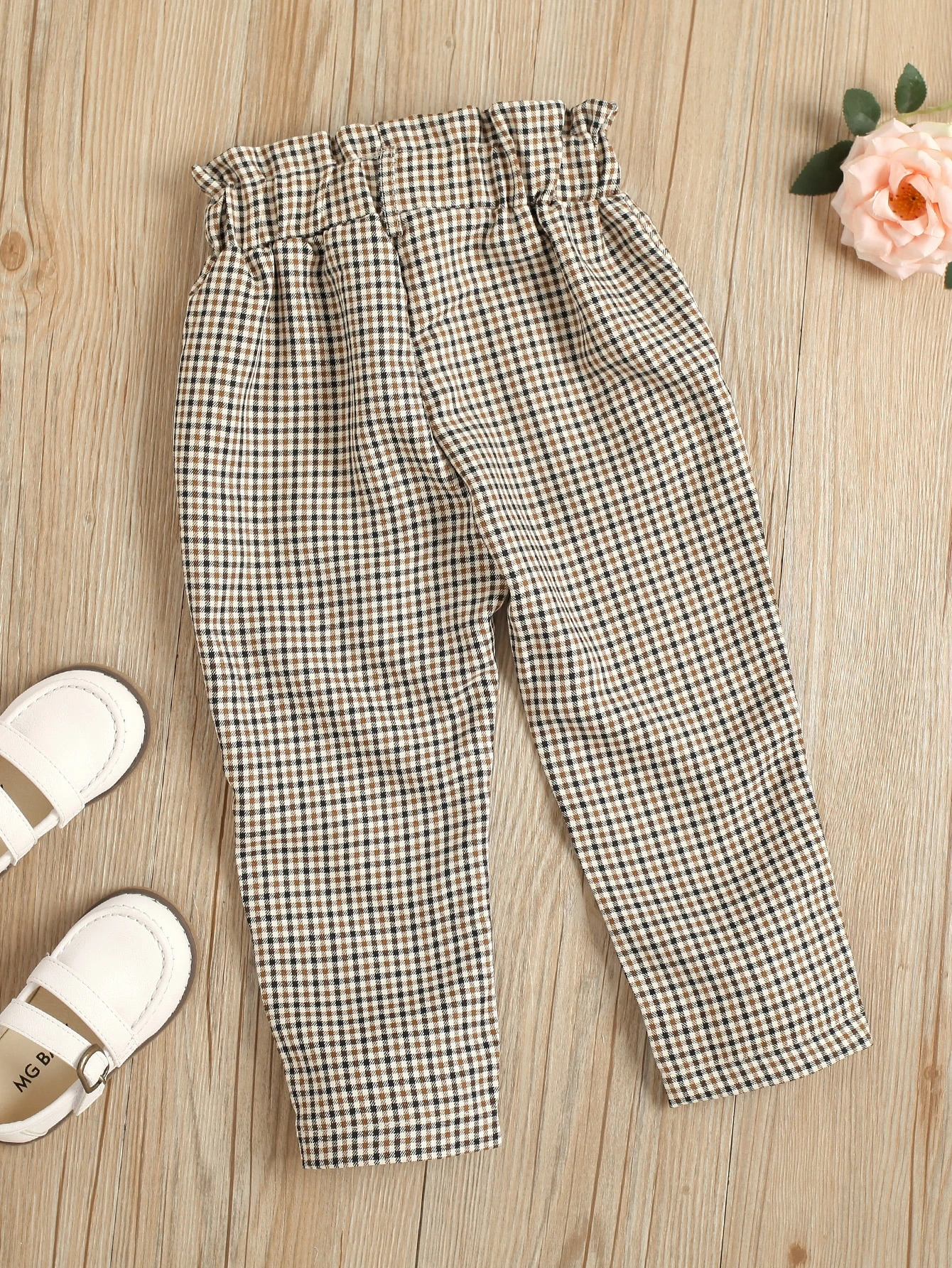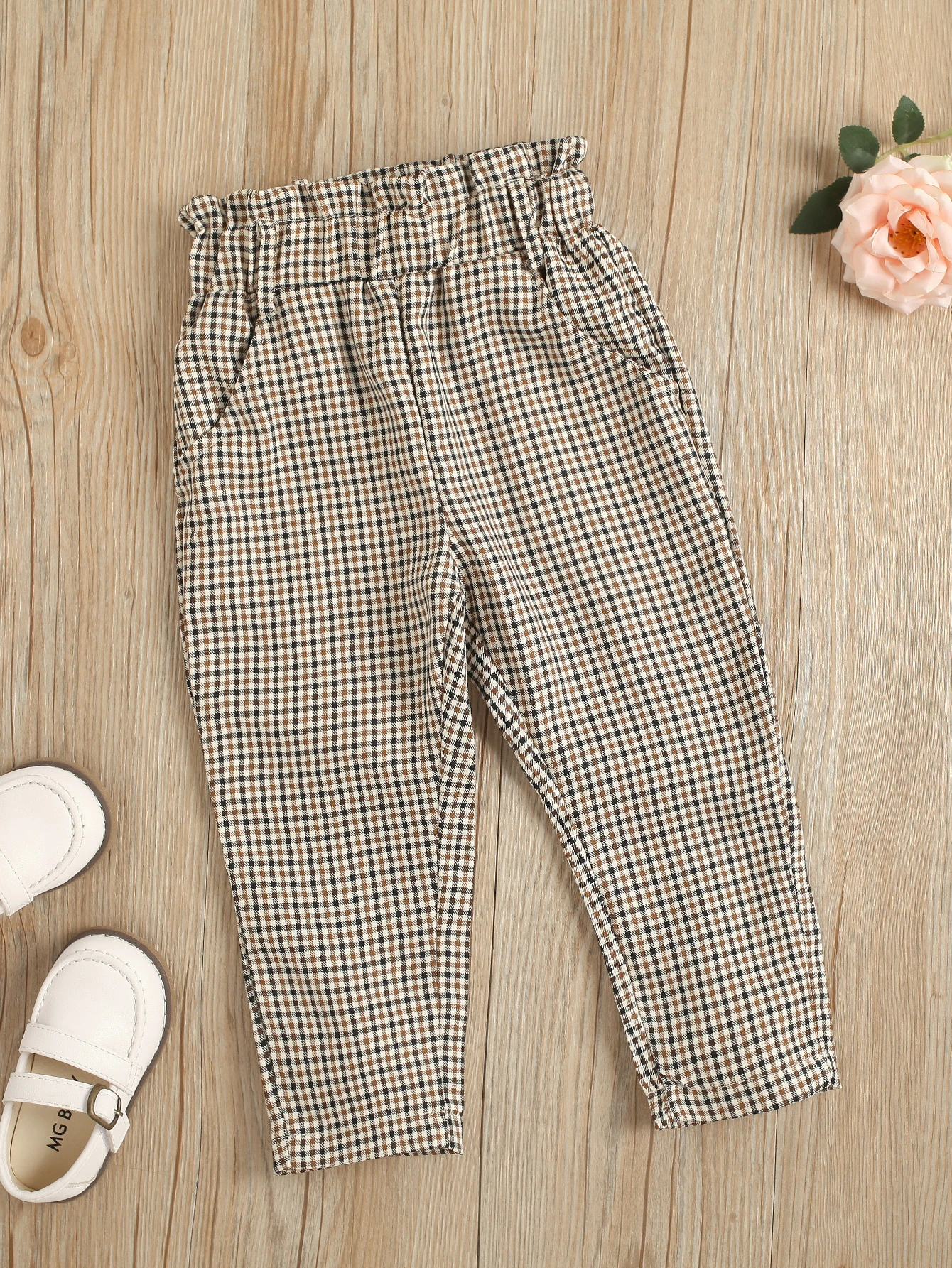 SHEIN Young Girl Plaid Paper Bag Waist Pants