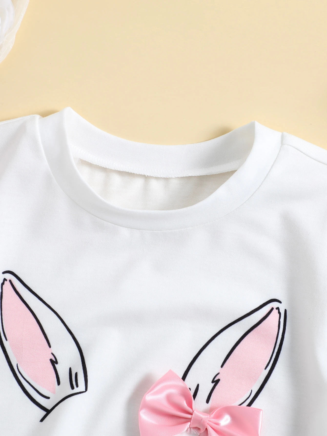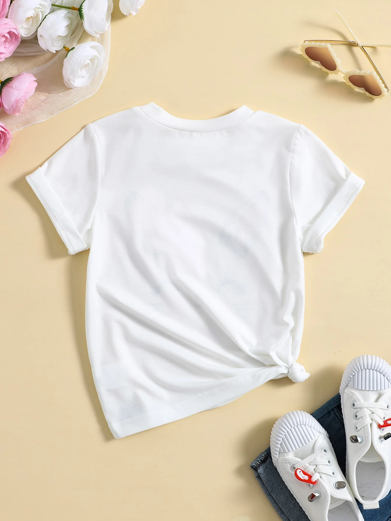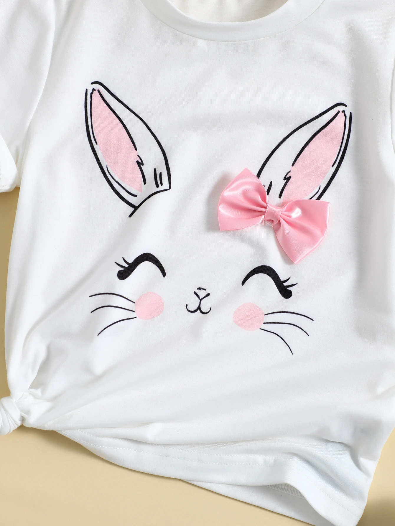 SHEIN Young Girl White Cute Cartoon Rabbit Printed T-Shirt For Summer With Round Neck And Short Sleeves,Holiday,Summer,Travel