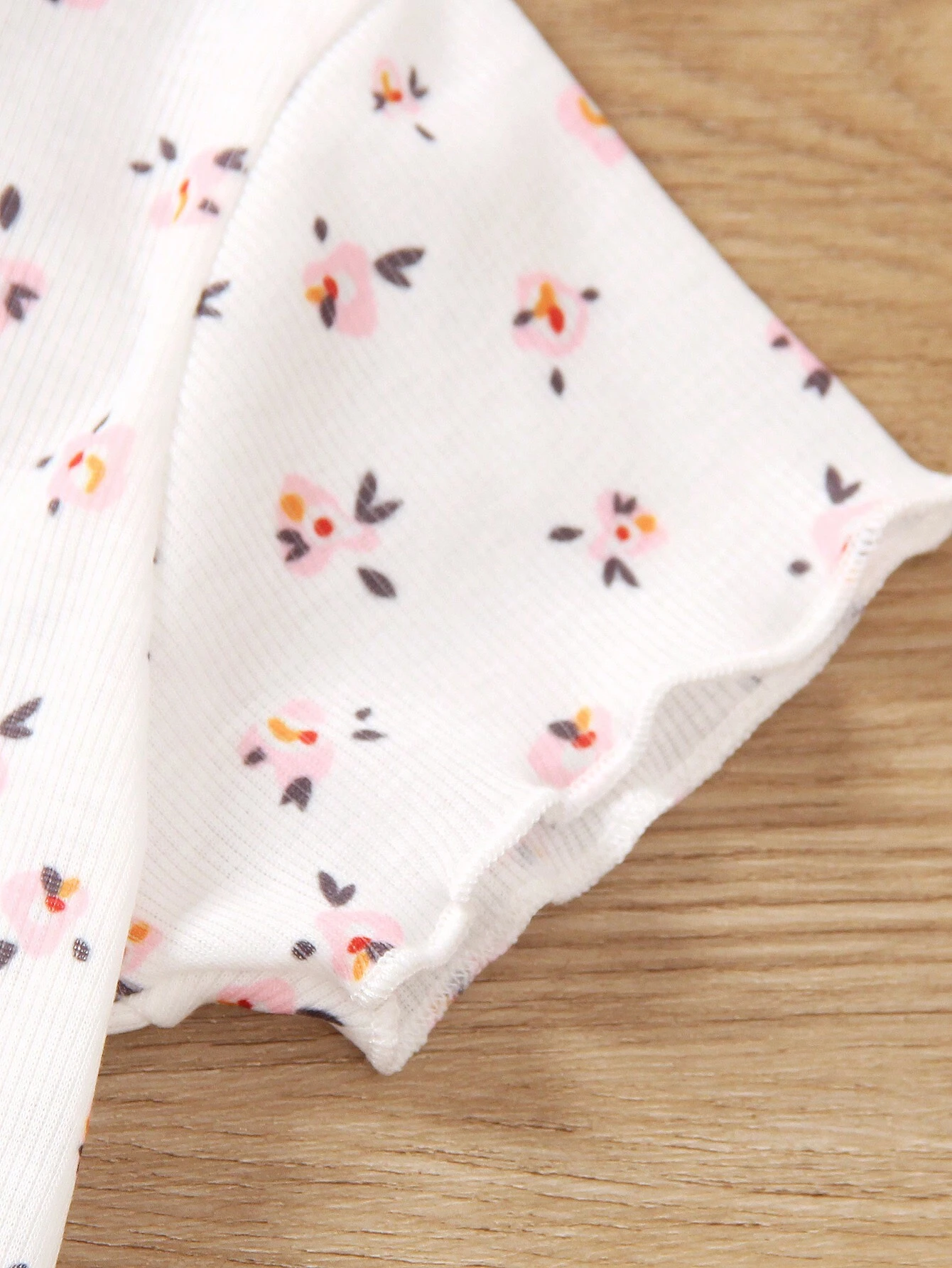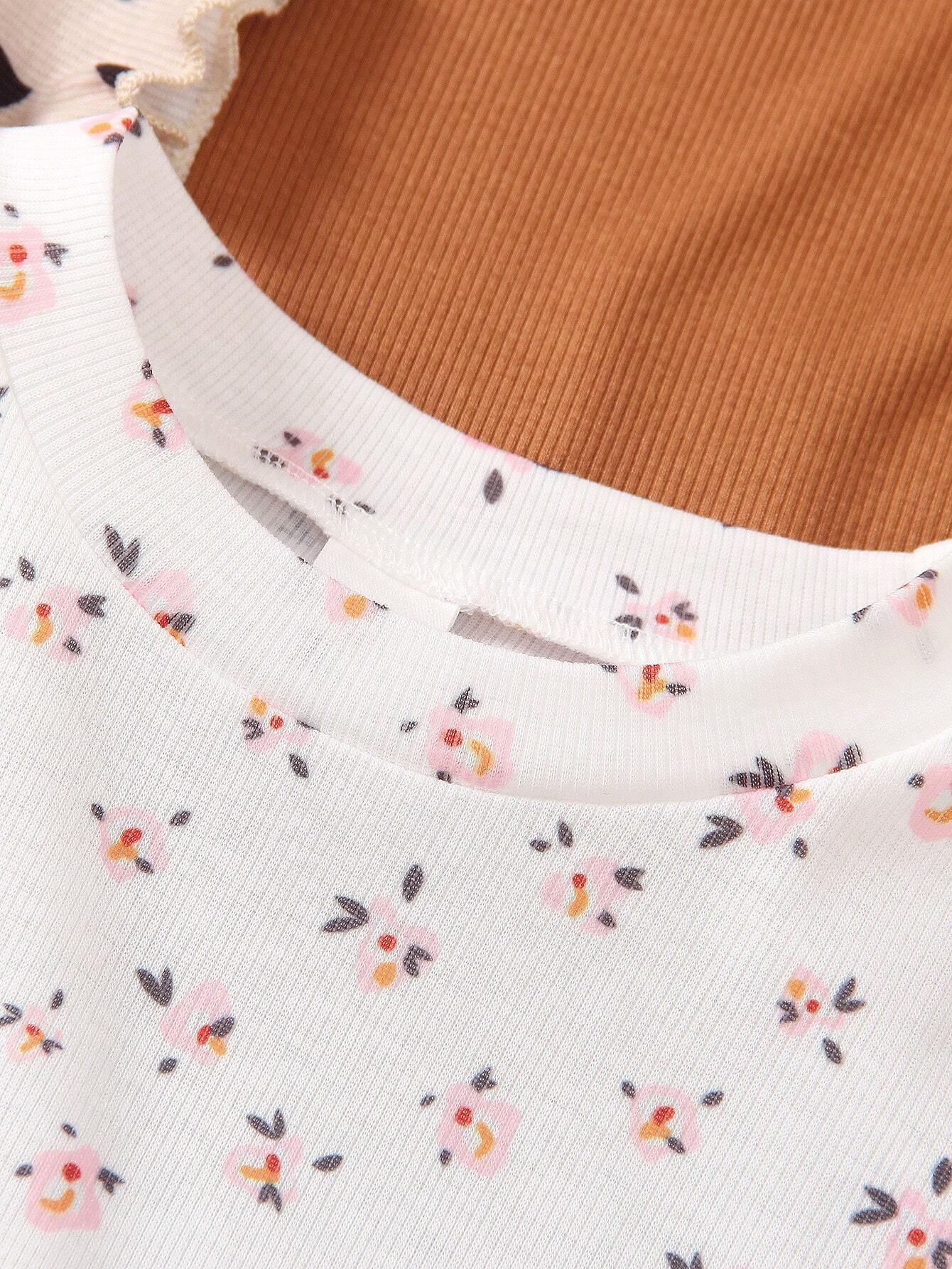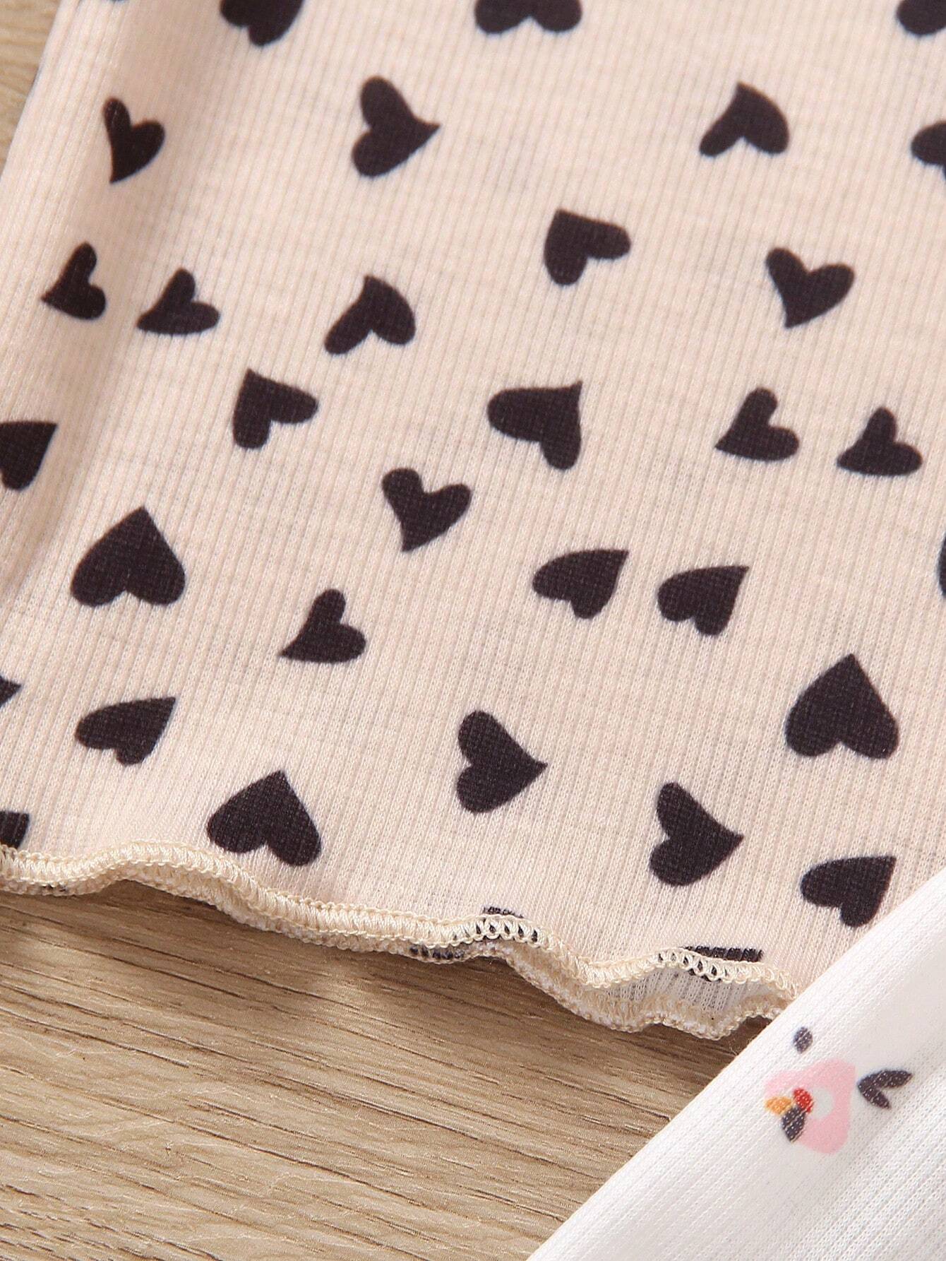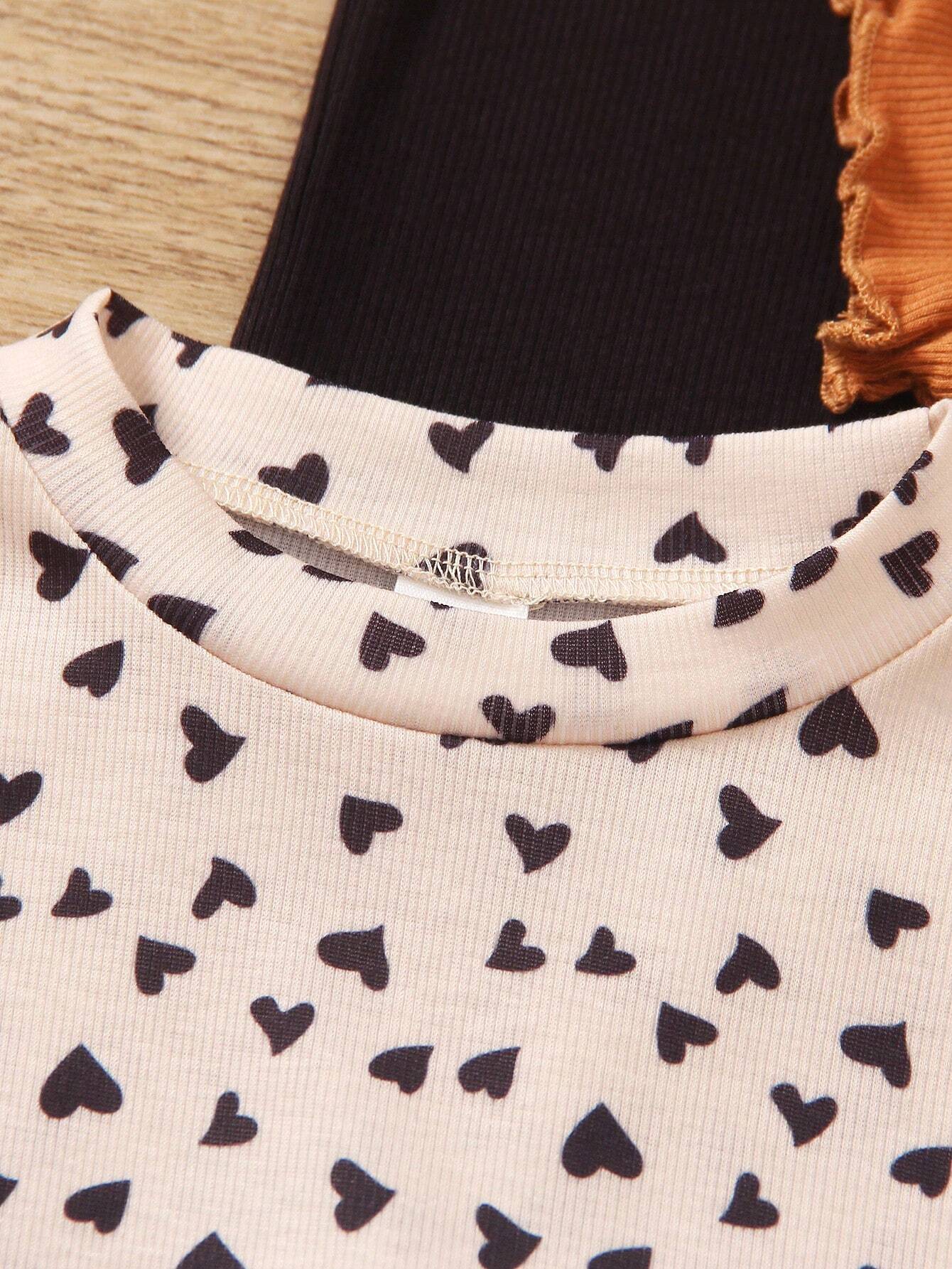 SHEIN Young Girls 4pcs Solid & Heart Print Lettuce Trim Tee For Summer Summer Holiday