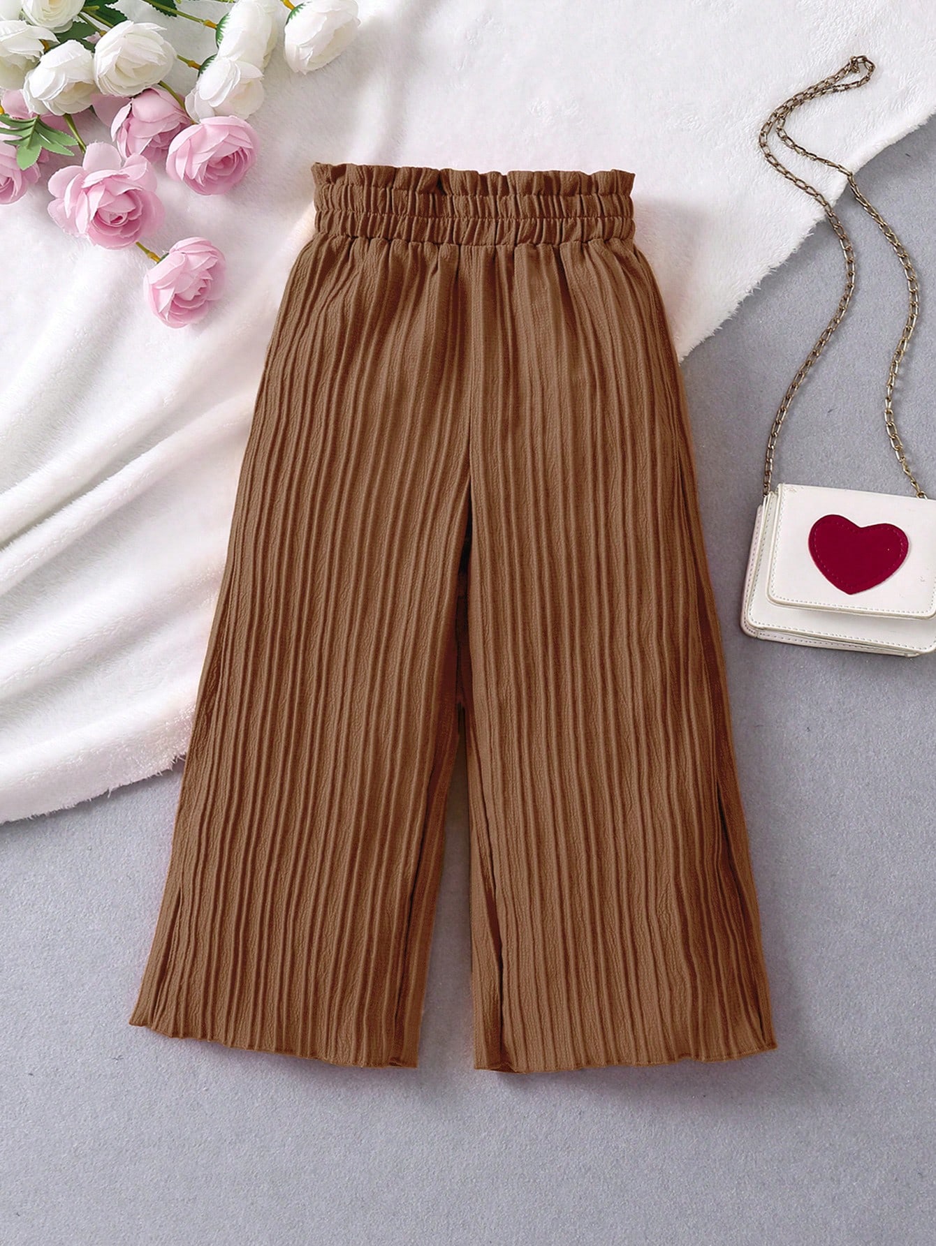 Home Kids Girls Trousers-girls SHEIN Young Girls' Solid Color Simple Daily Pants