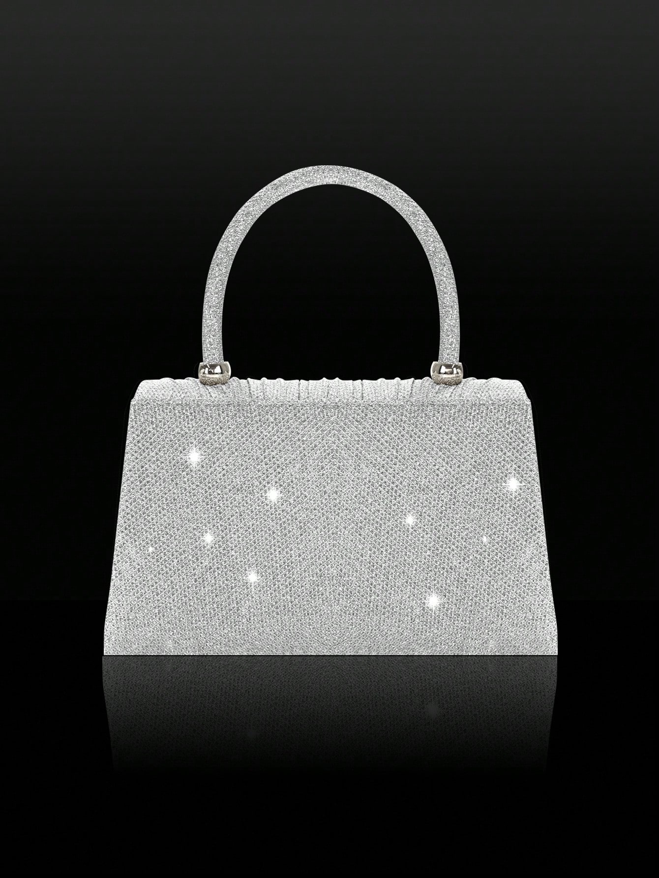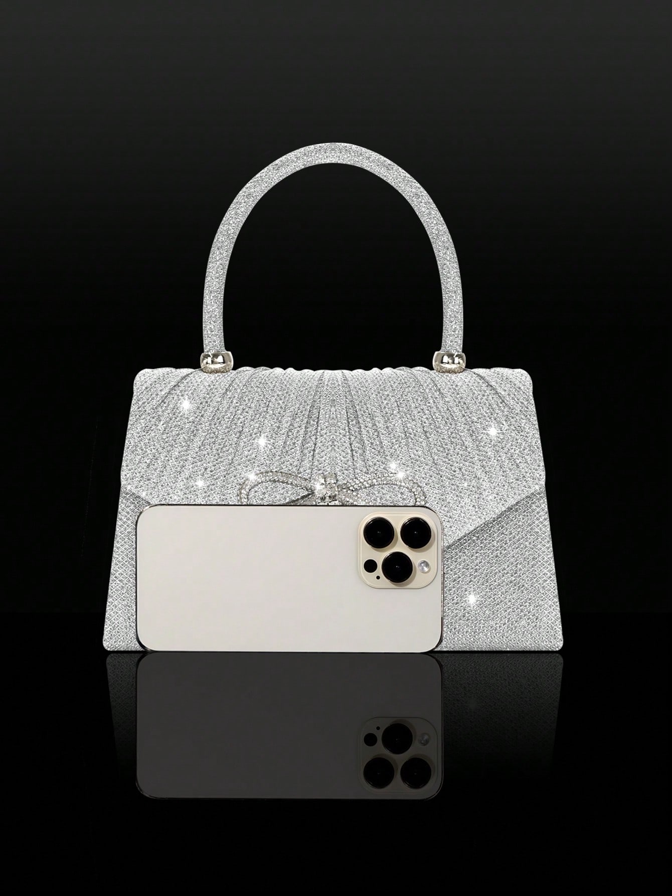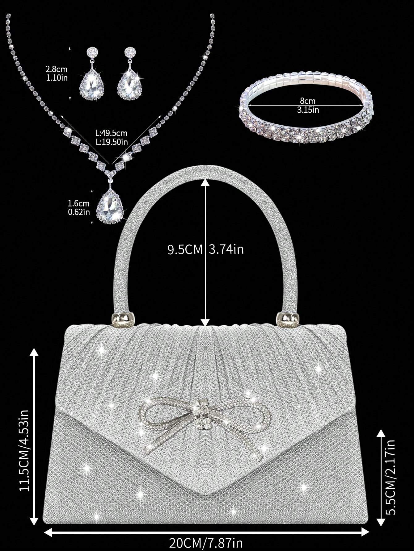Shiny And Elegant Mini Bow Women's Evening Bag, Paired With Exquisite And Luxurious Rhinestone Bracelet, Necklace And Earrings Four-Piece Set, Simple And Fashionable Solid Color Pleated Flap Handbag, Suitable For Holiday Parties, Dances, Gatherings, Banqu