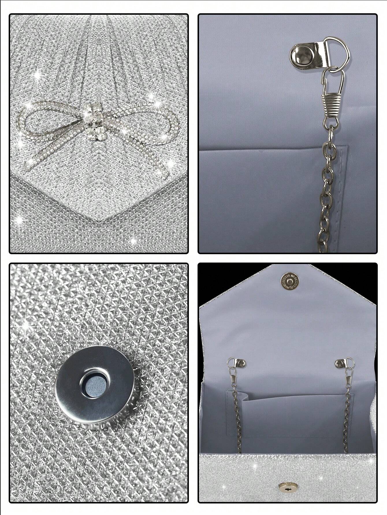 Be the first to review “Shiny And Elegant Mini Bow Women's Evening Bag, Paired With Exquisite And Luxurious Rhinestone Bracelet, Necklace And Earrings Four-Piece Set, Simple And Fashionable Solid Color Pleated Flap Handbag, Suitable For Holiday Parties, Dances, Gatherings, Banqu” Cancel reply