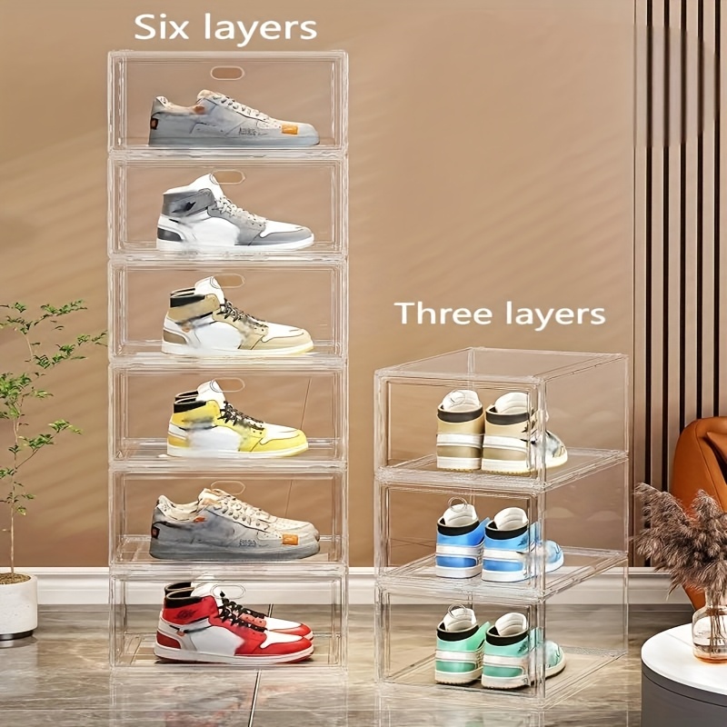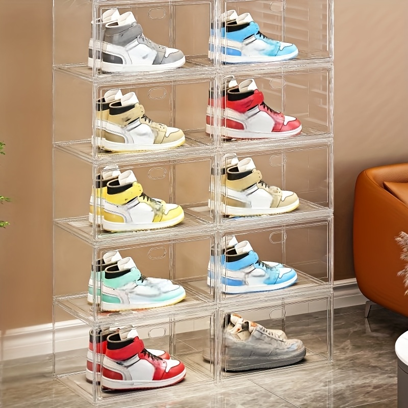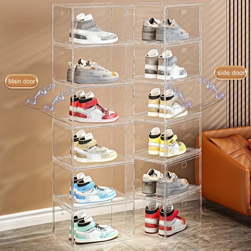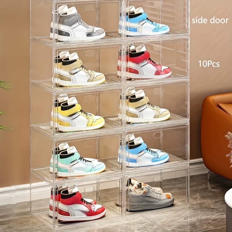 Stackable Shoe Storage Box Set – 10pcs, 6pcs, 4pcs, or 3pcs Options with Transparent Doors, Waterproof Magnetic Closure, Easy Assembly, Stylish & Practical for Displaying Sneakers