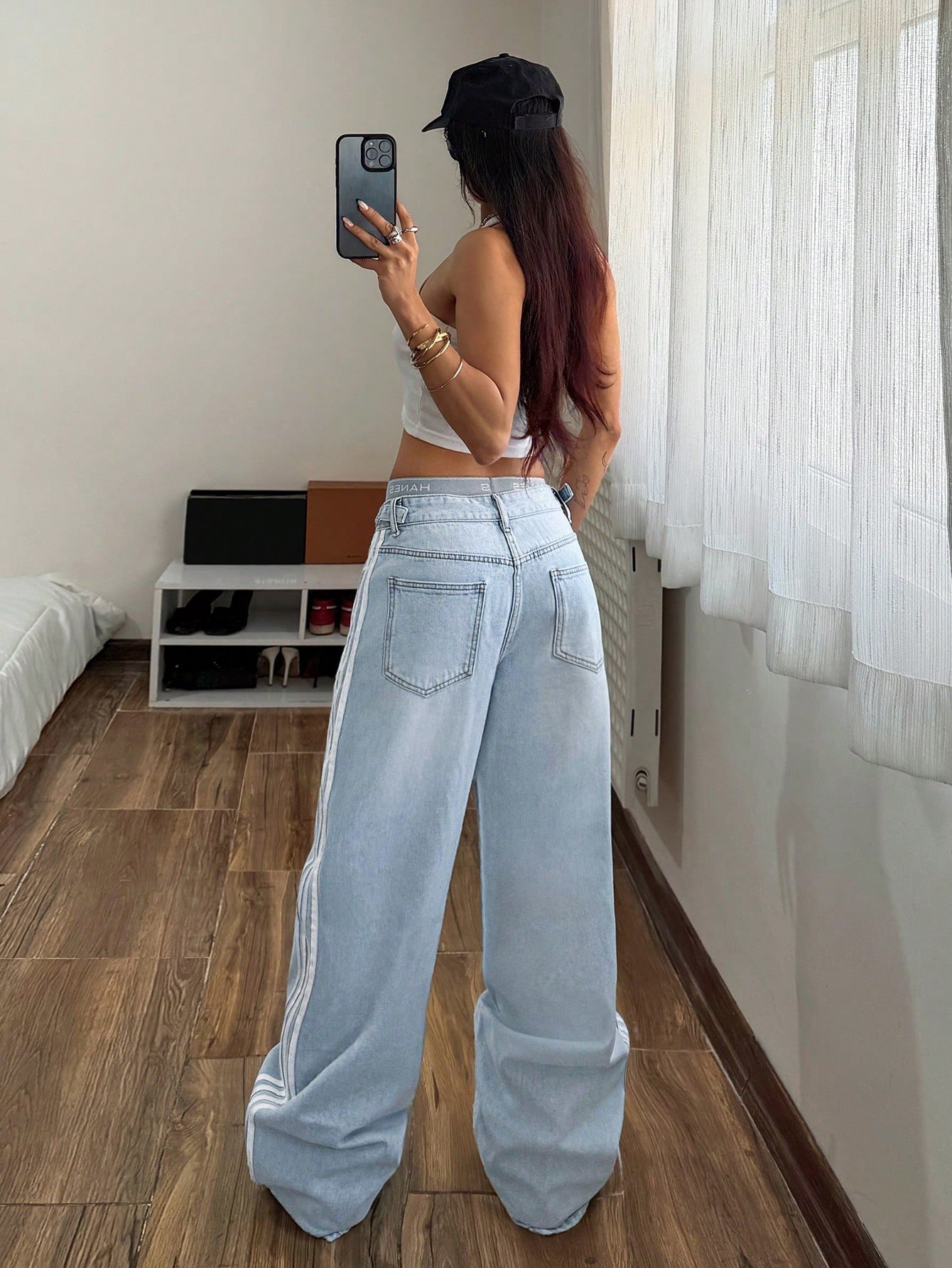 StreetHx Women's Casual Everyday Denim Jeans With Contrast Side Panels