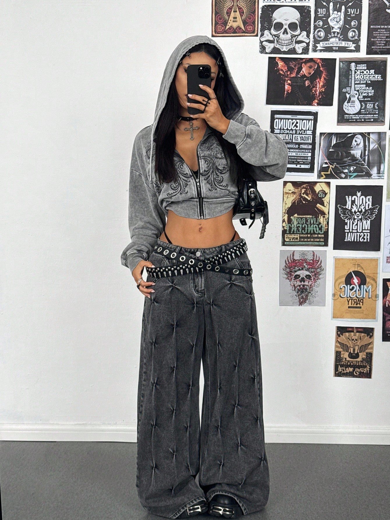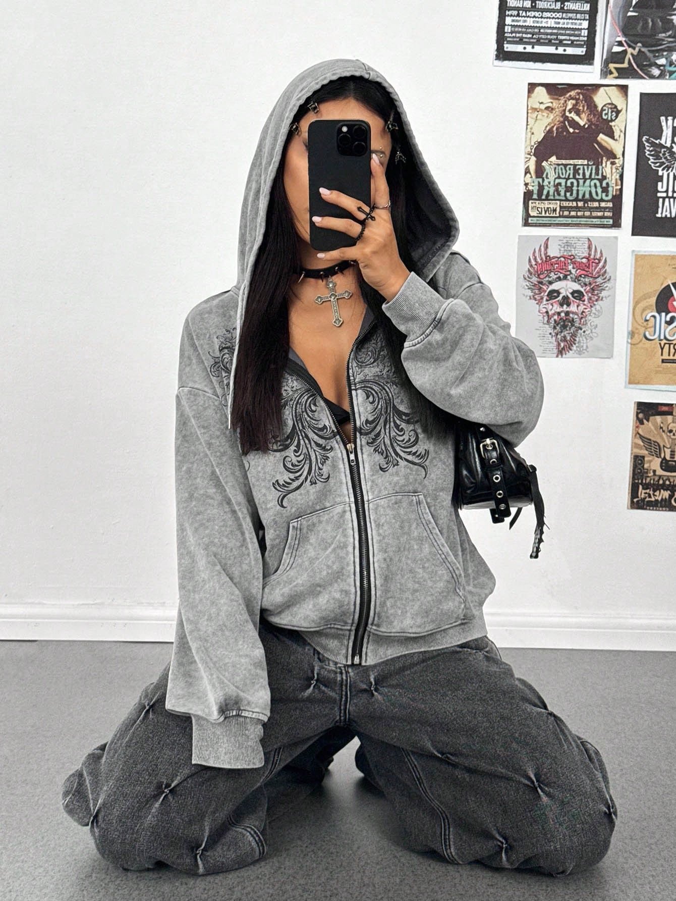 StreetHx Women's Y2K Style Gothic Retro Distressed Loose Hoodie Streetwear, Autumn/Winter